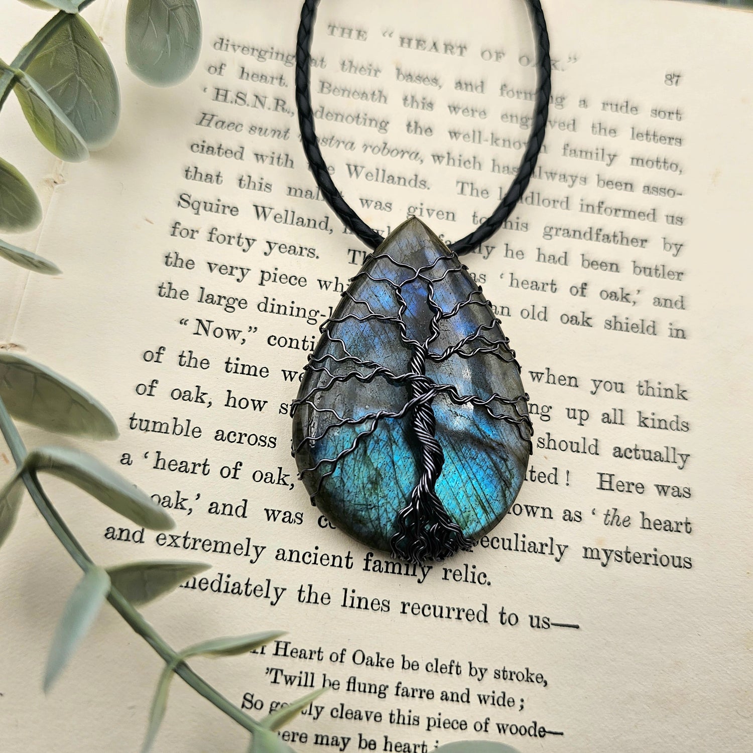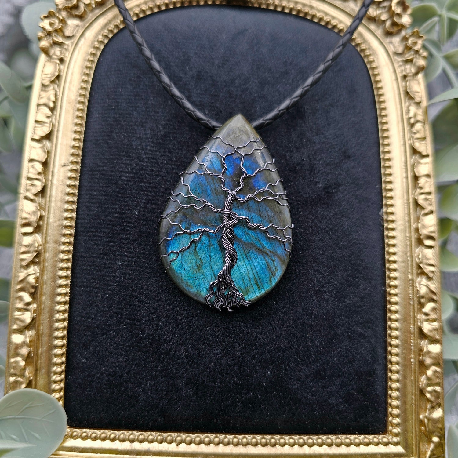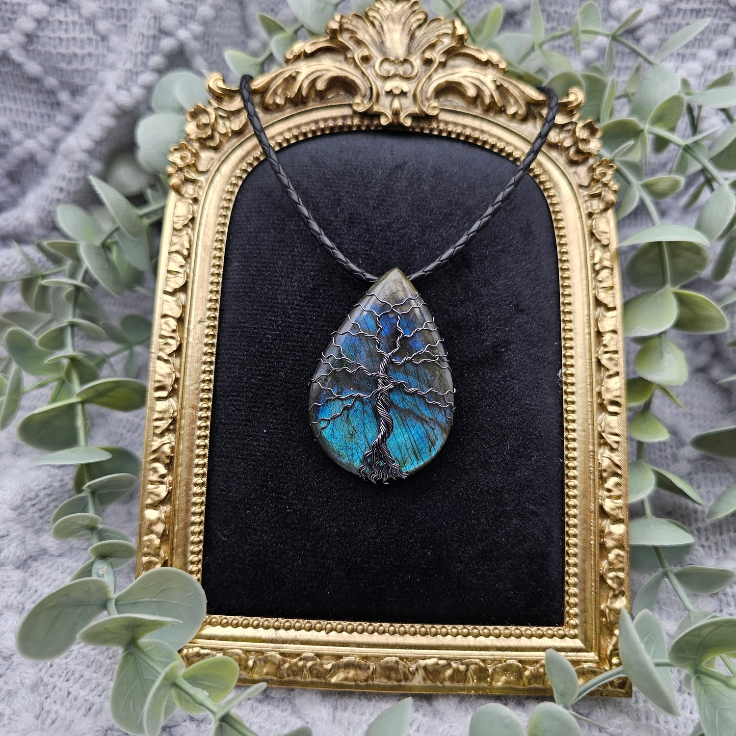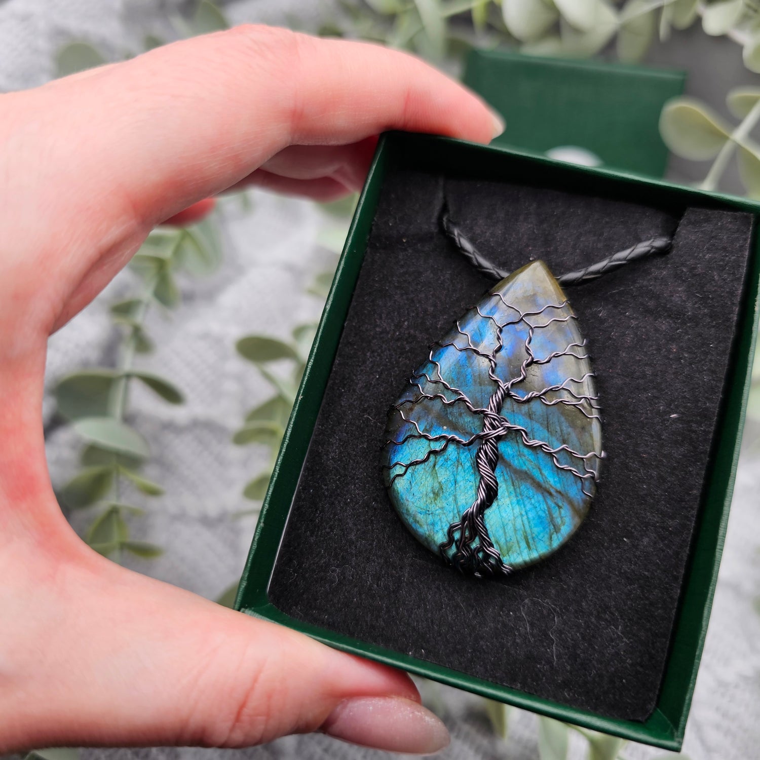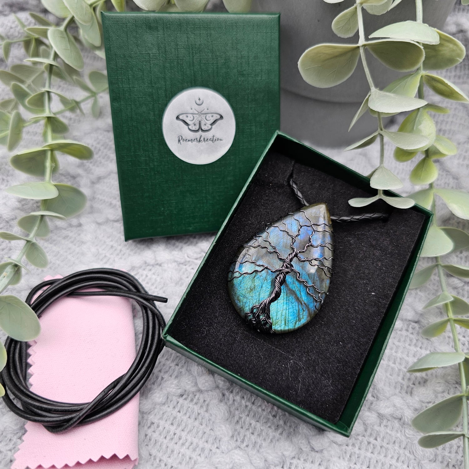 Labradorit Lebensbaum Anhänger | Schmuckdraht | Edelstein Halskette