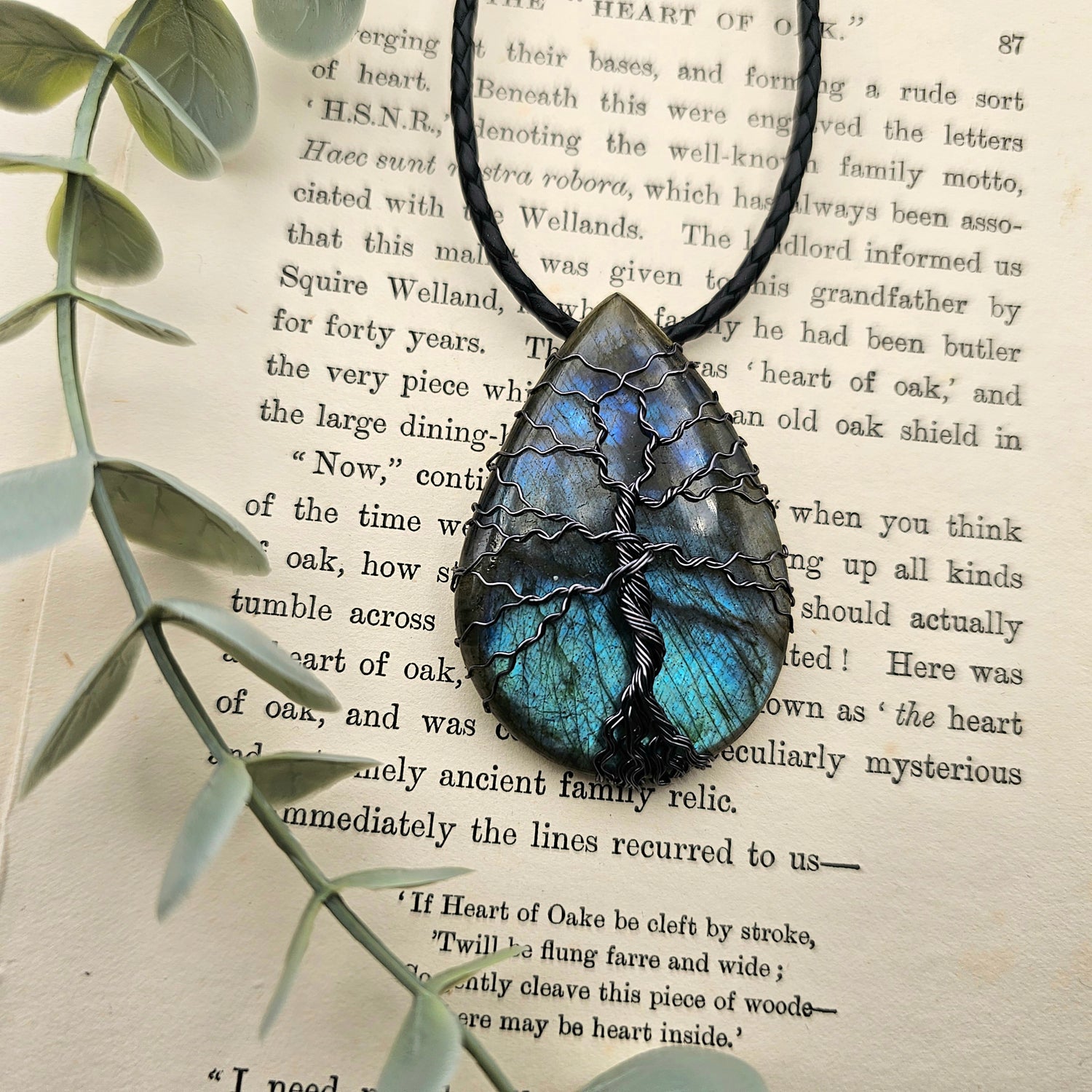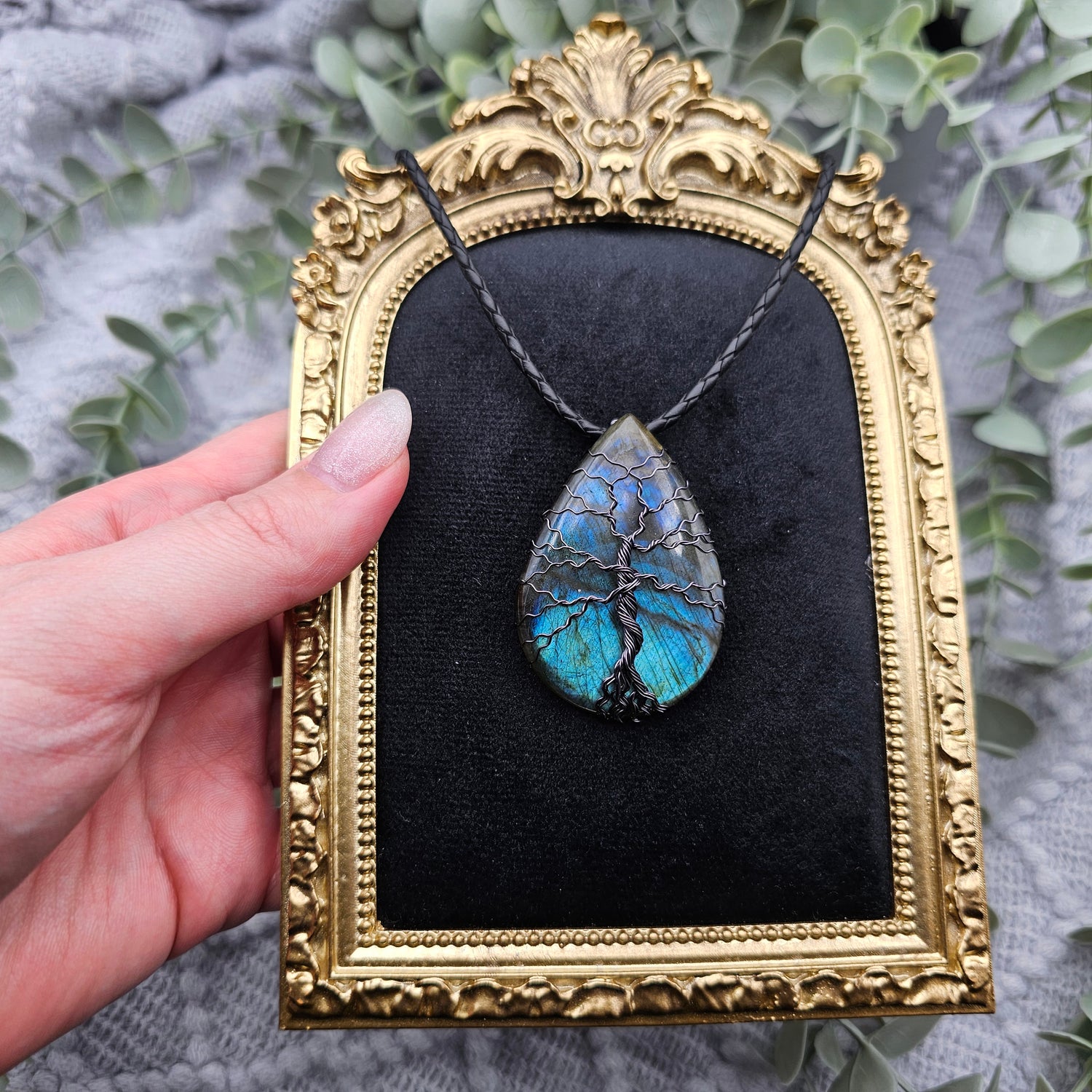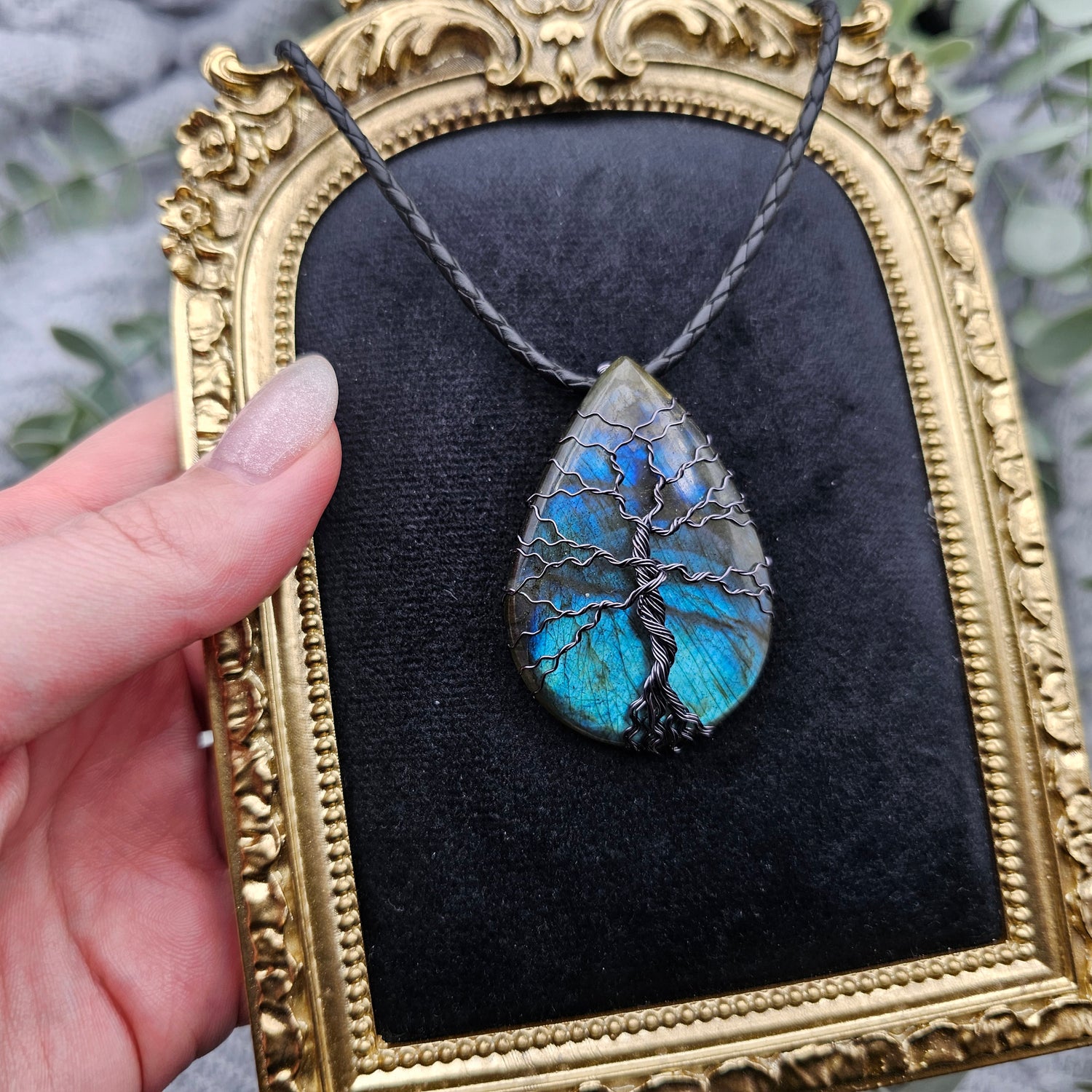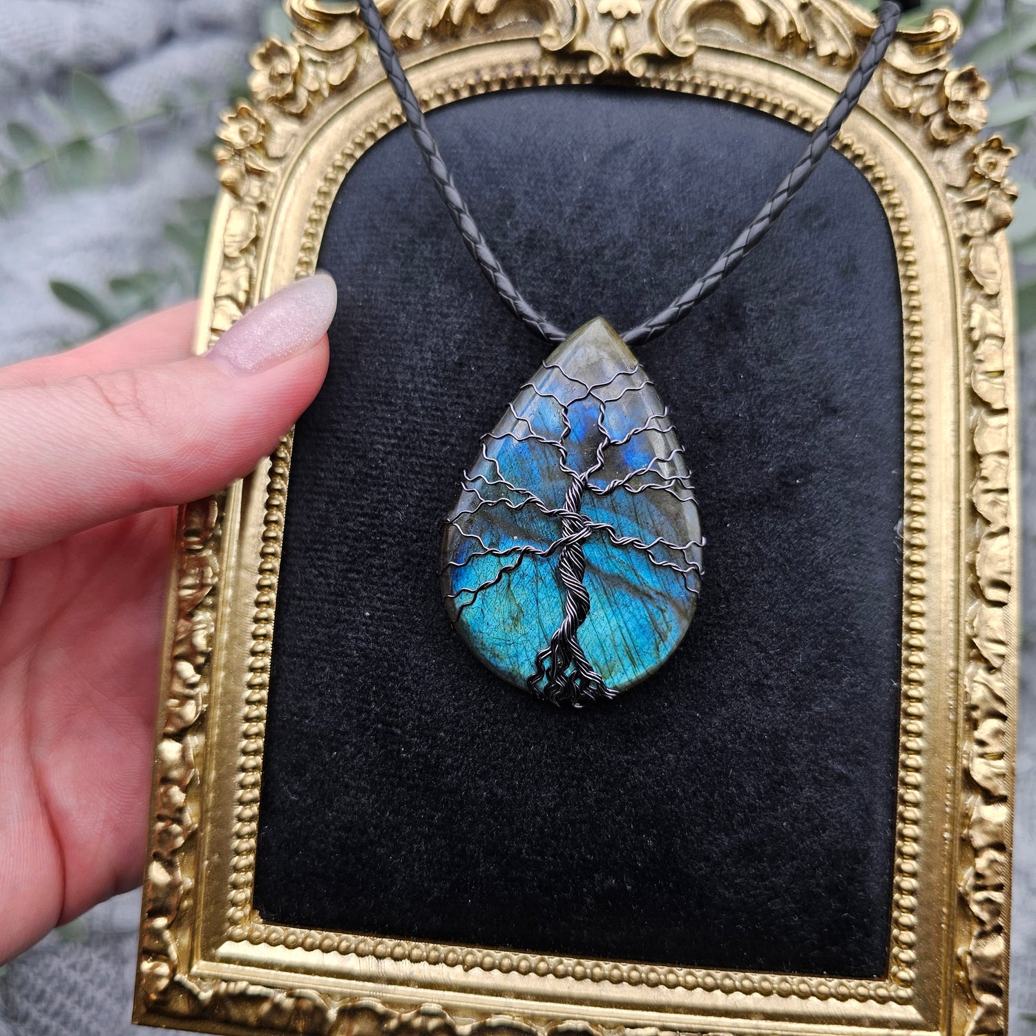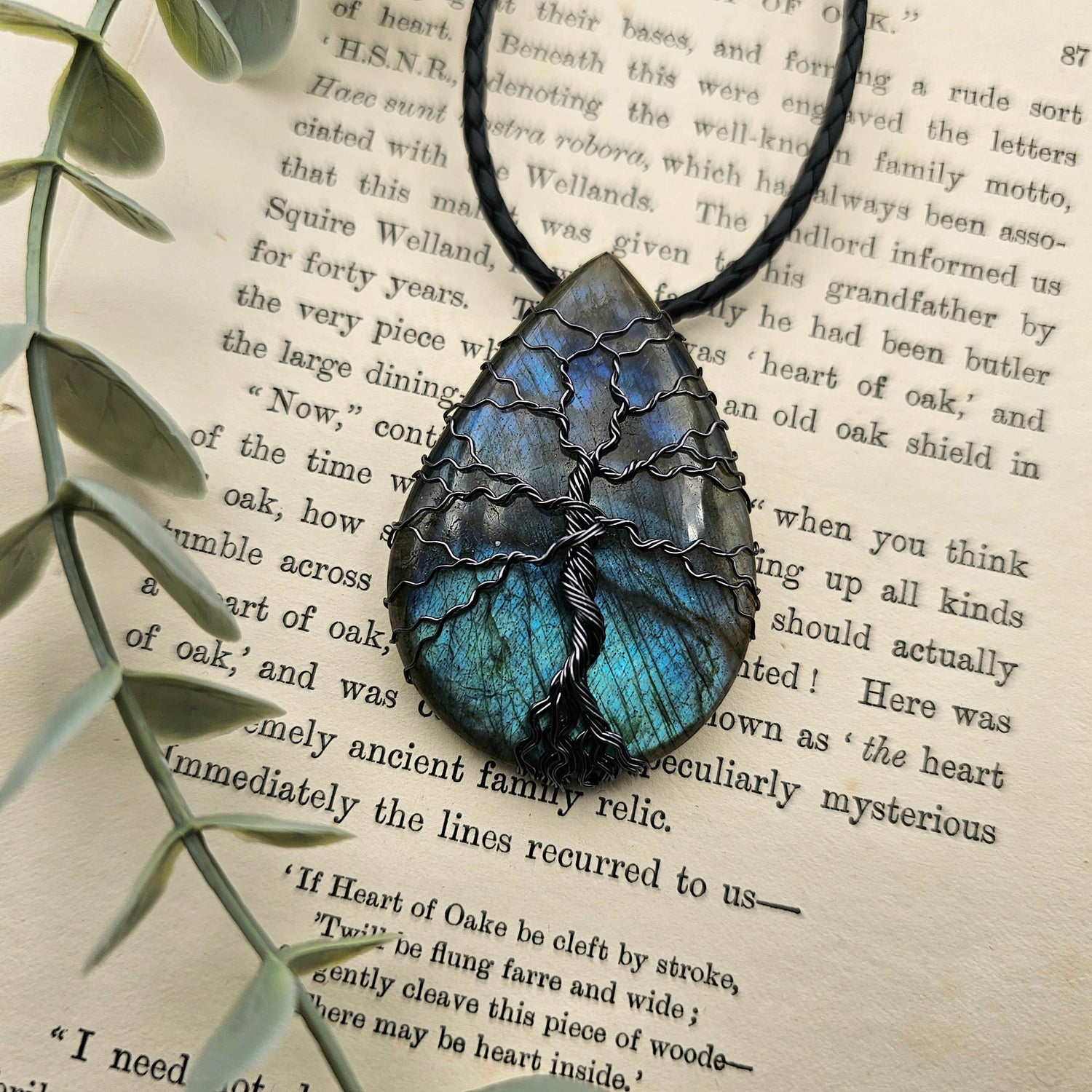 Labradorit Lebensbaum Anhänger | Schmuckdraht | Edelstein Halskette