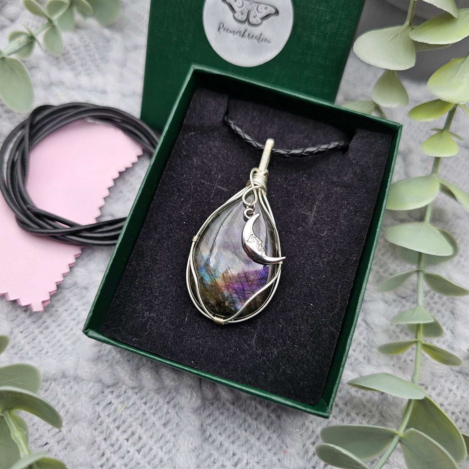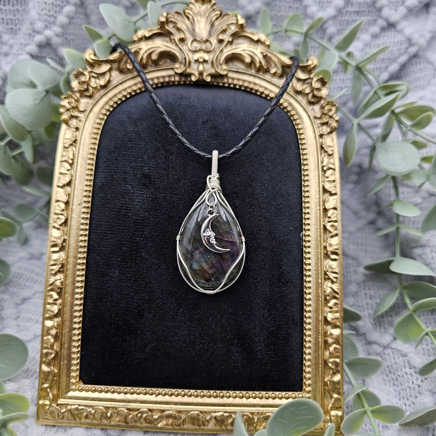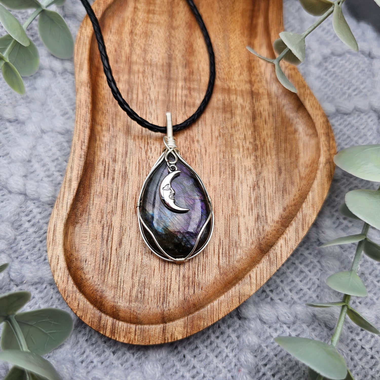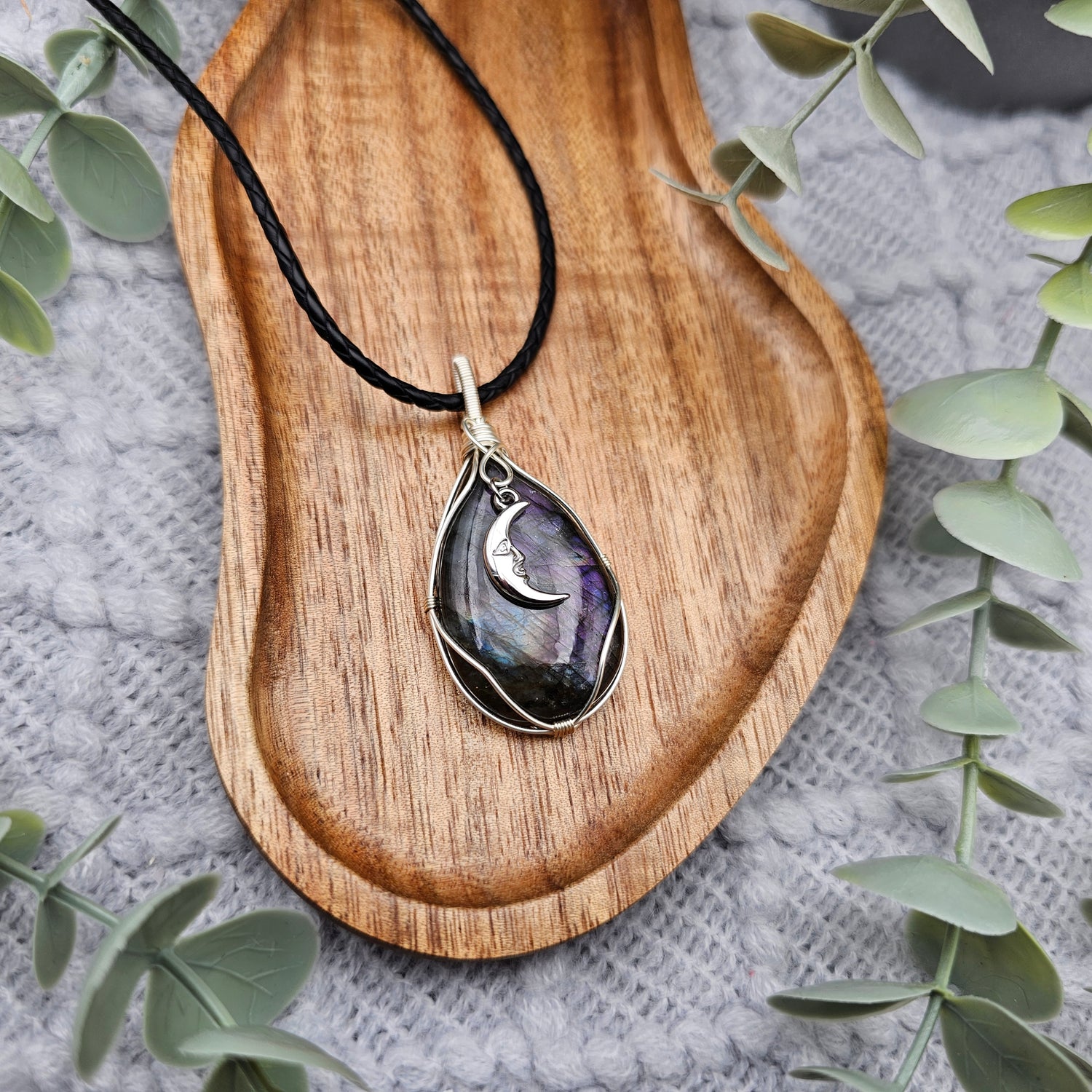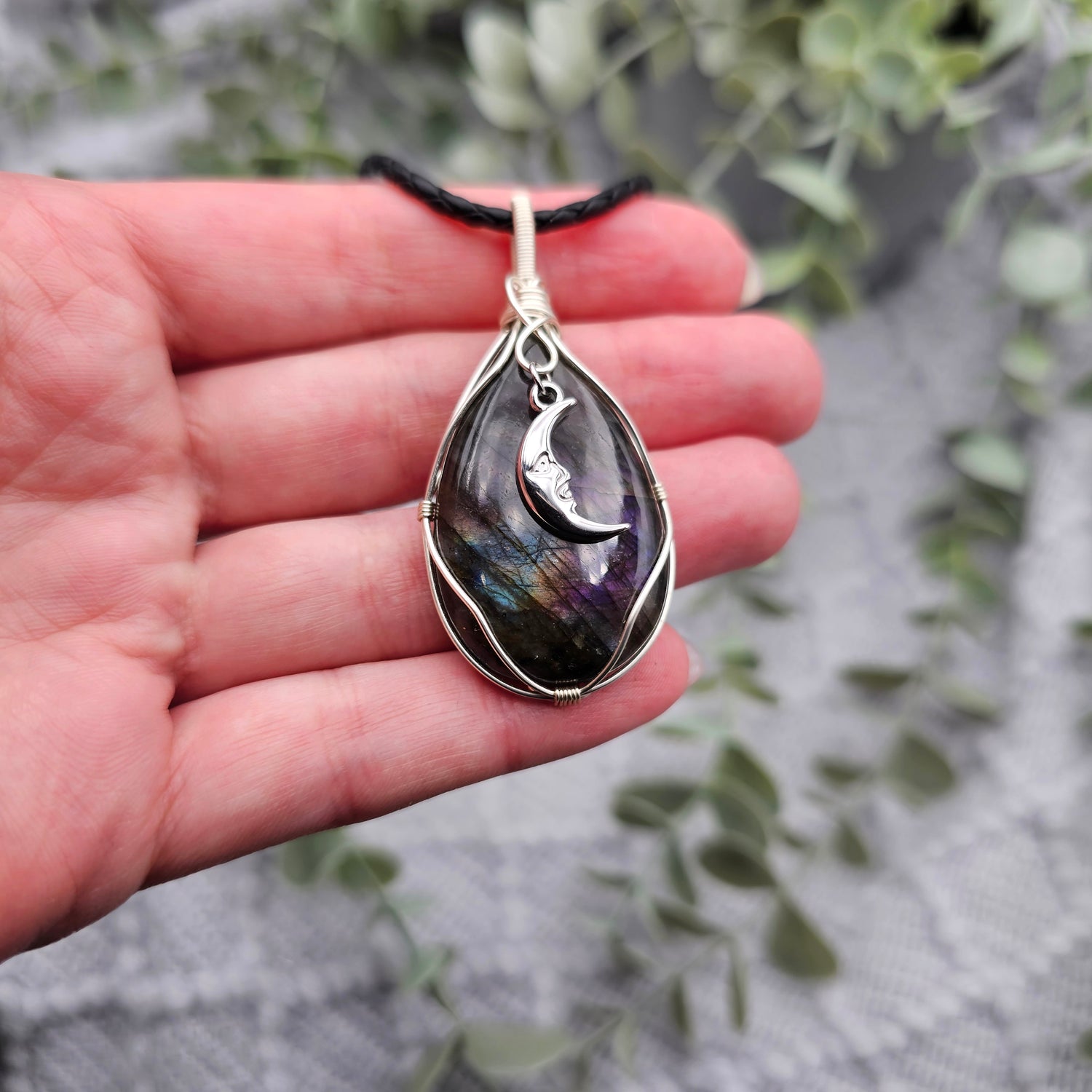 Labradorit & Mond Anhänger | Schmuckdraht | Edelstein Halskette