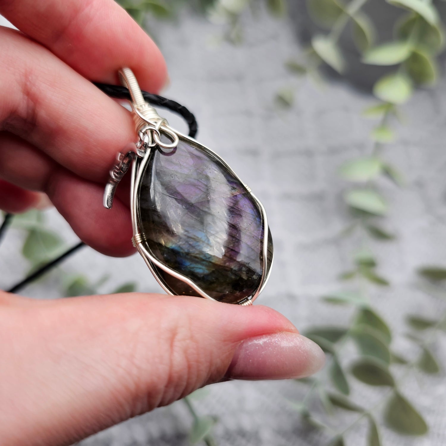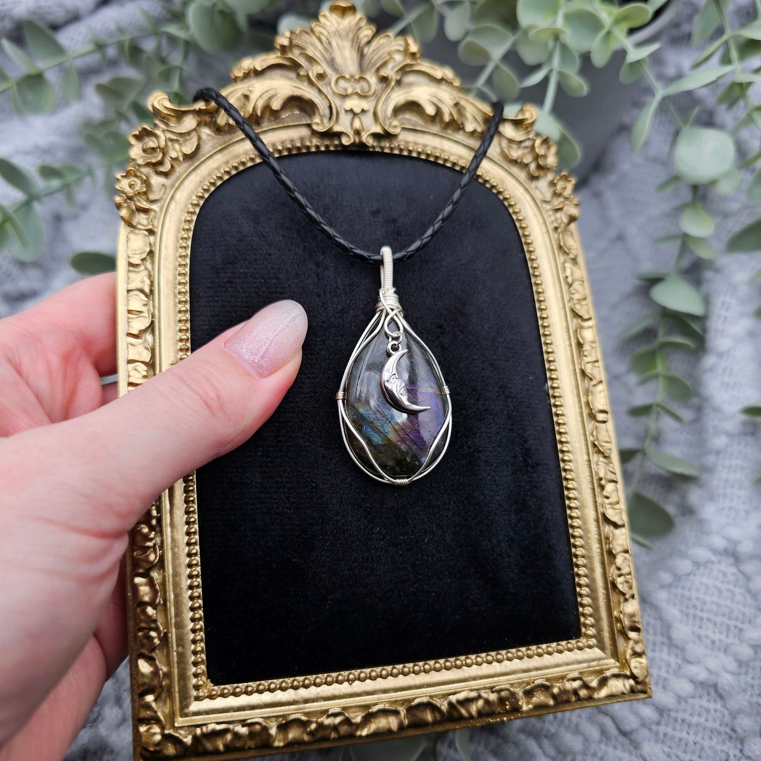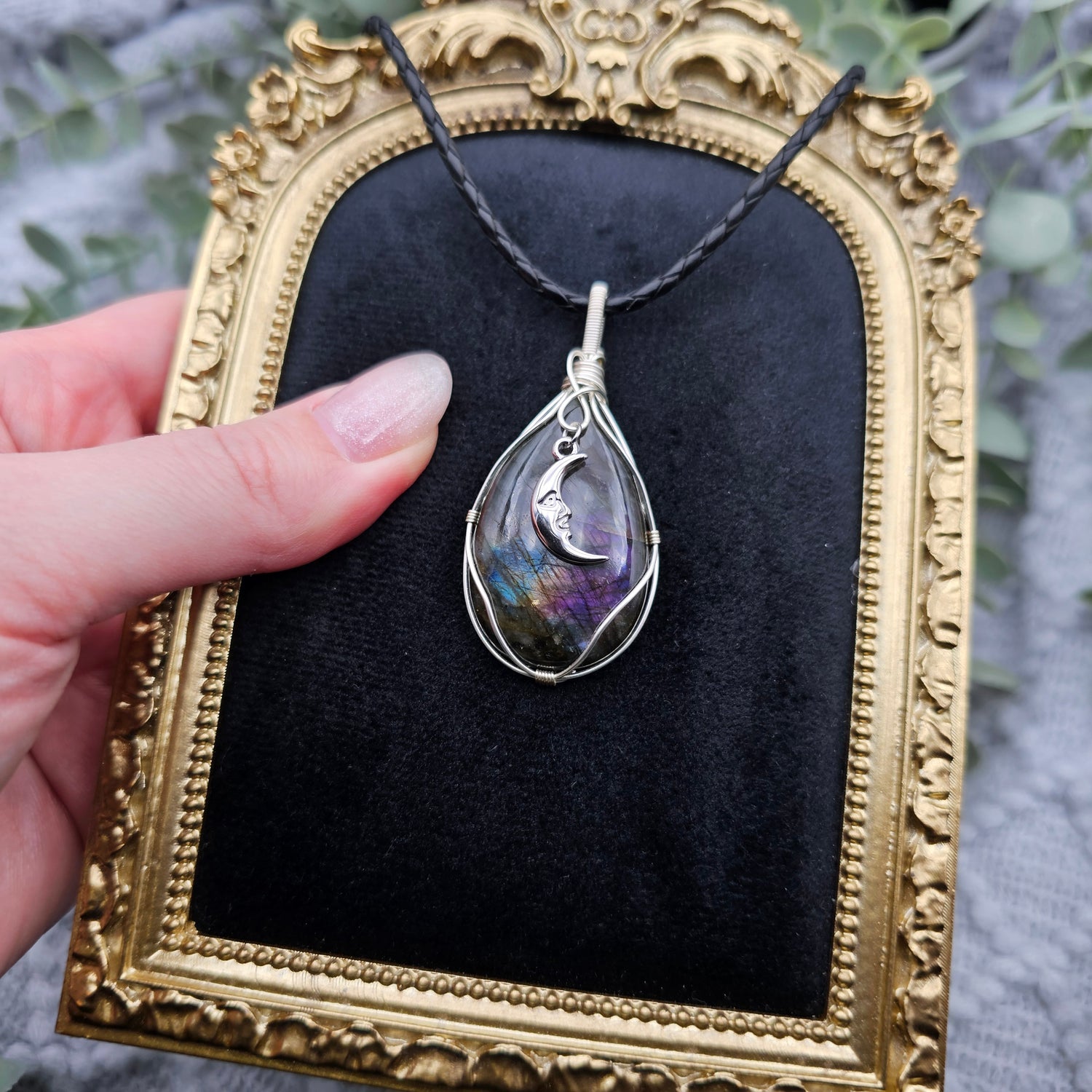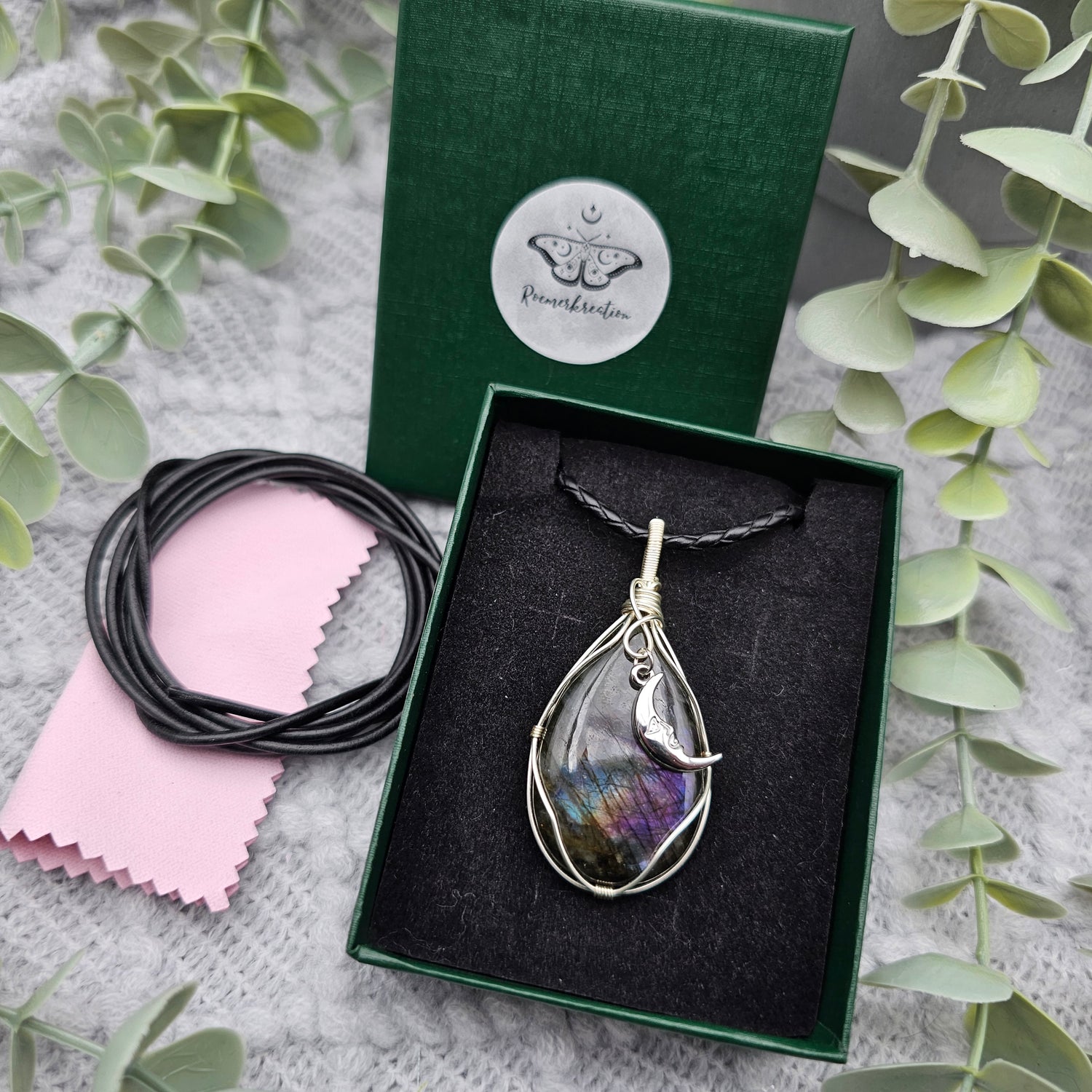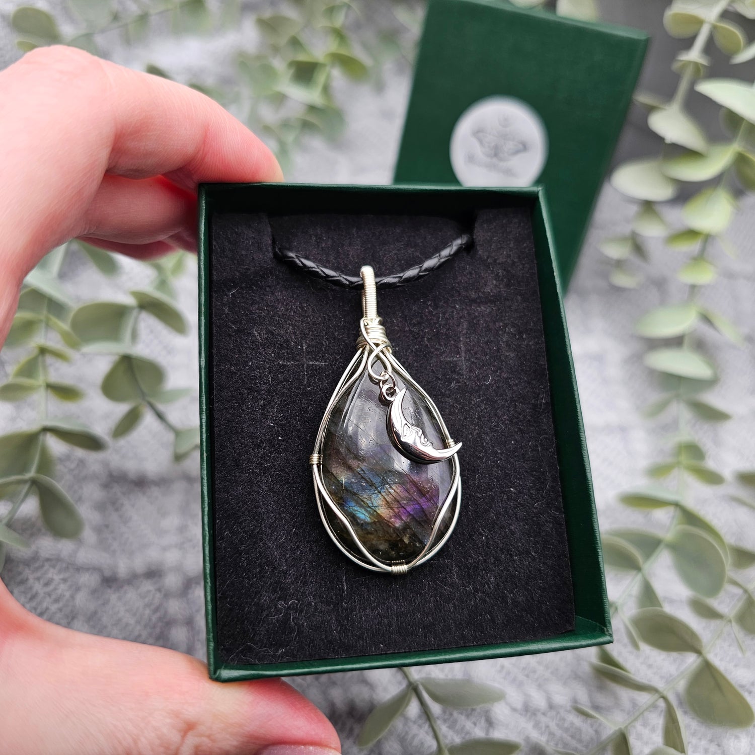 Labradorit & Mond Anhänger | Schmuckdraht | Edelstein Halskette