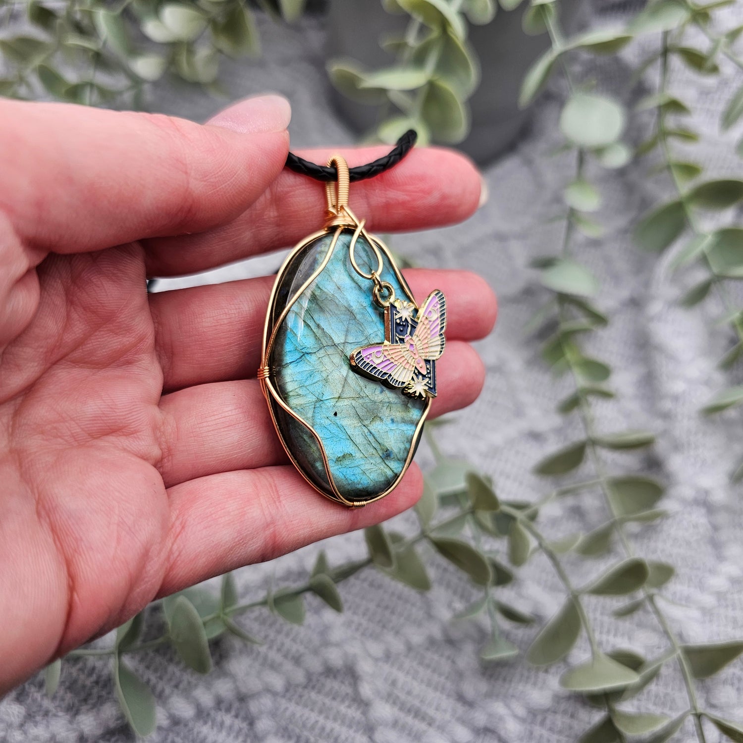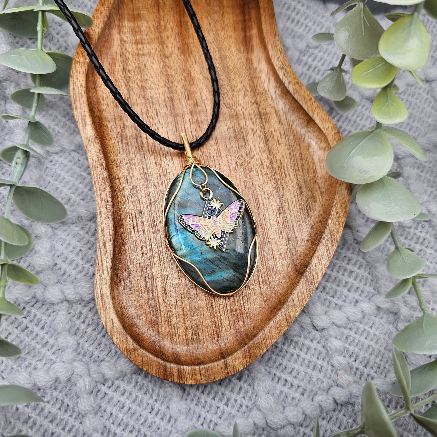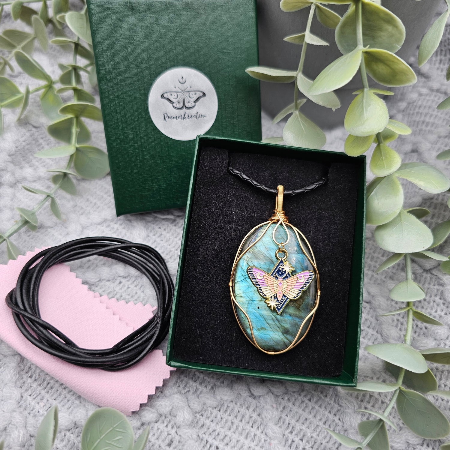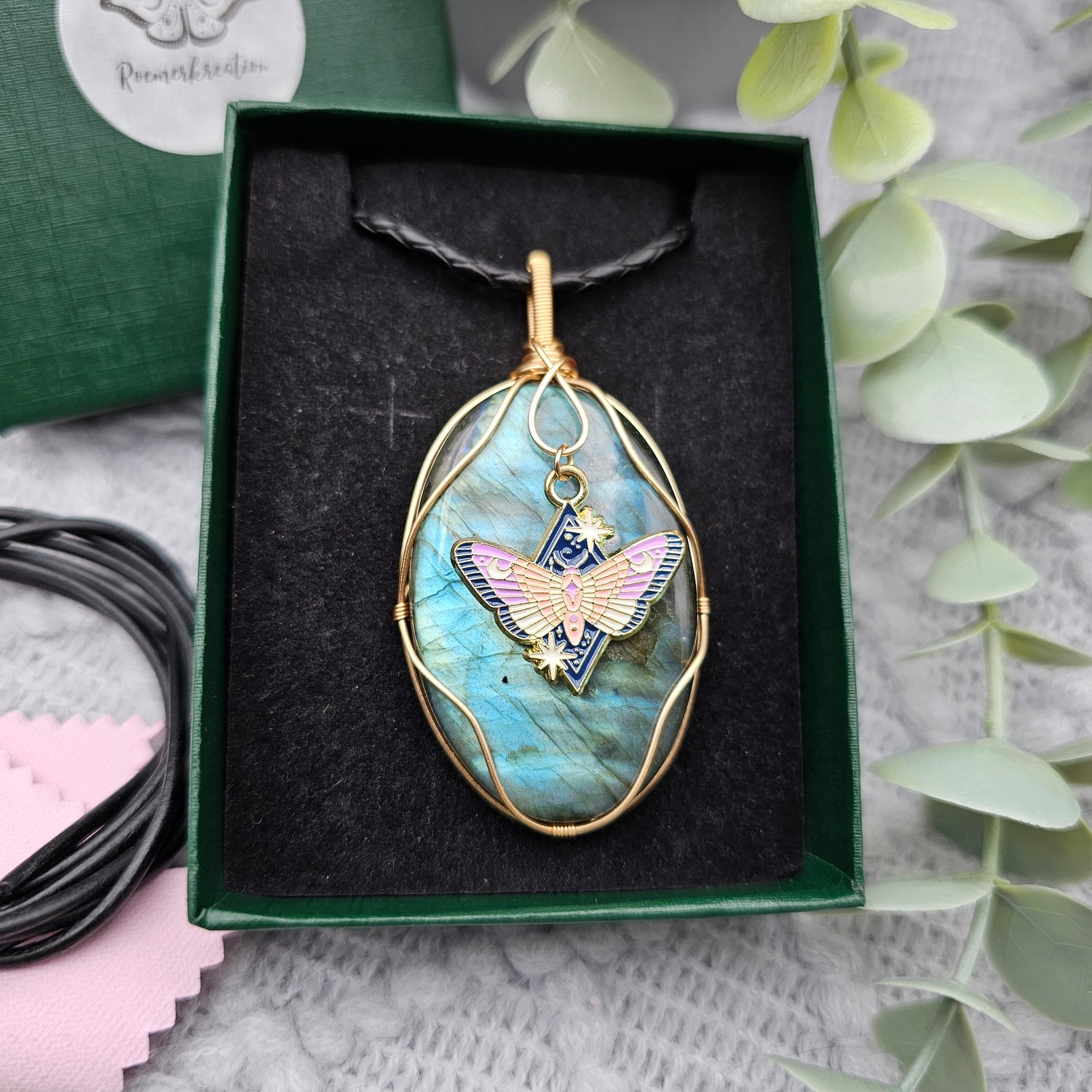 Labradorit & Motte Anhänger | Schmuckdraht | Edelstein Halskette