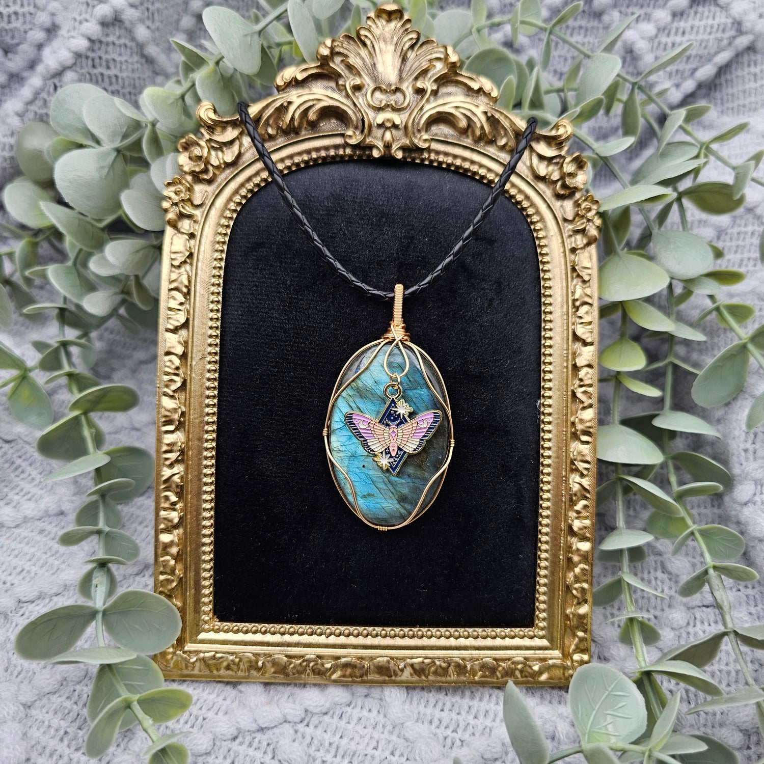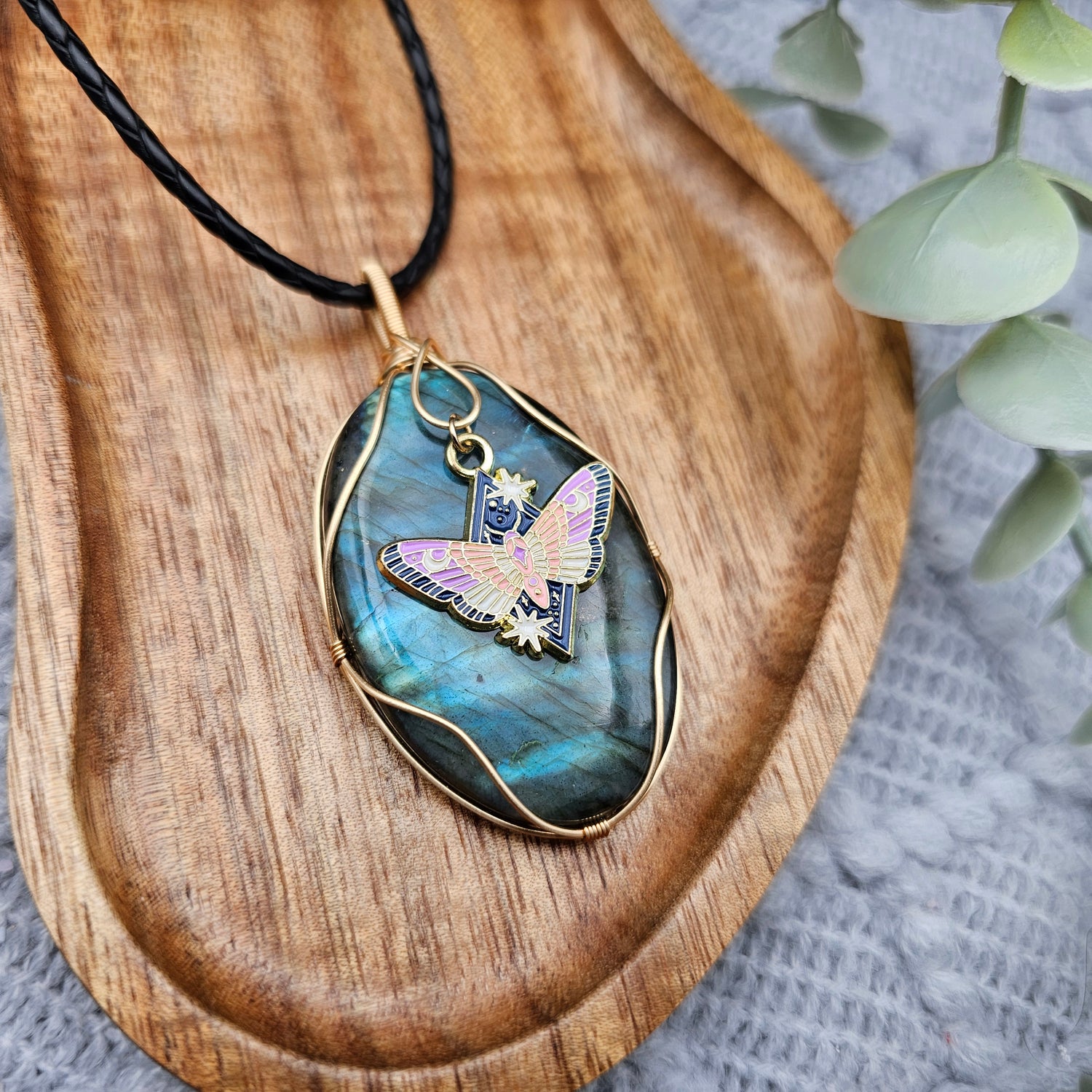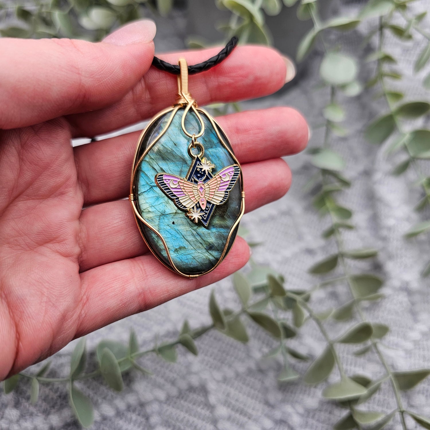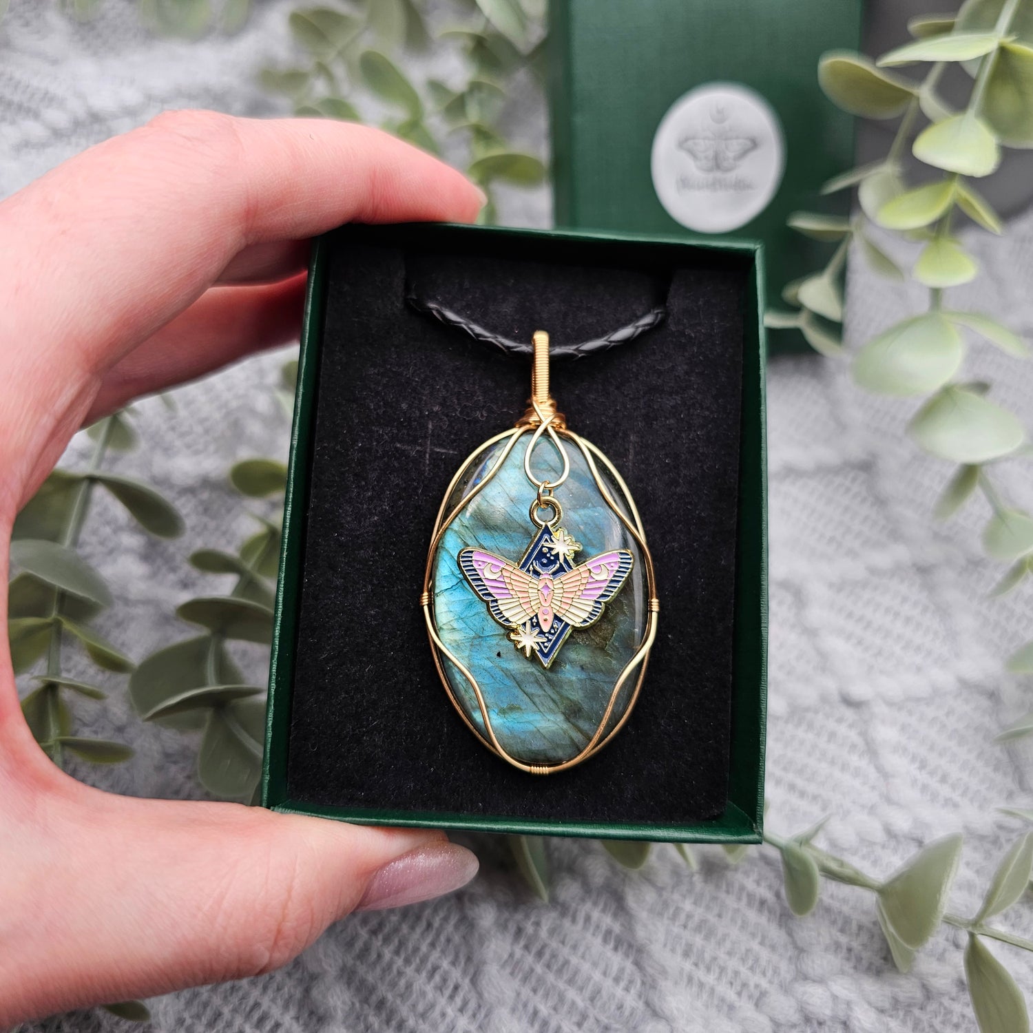 Labradorit & Motte Anhänger | Schmuckdraht | Edelstein Halskette