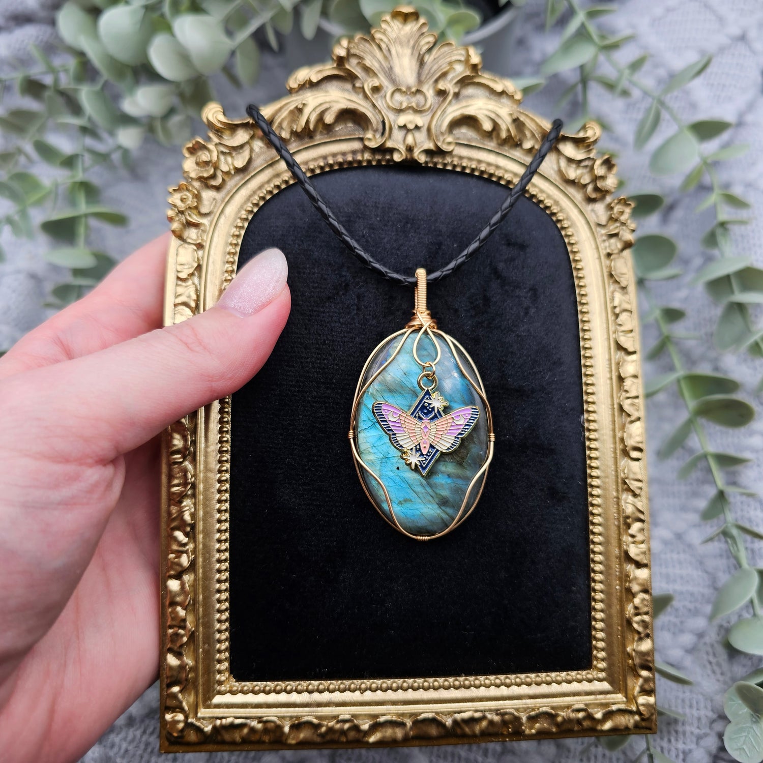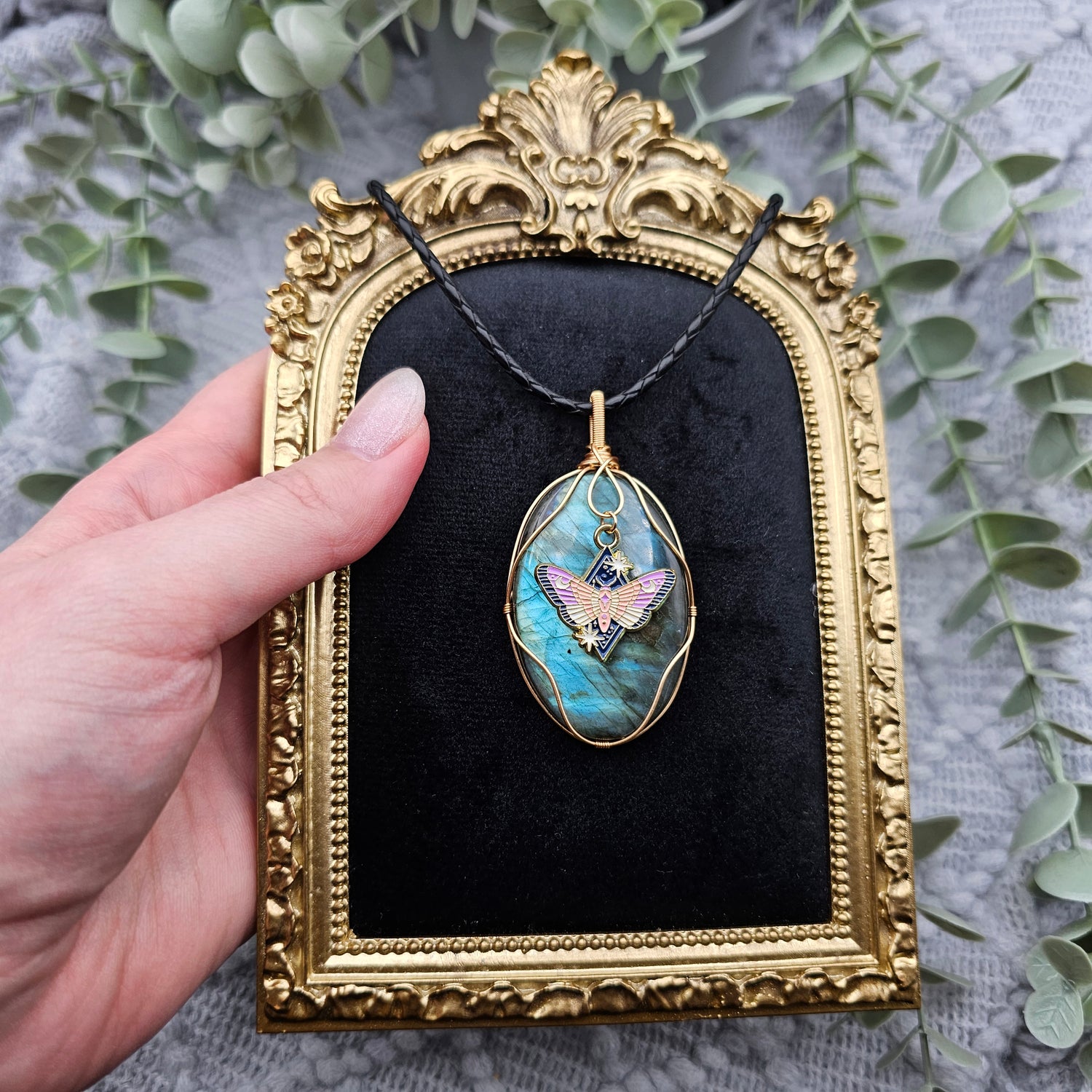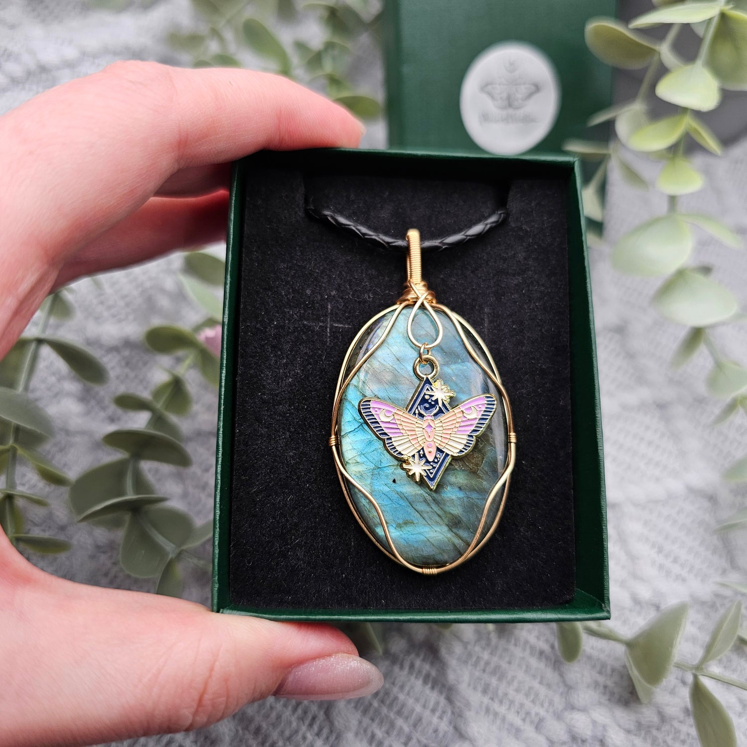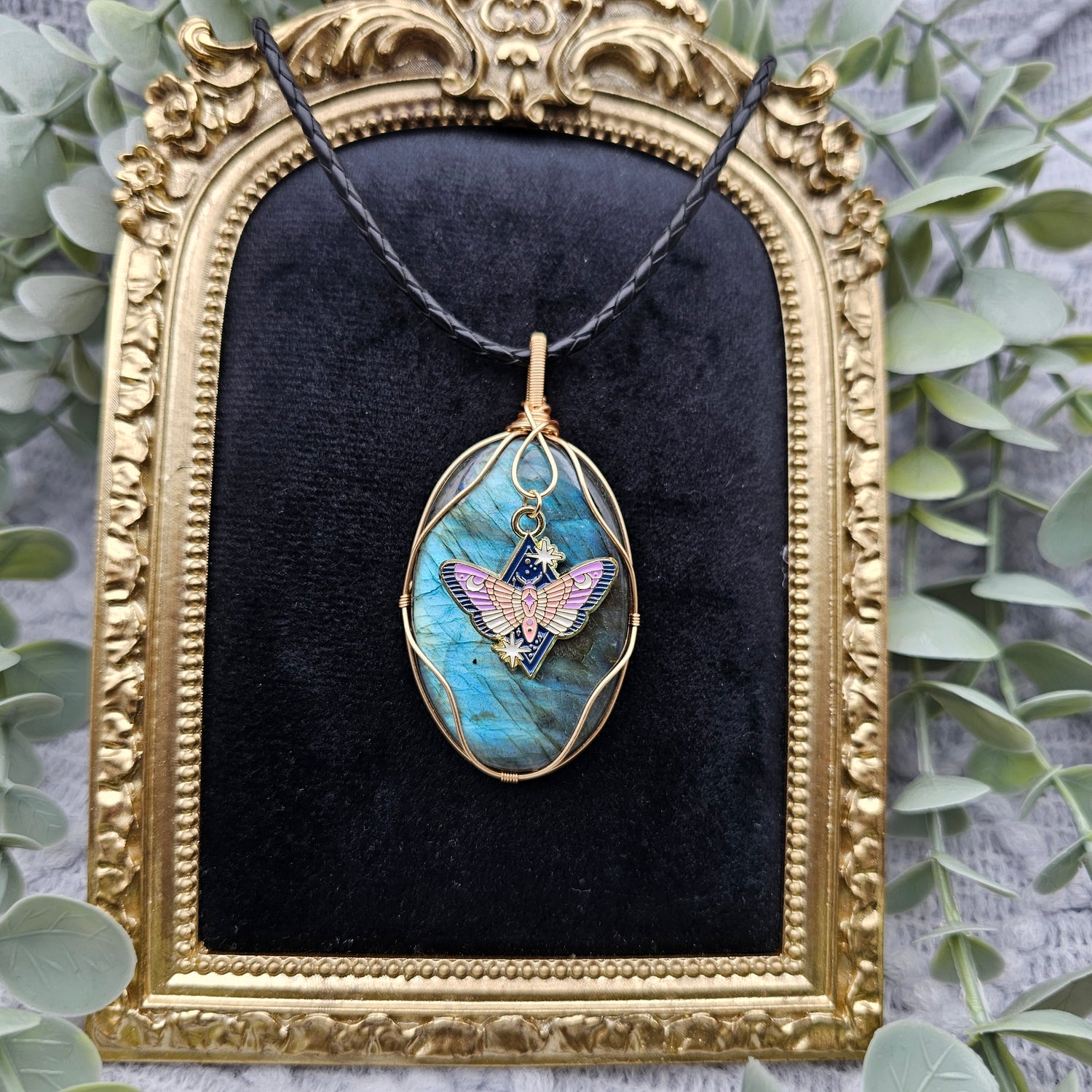 Labradorit & Motte Anhänger | Schmuckdraht | Edelstein Halskette