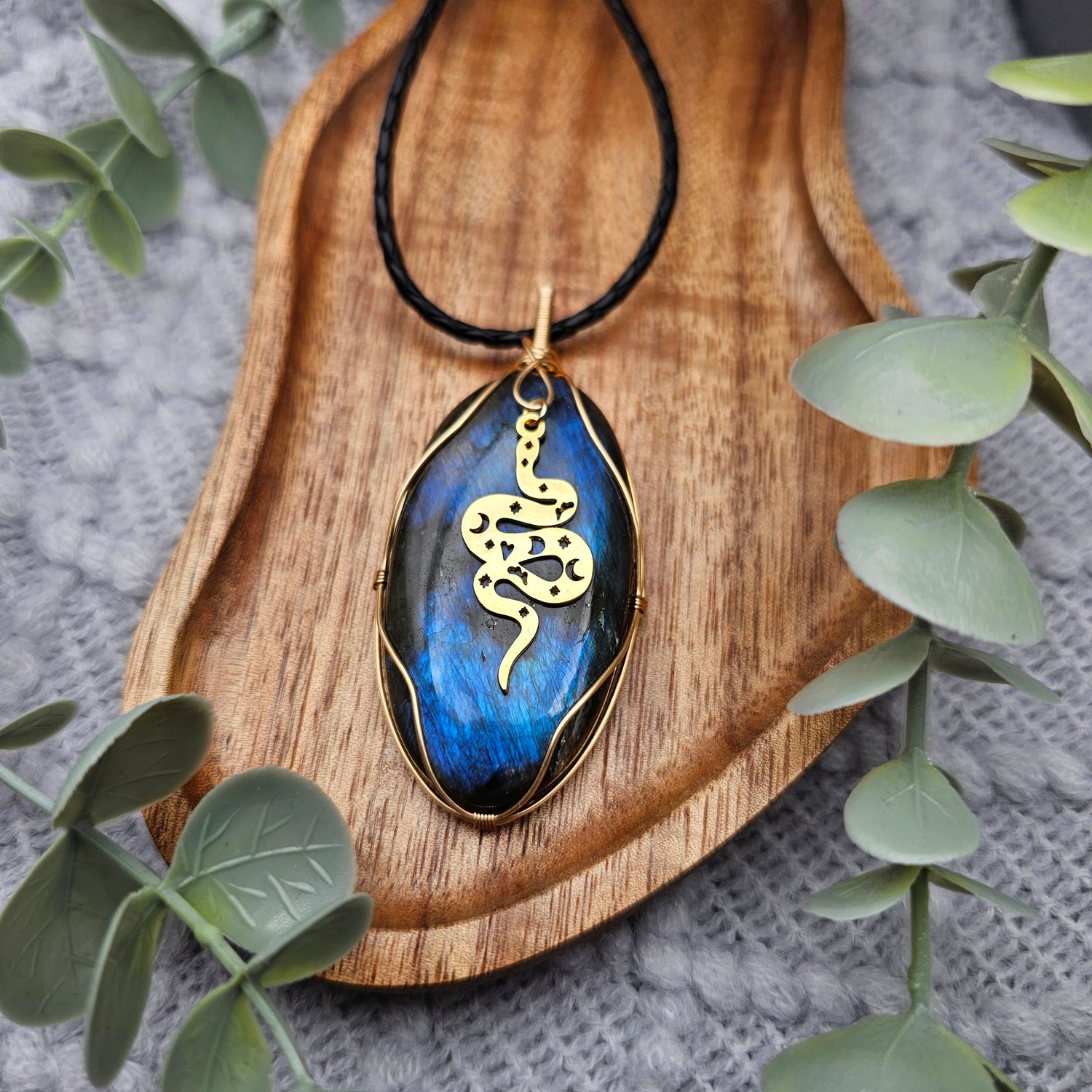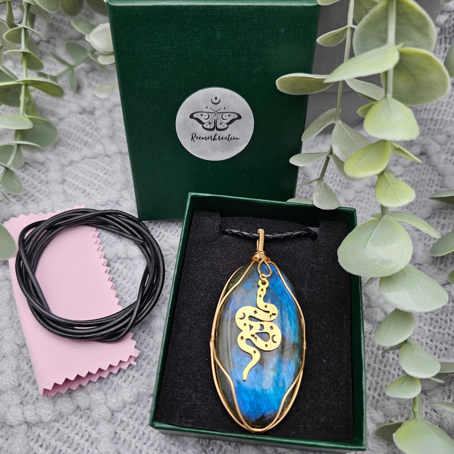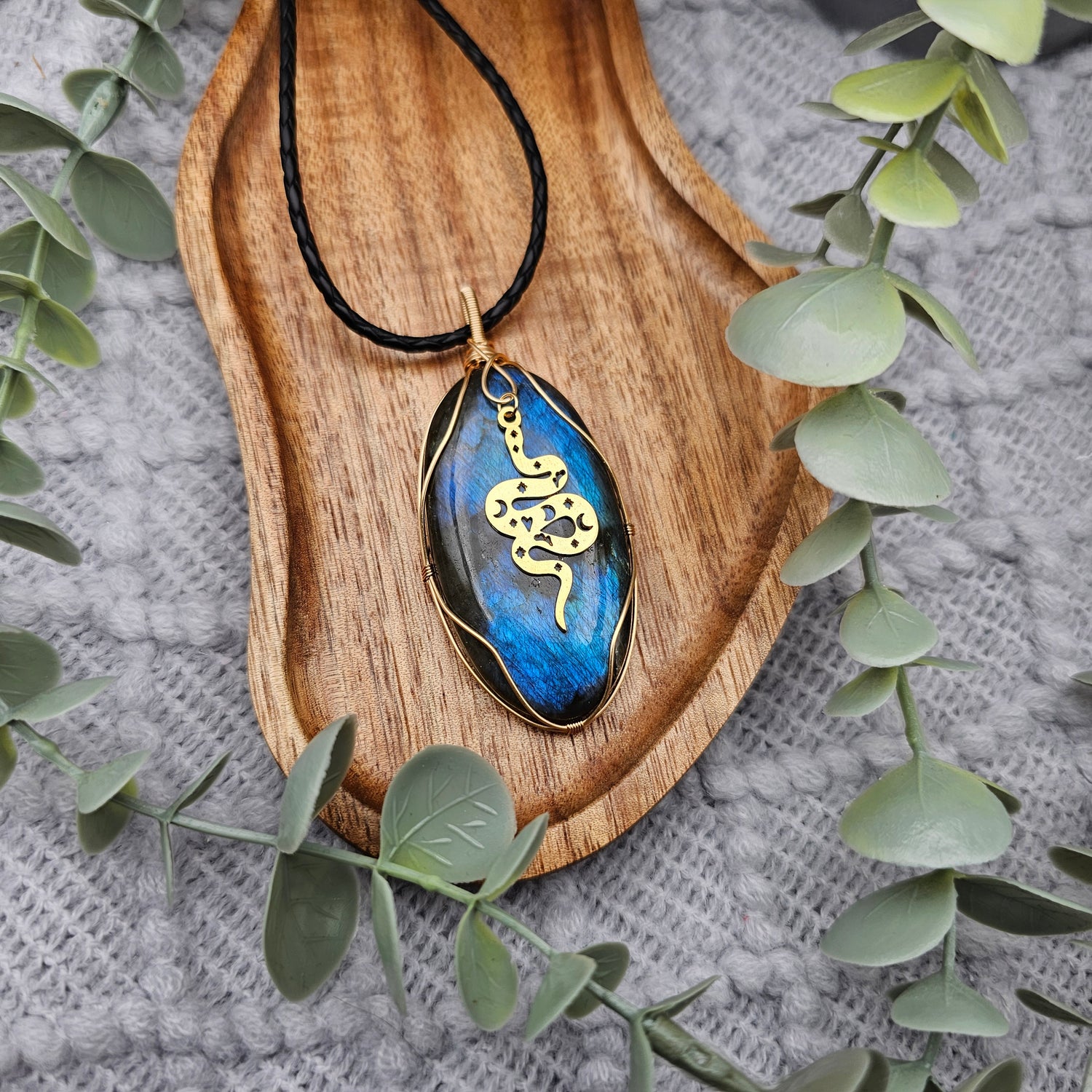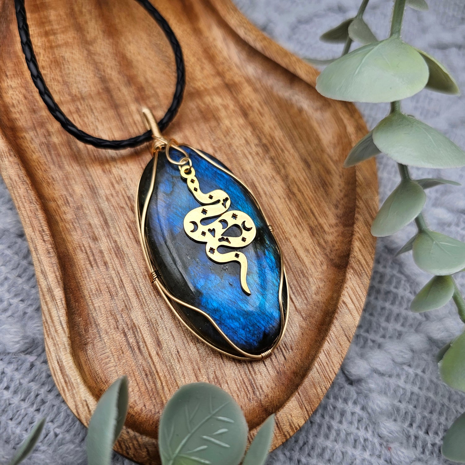 Labradorit & Schlange Anhänger | Schmuckdraht | Edelstein Halskette
