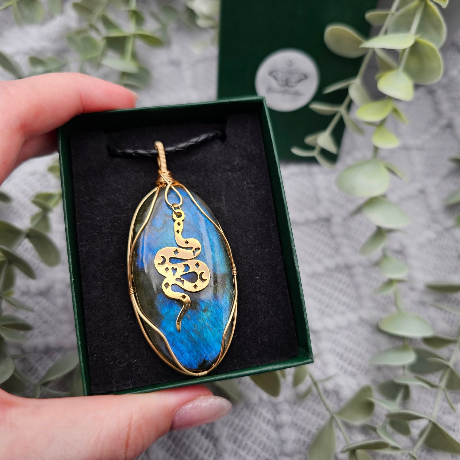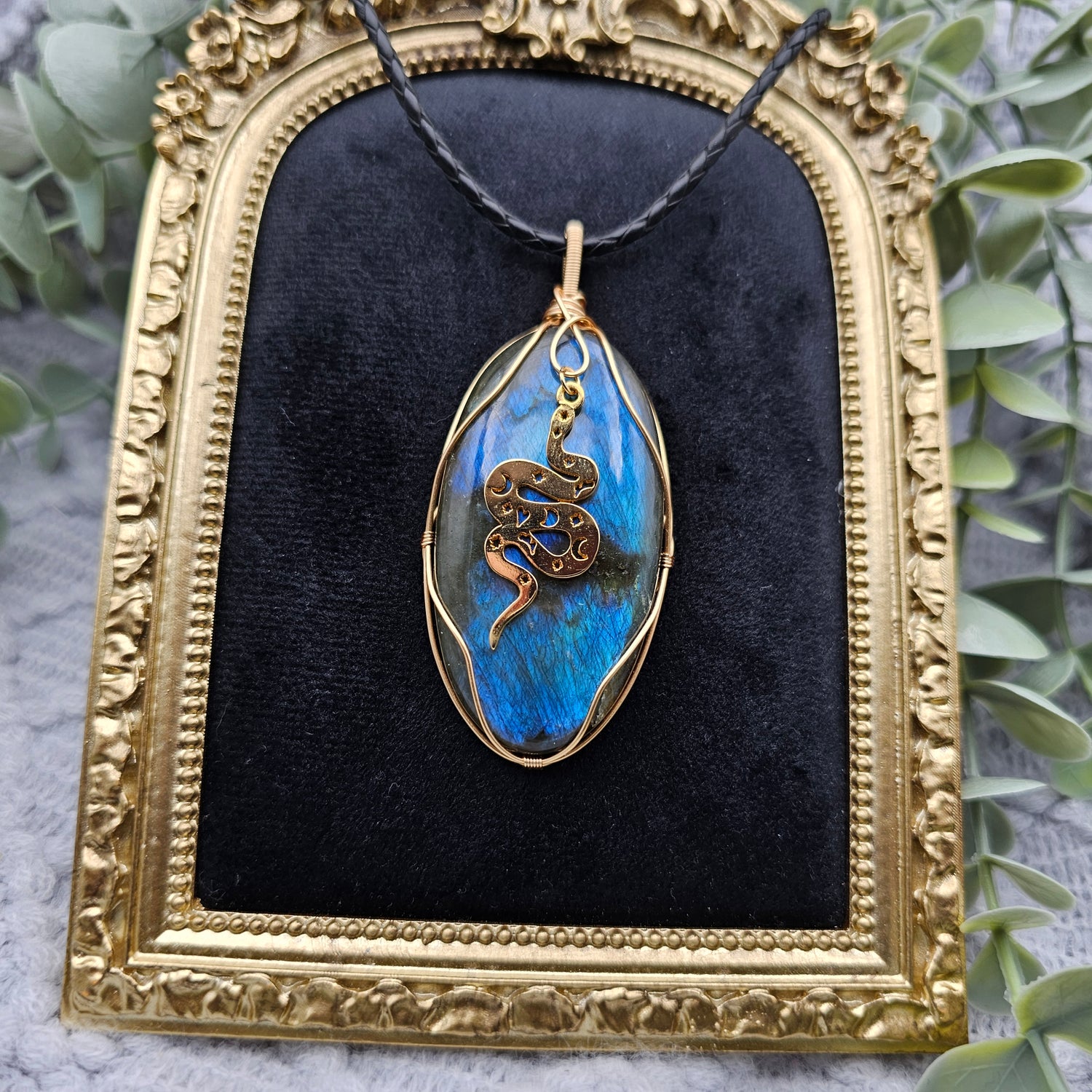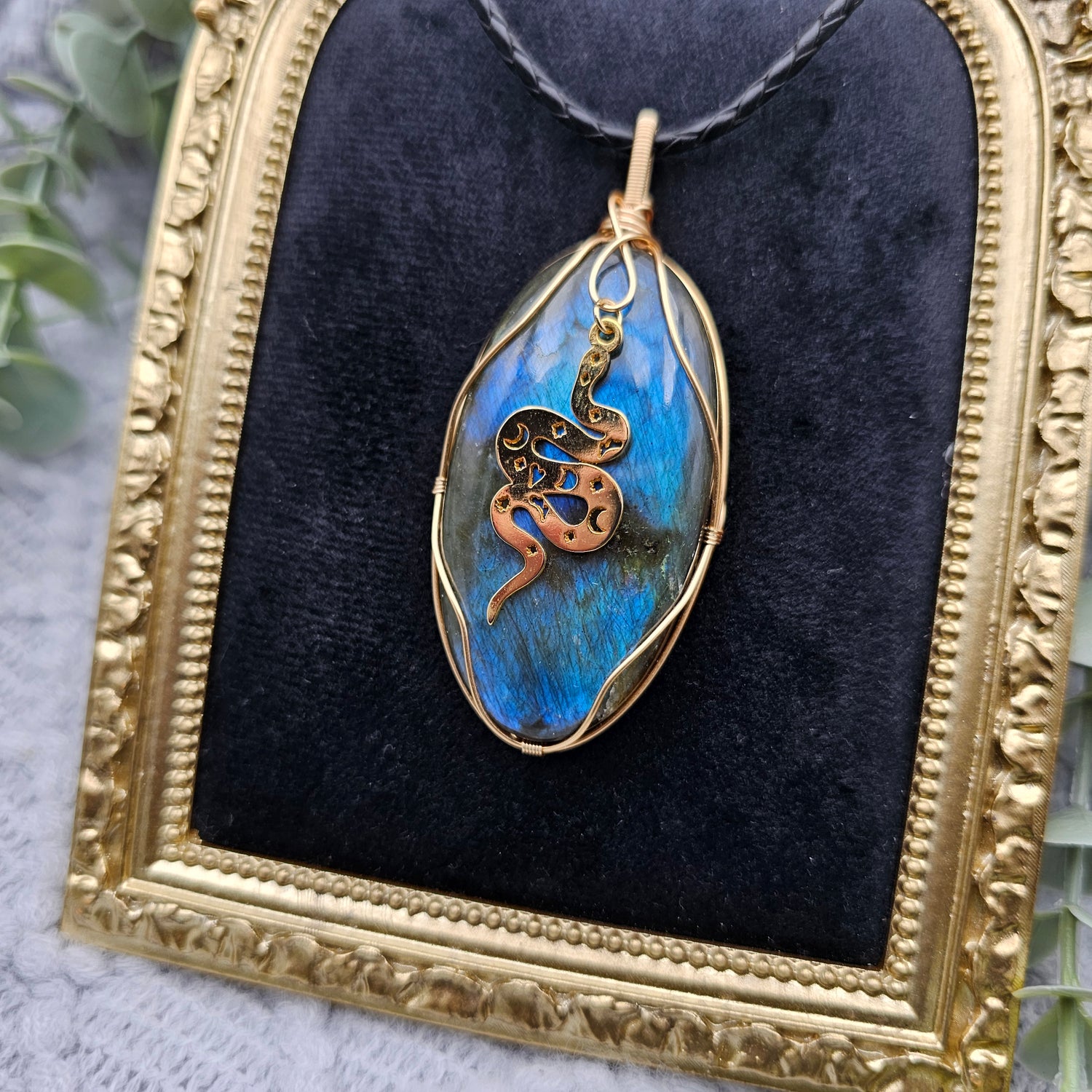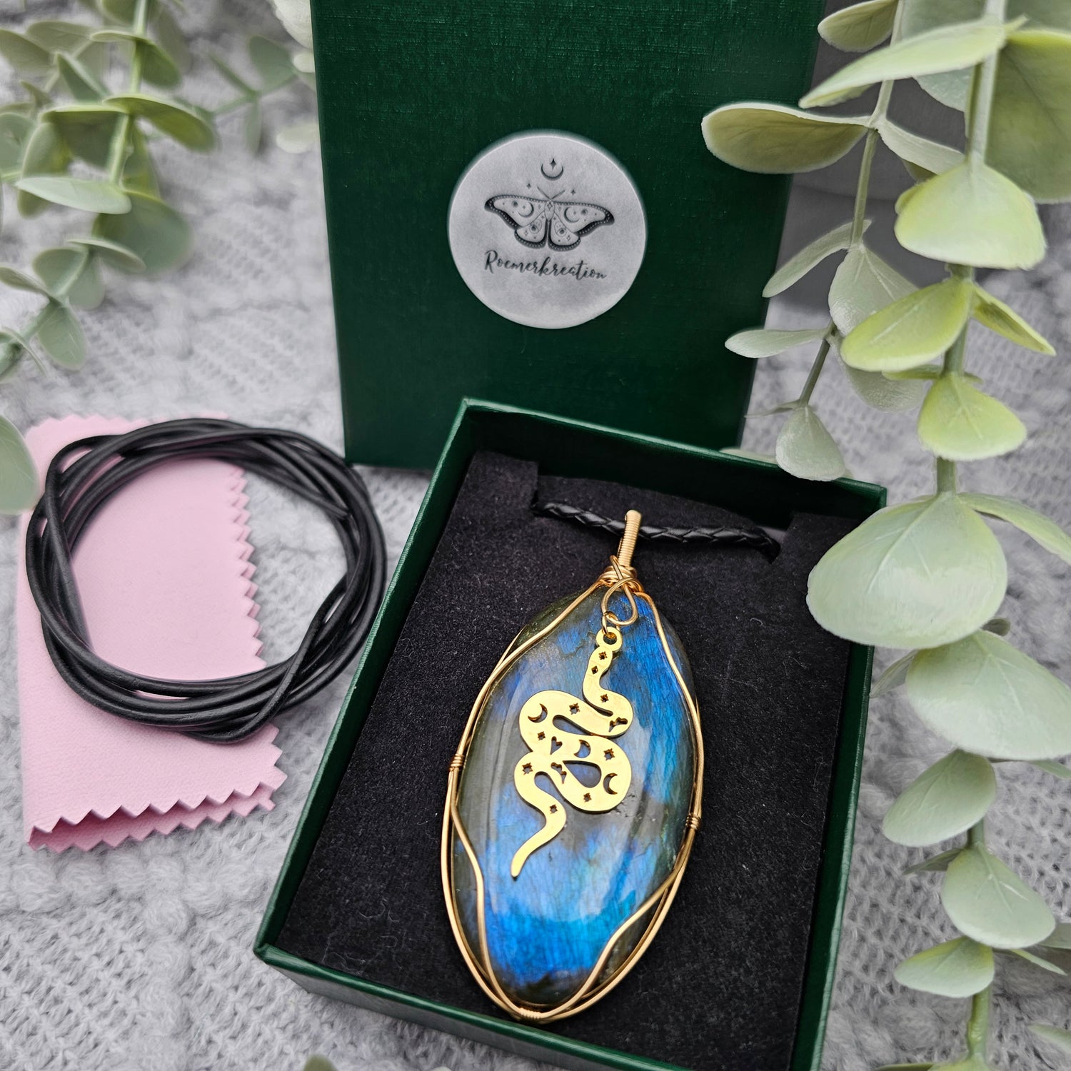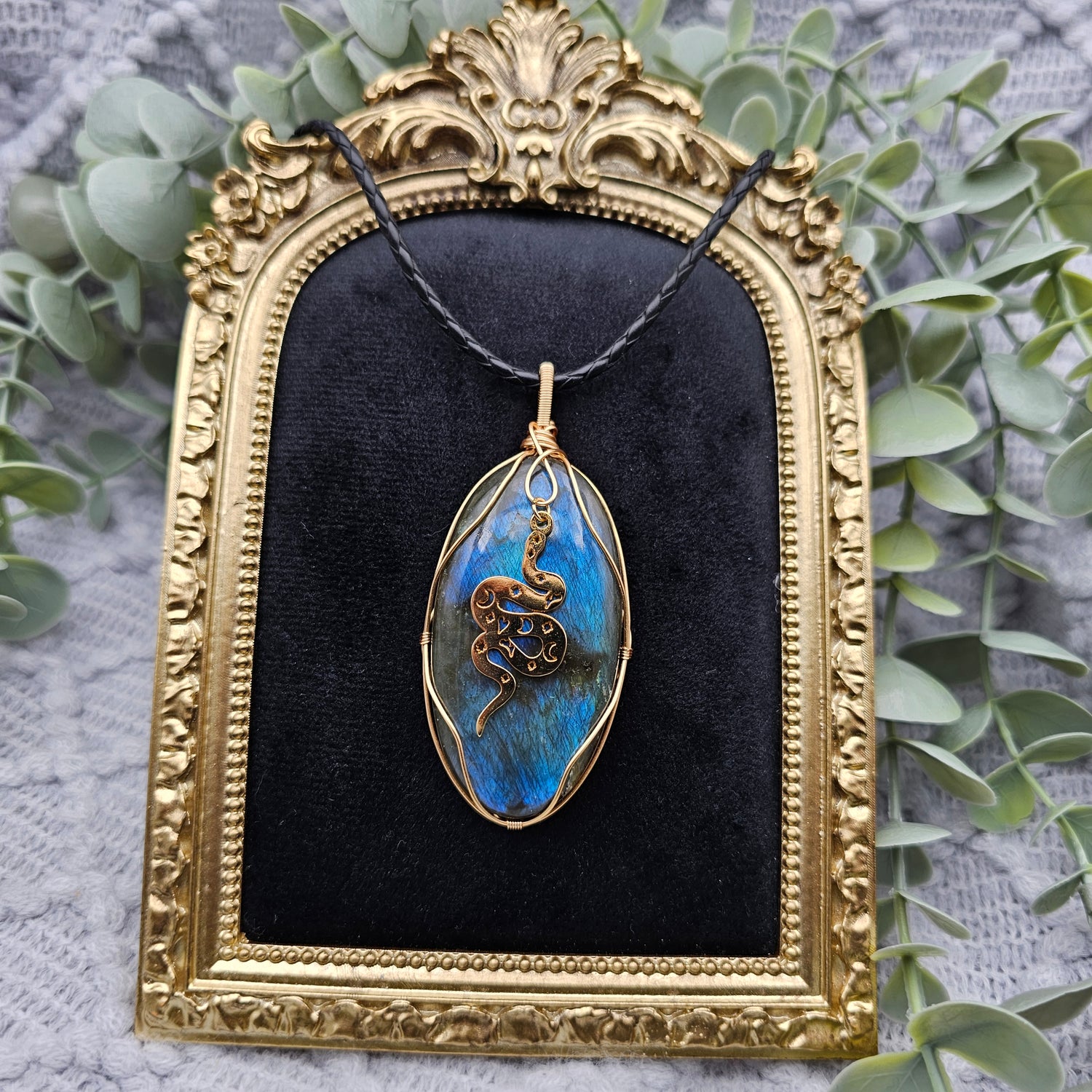 Labradorit & Schlange Anhänger | Schmuckdraht | Edelstein Halskette