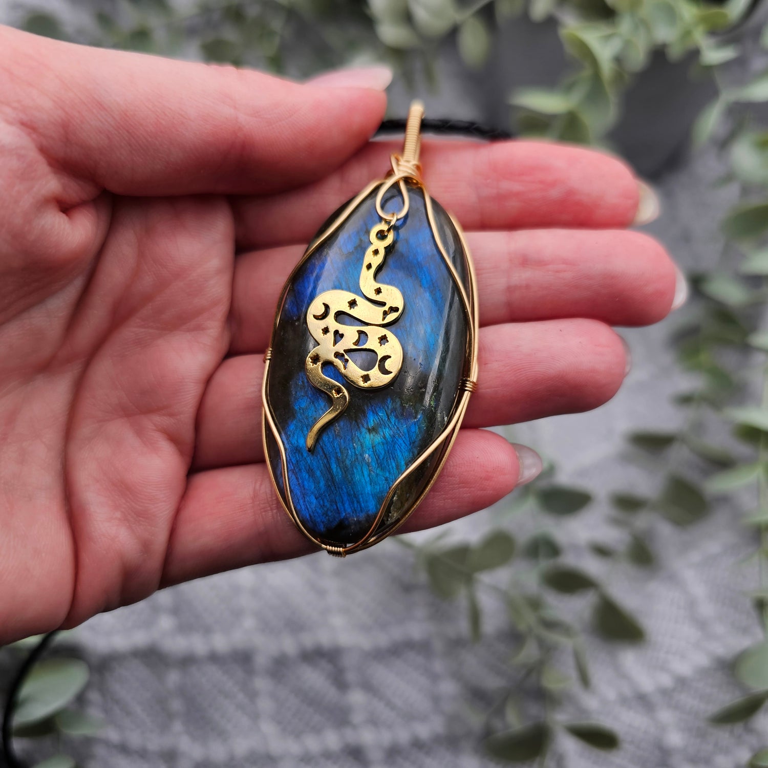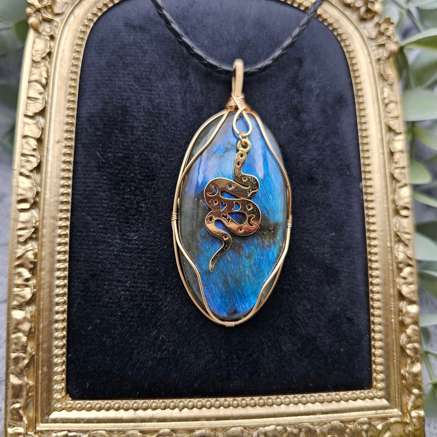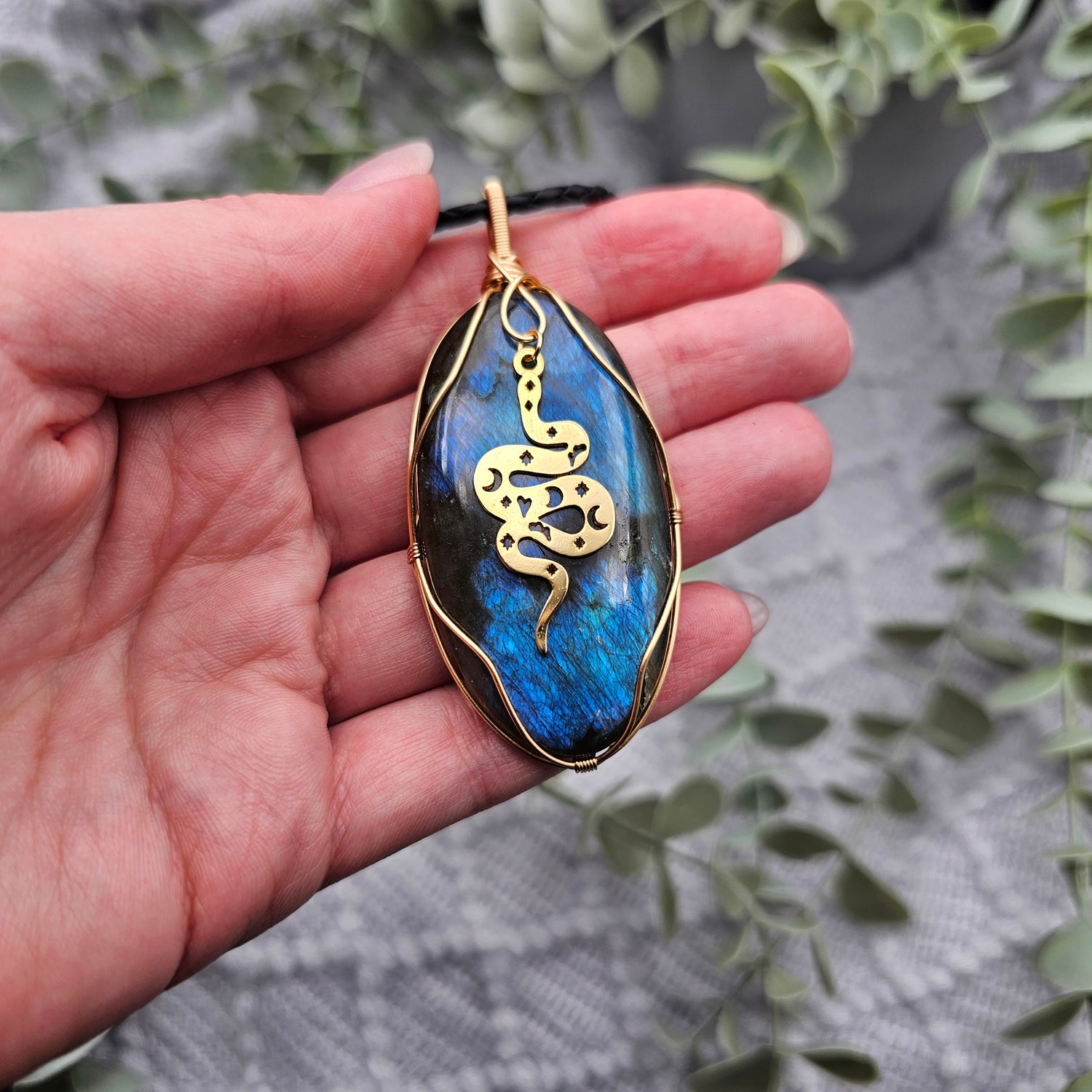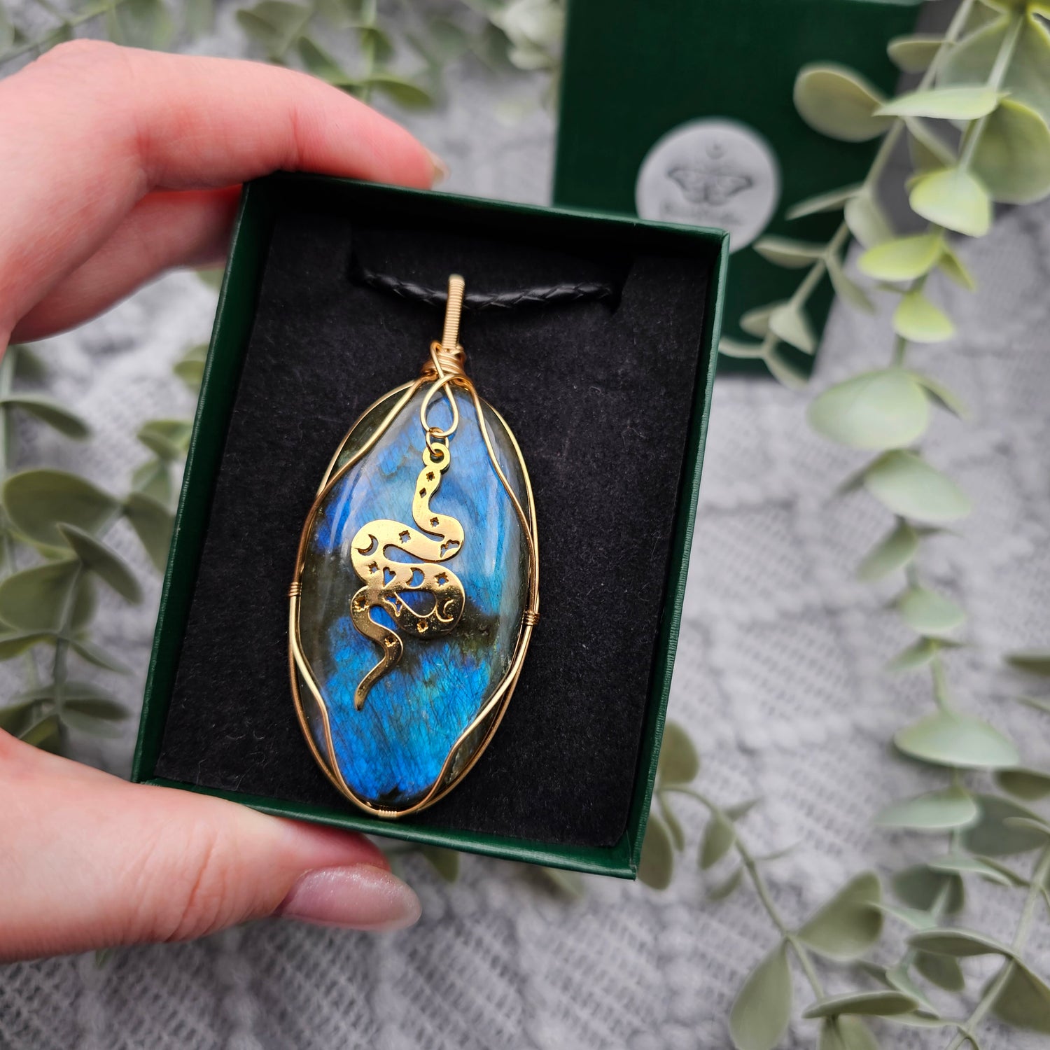 Labradorit & Schlange Anhänger | Schmuckdraht | Edelstein Halskette