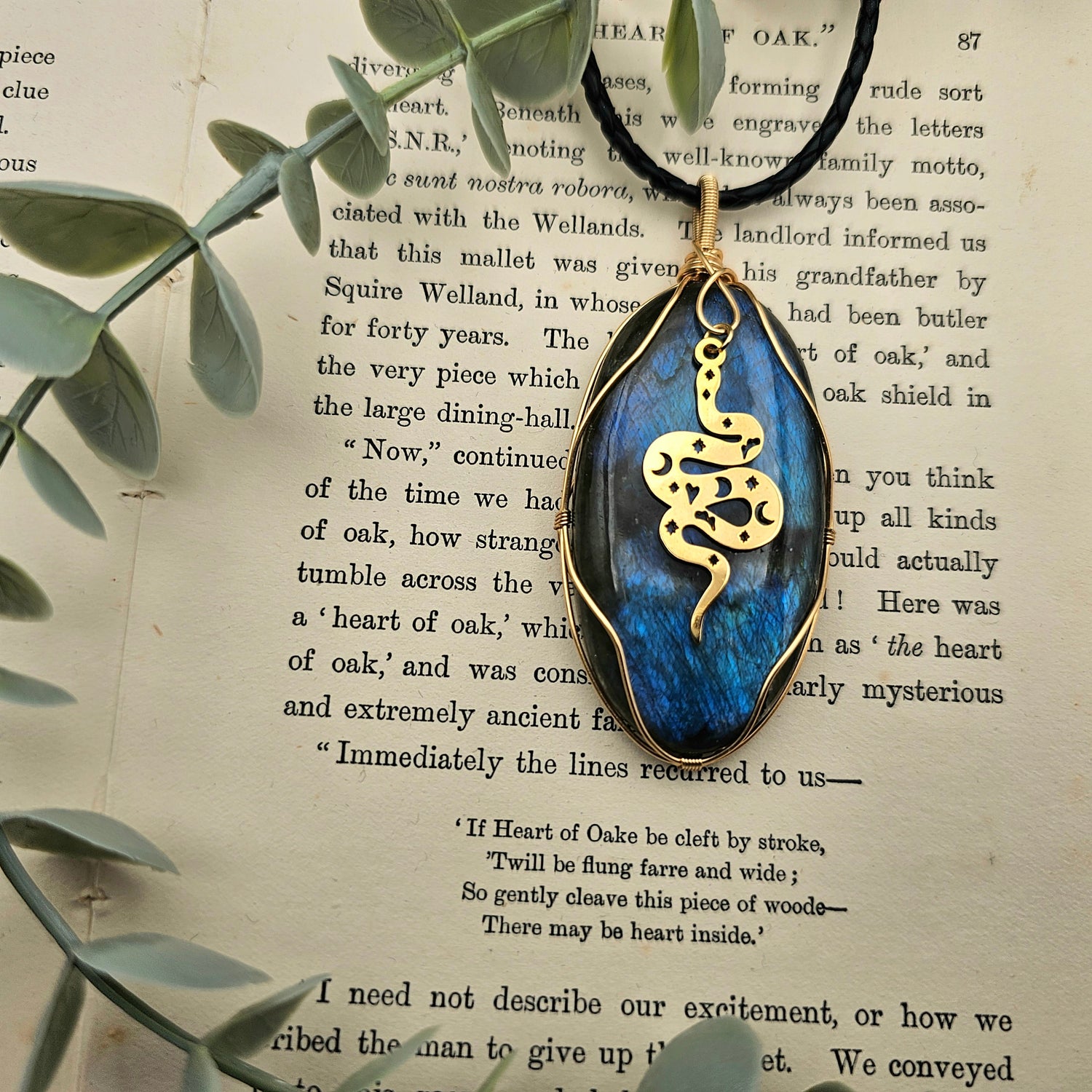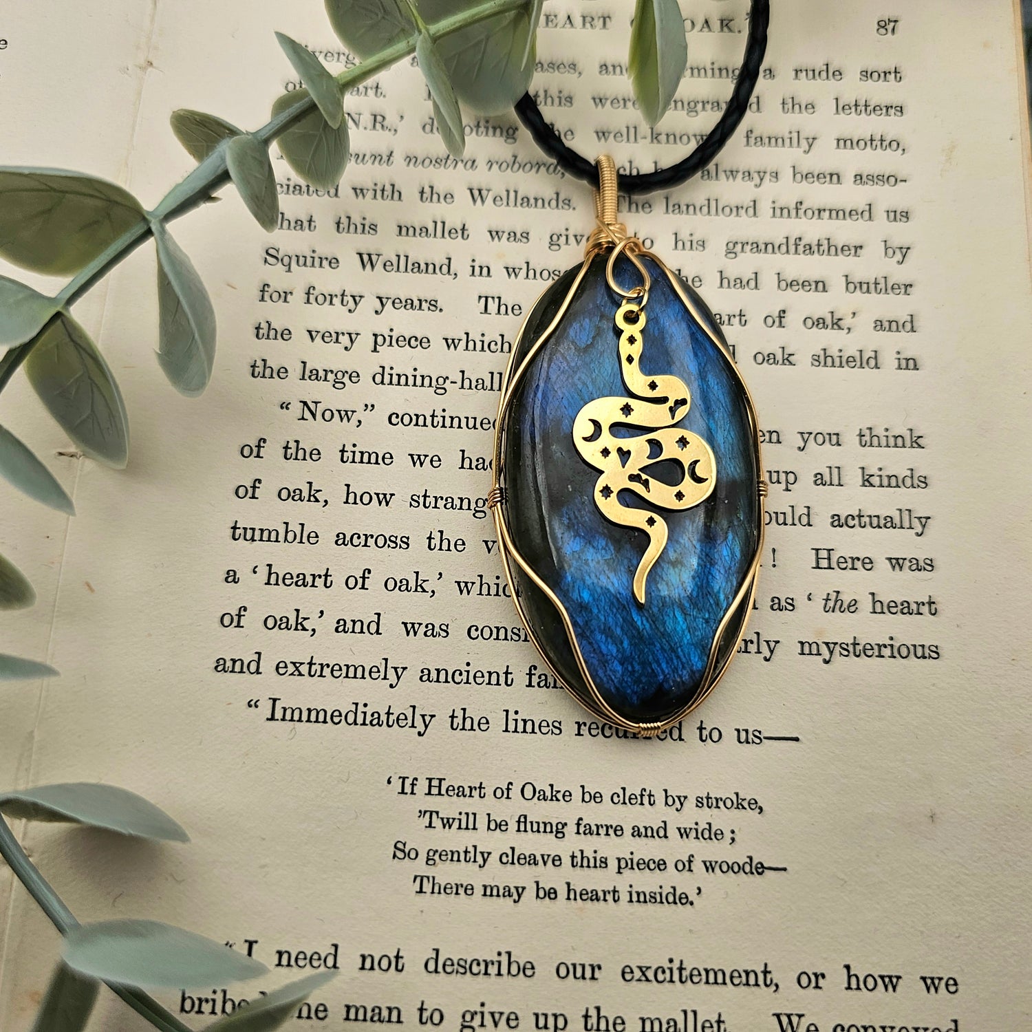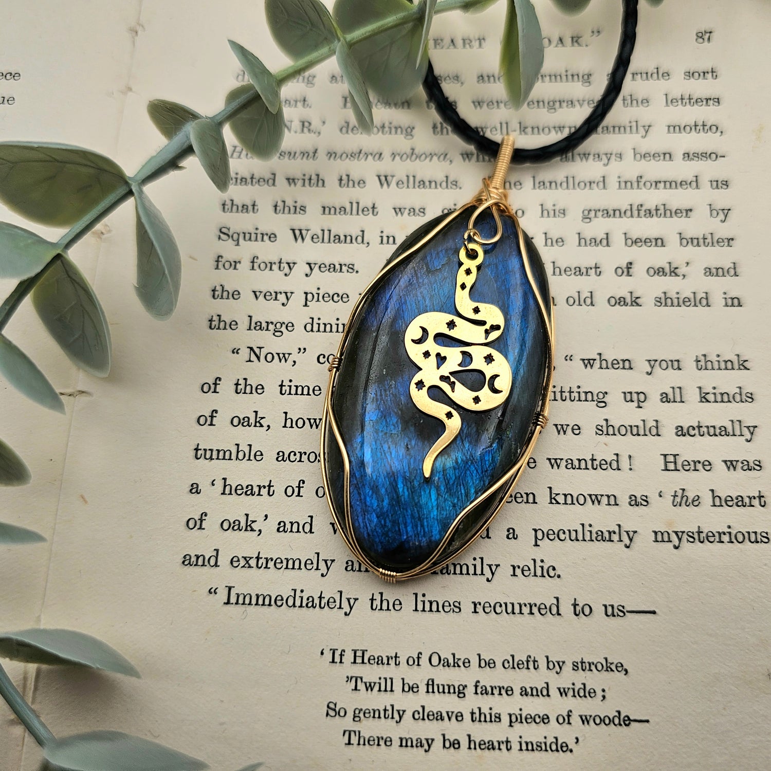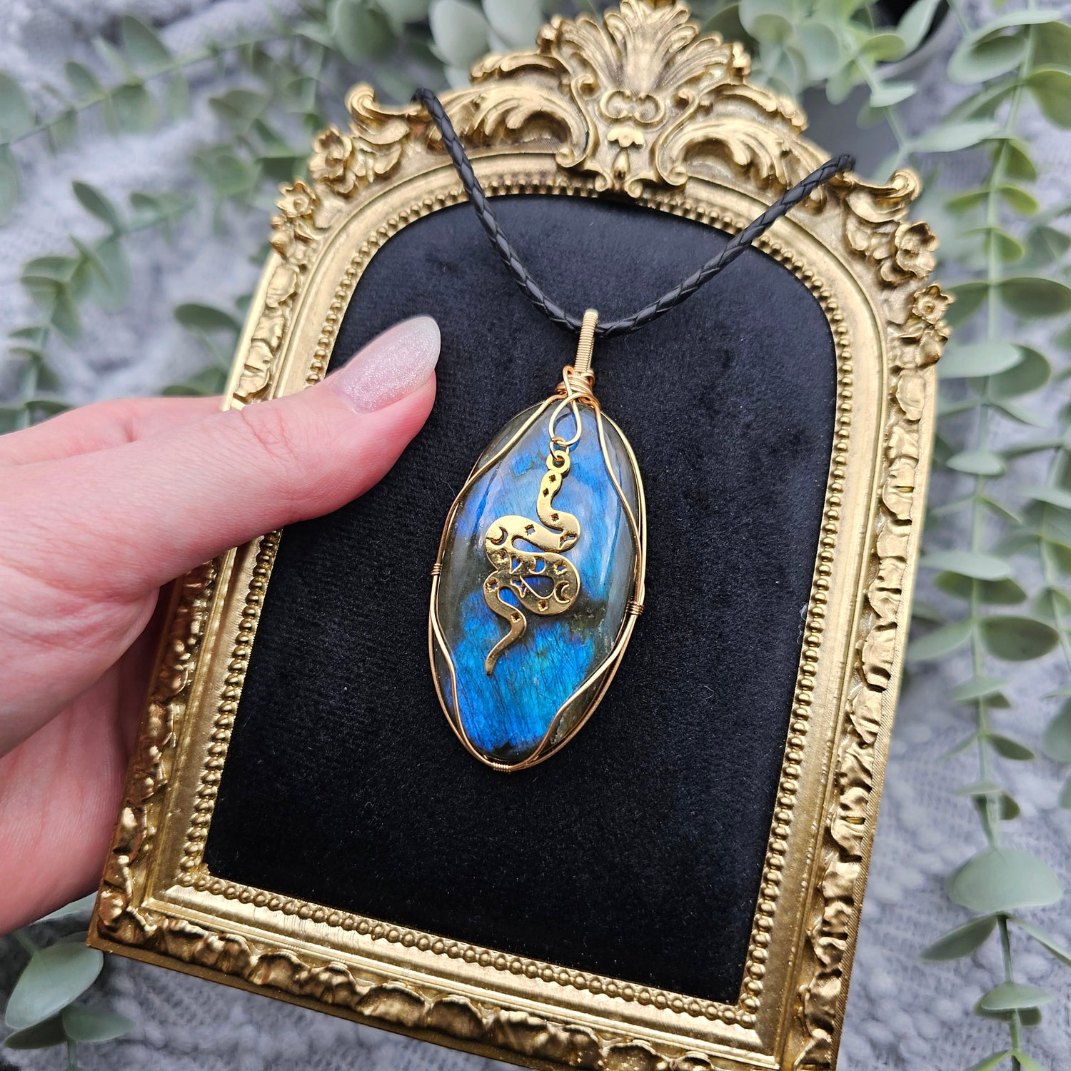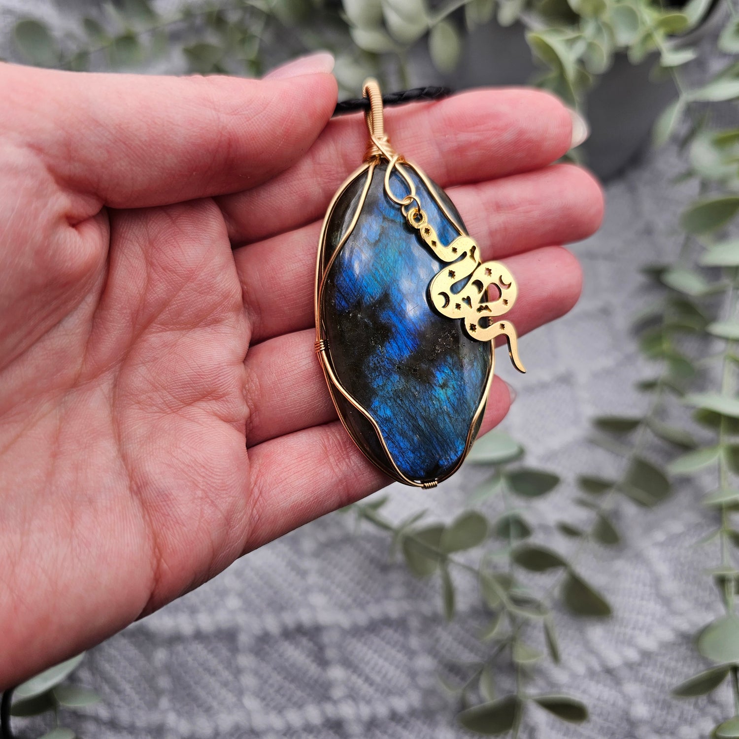 Labradorit & Schlange Anhänger | Schmuckdraht | Edelstein Halskette