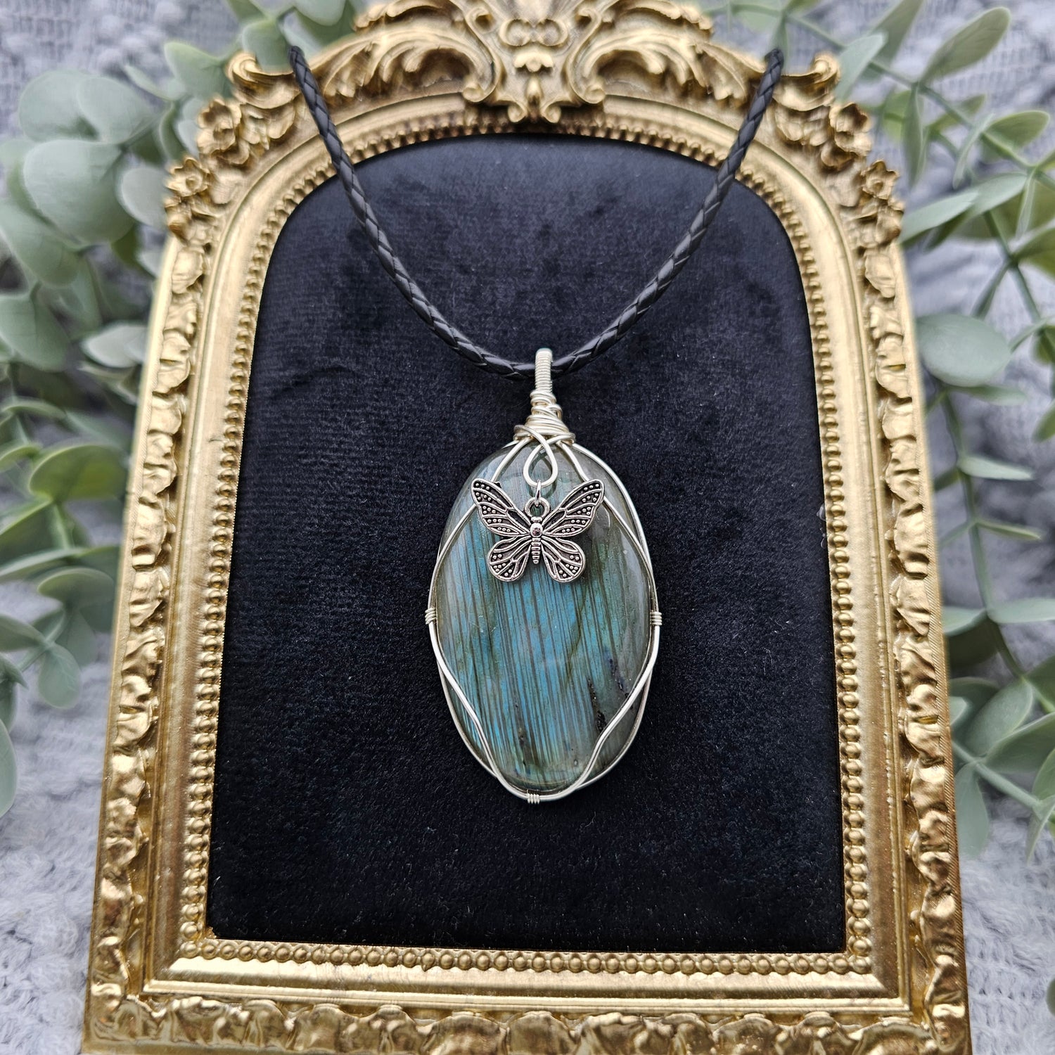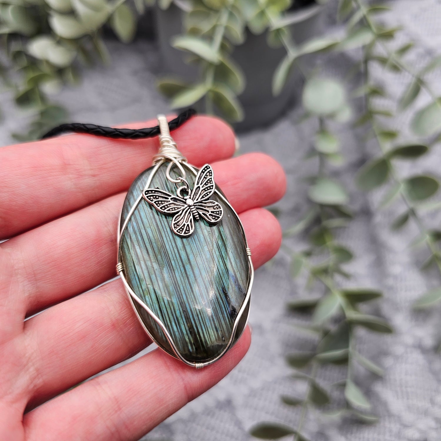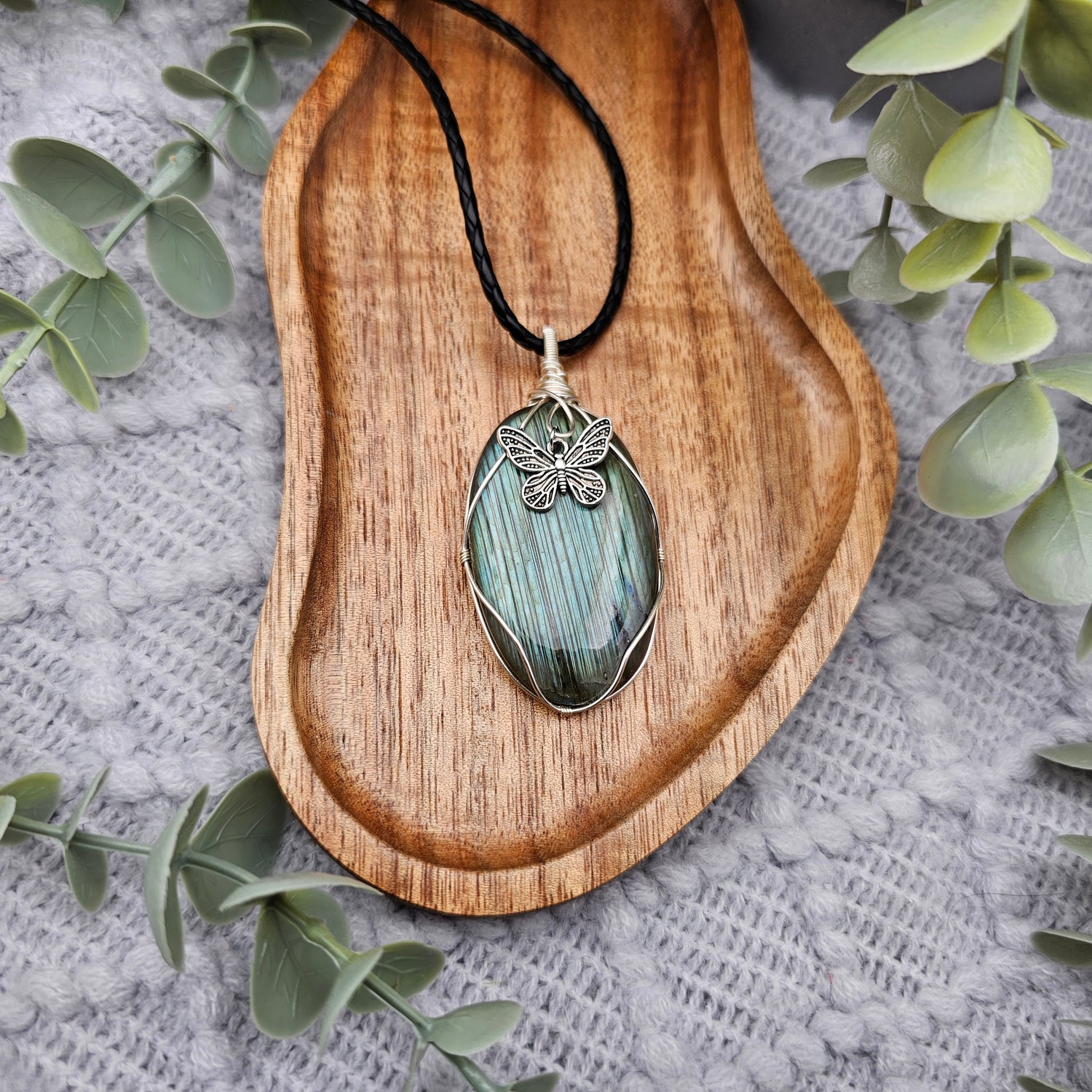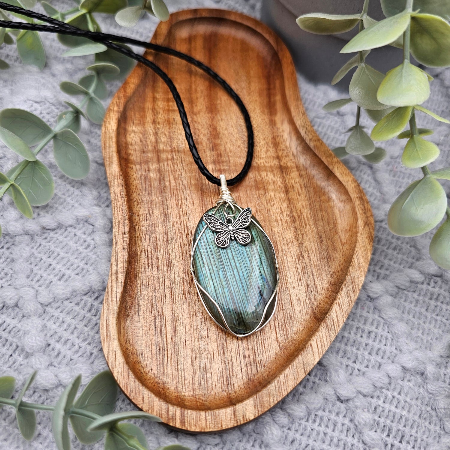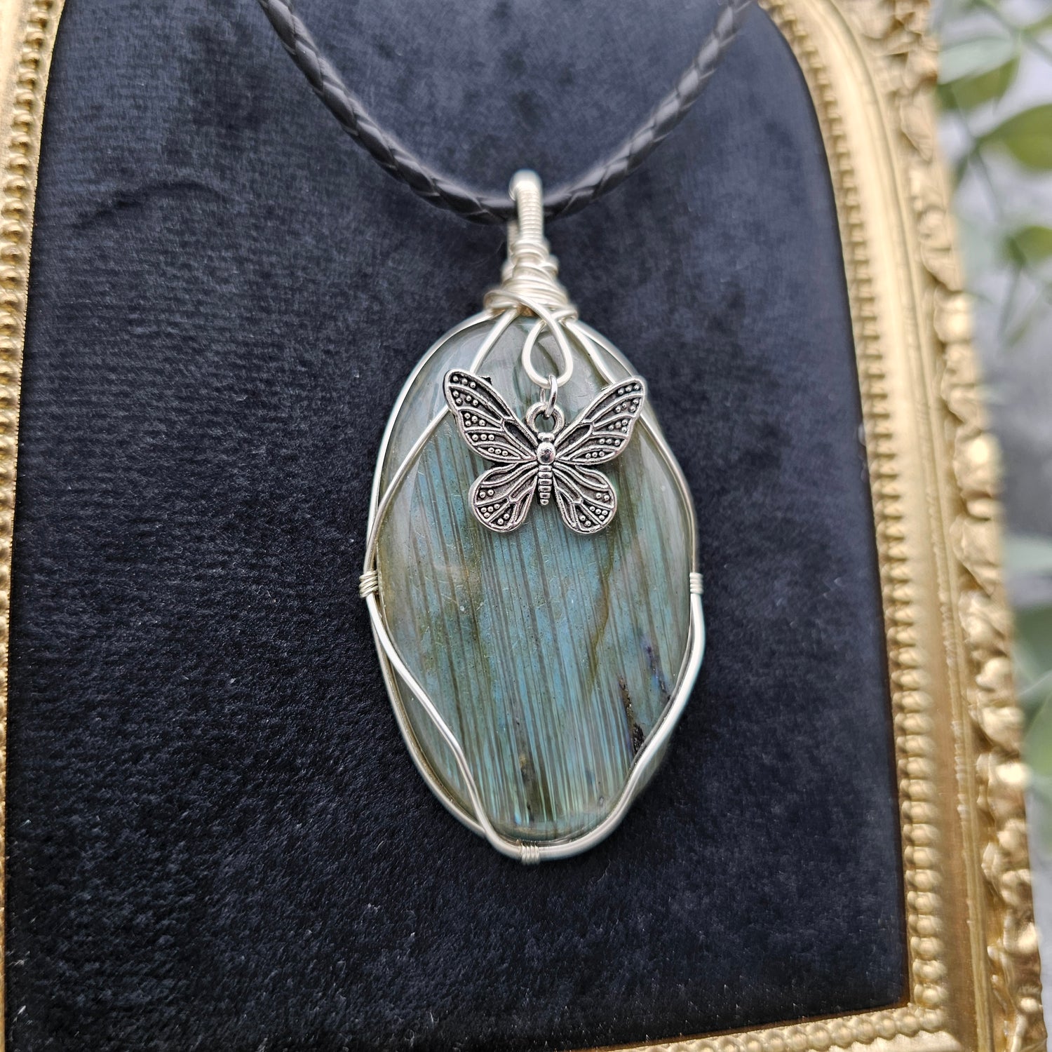 Labradorit & Schmetterling Anhänger | Schmuckdraht | Edelstein Halskette