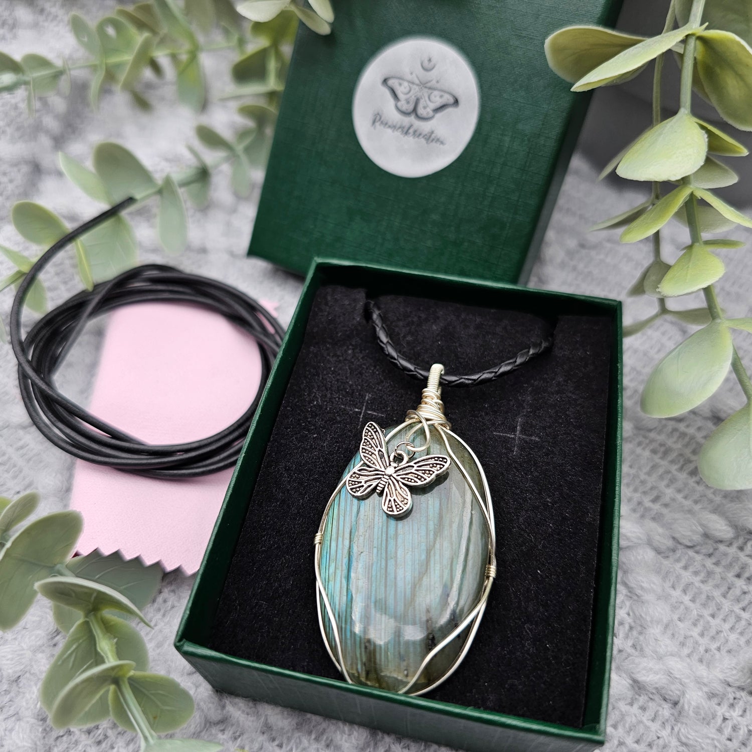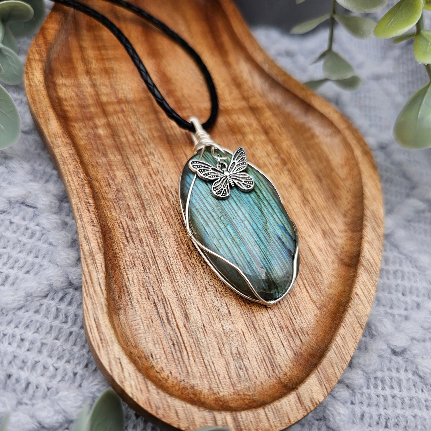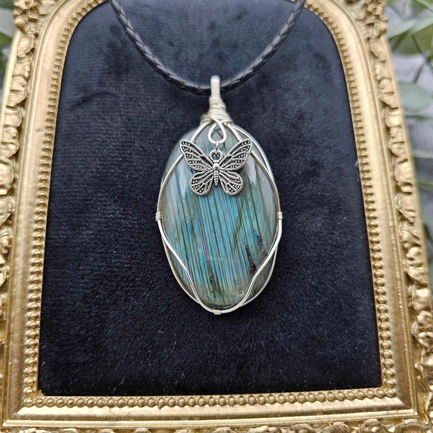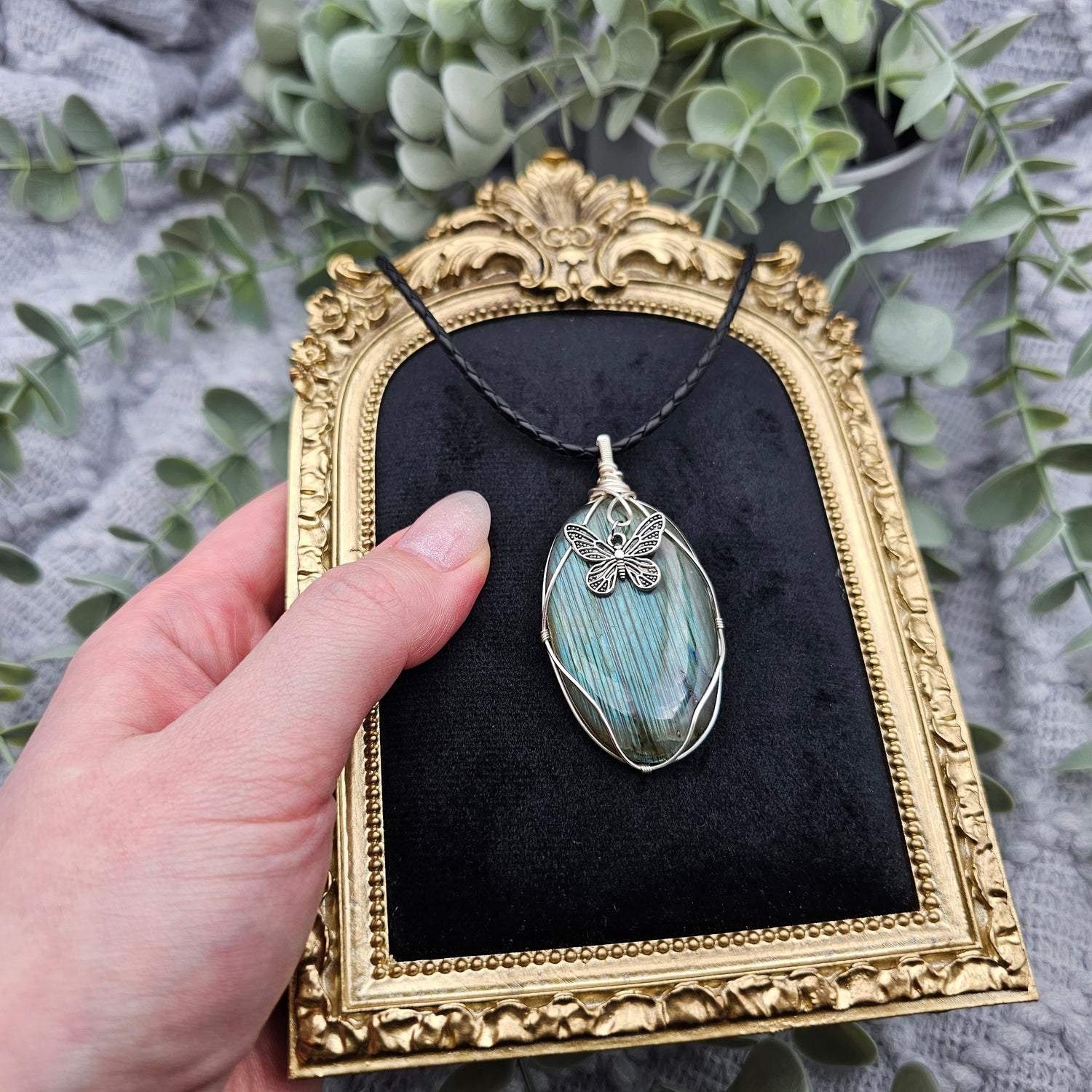 Labradorit & Schmetterling Anhänger | Schmuckdraht | Edelstein Halskette