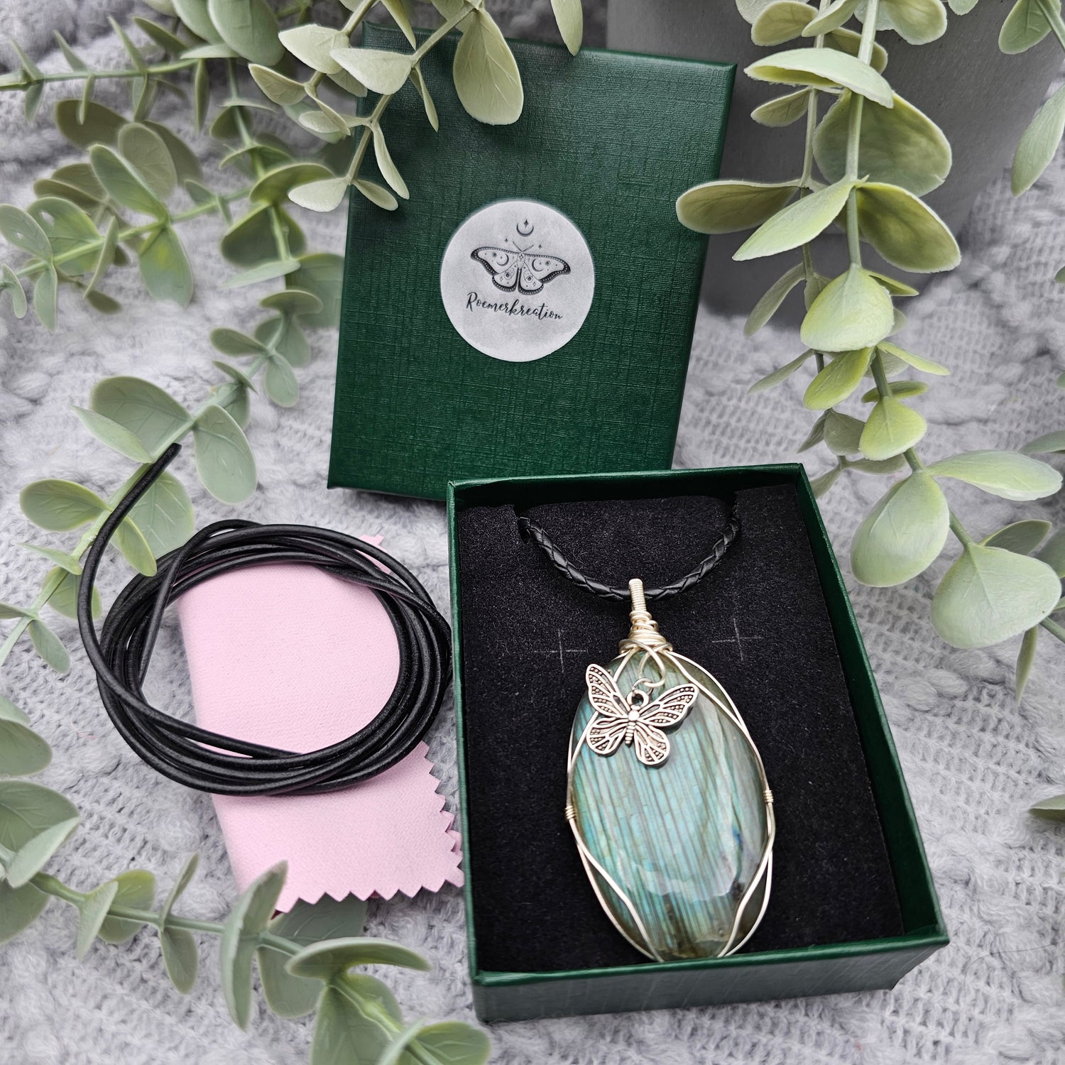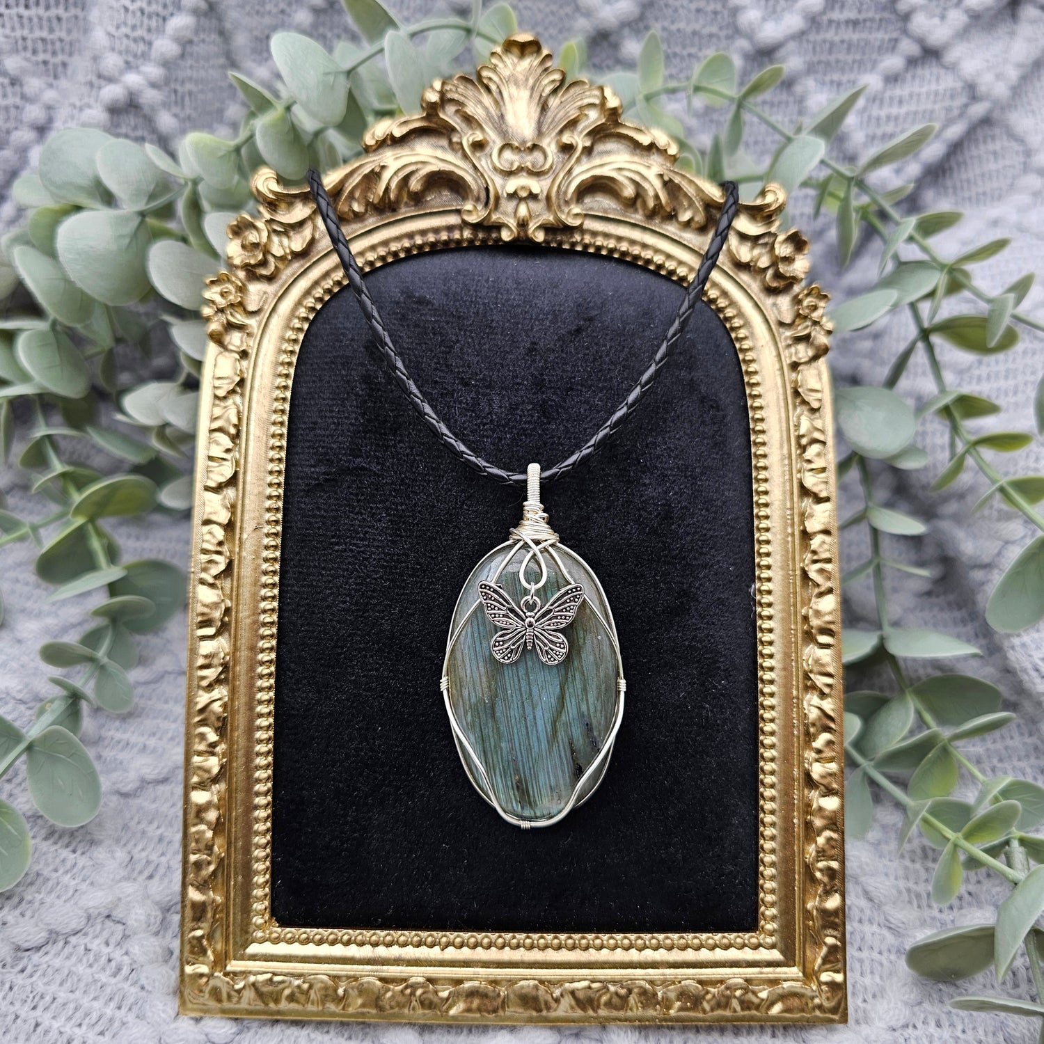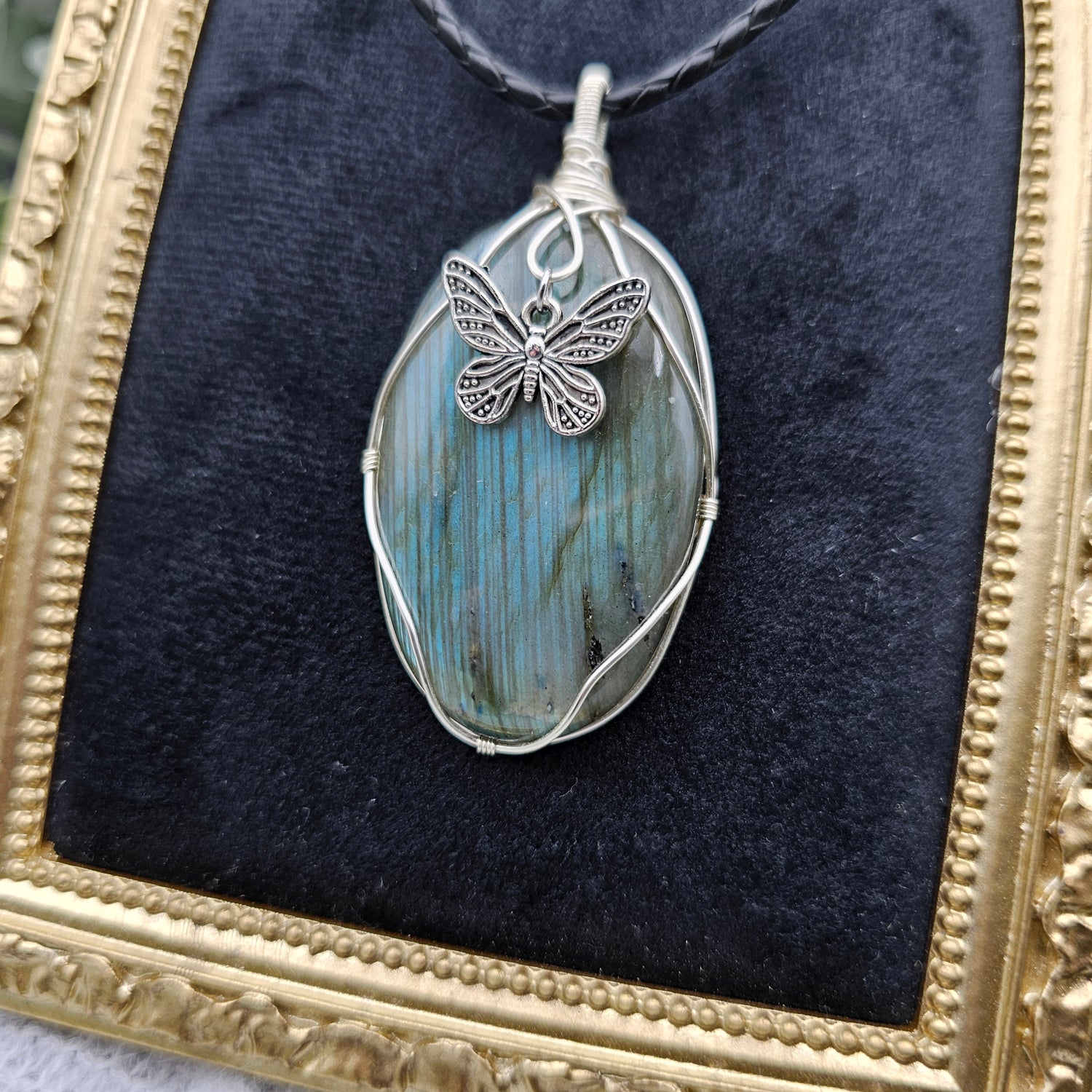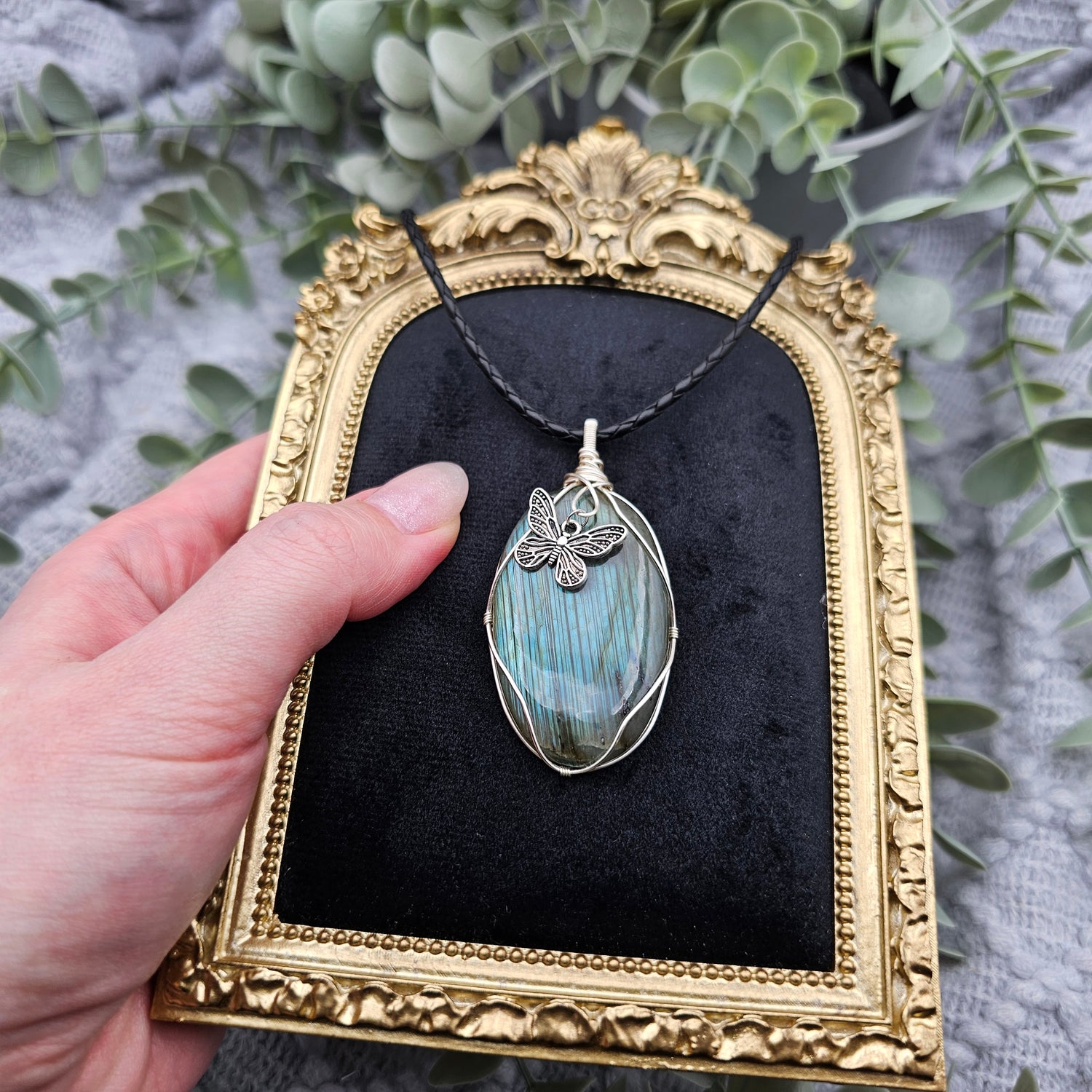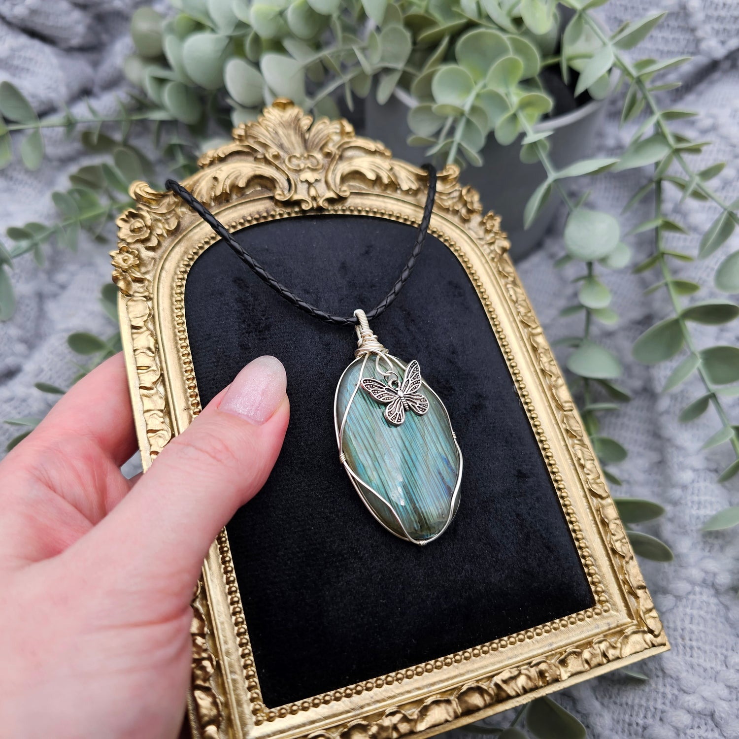 Labradorit & Schmetterling Anhänger | Schmuckdraht | Edelstein Halskette