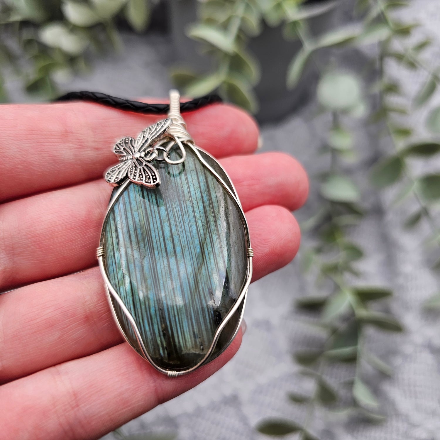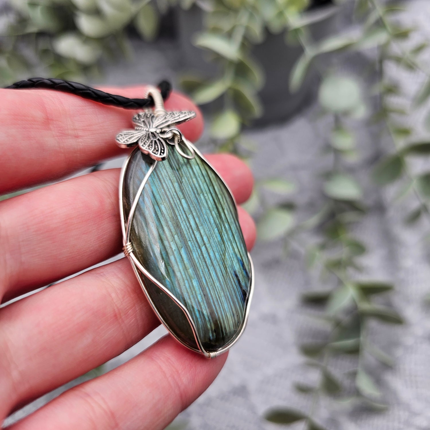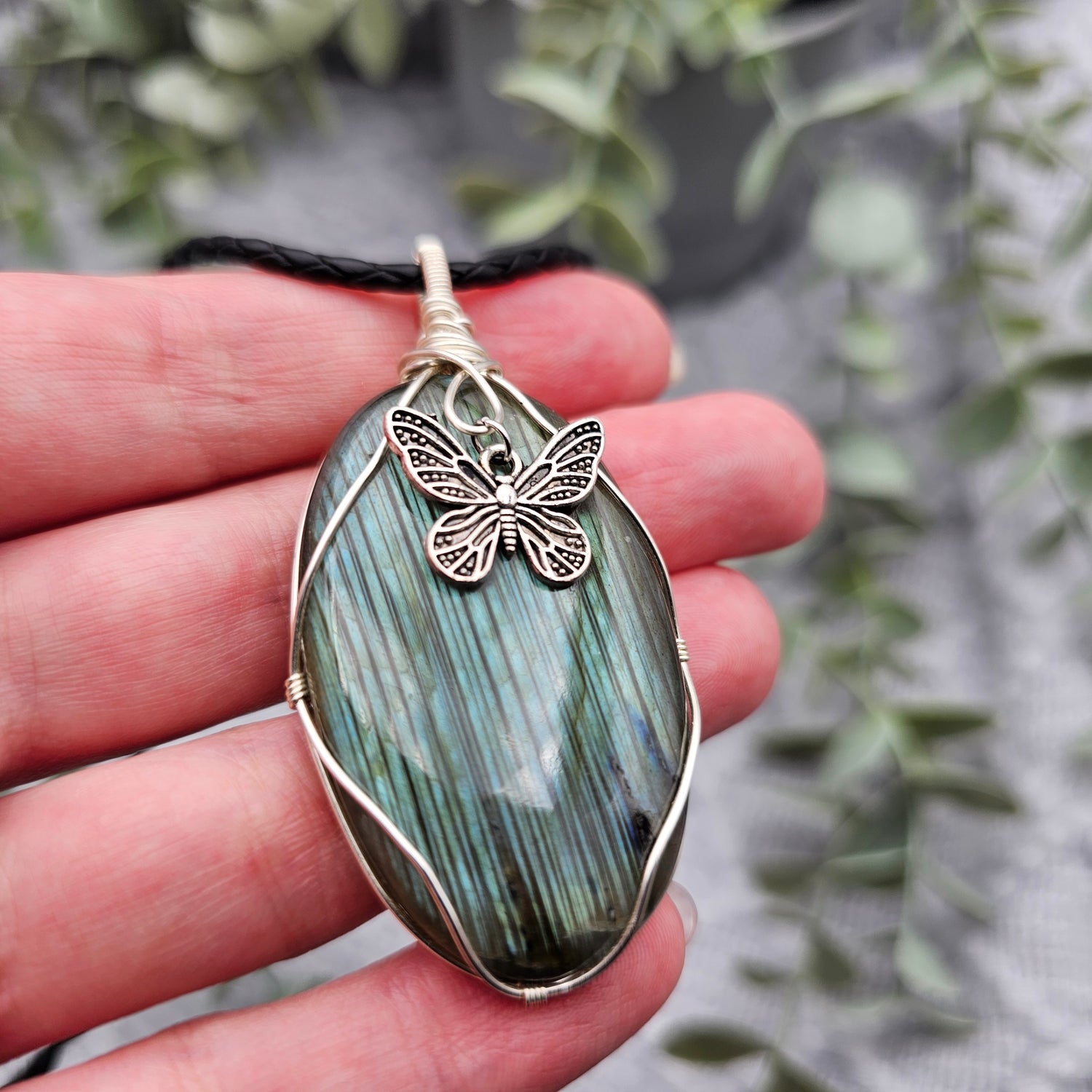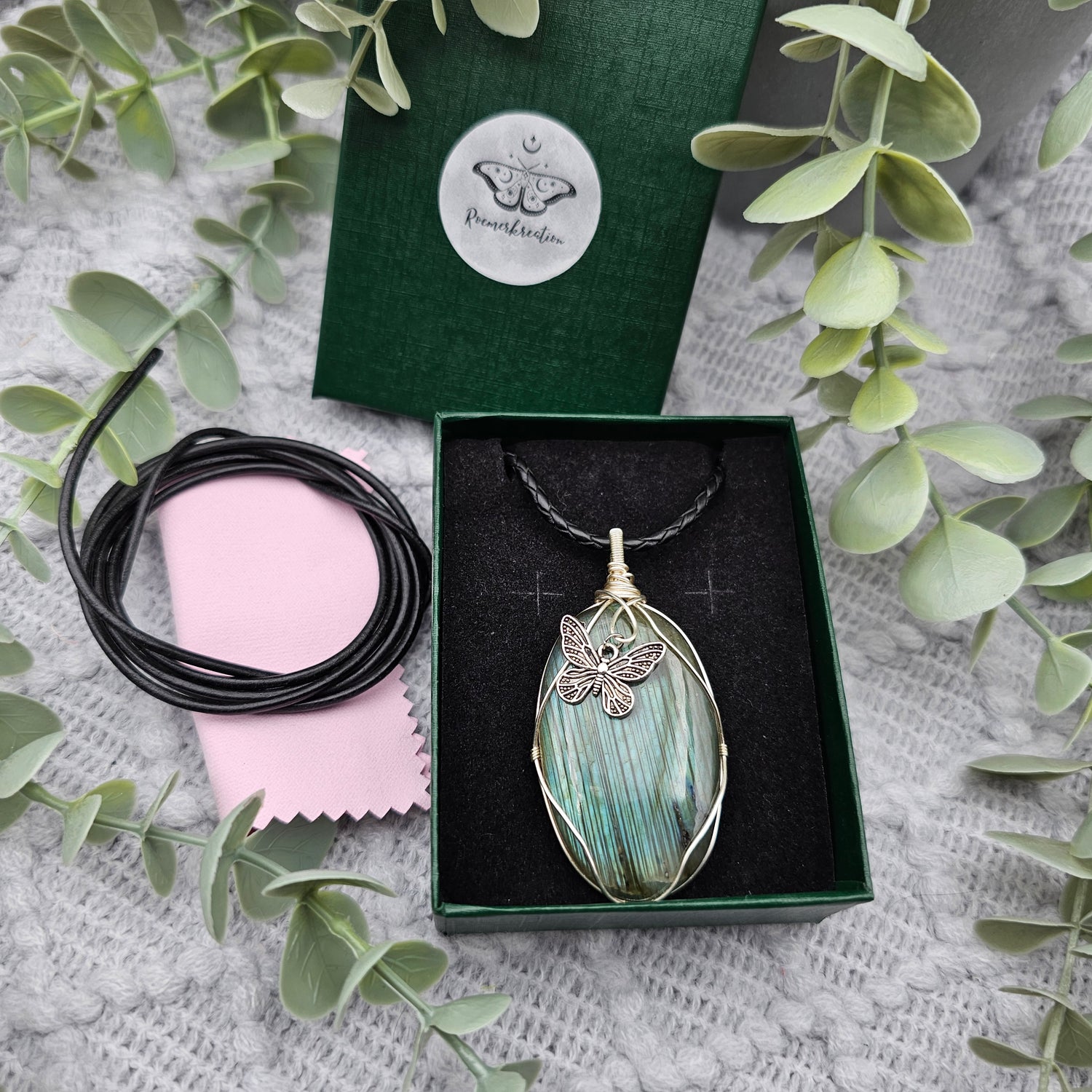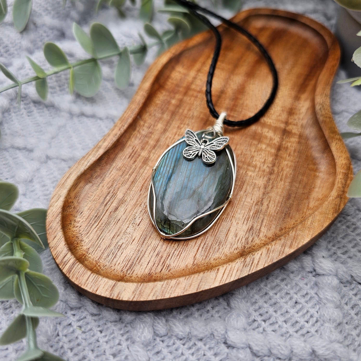 Labradorit & Schmetterling Anhänger | Schmuckdraht | Edelstein Halskette