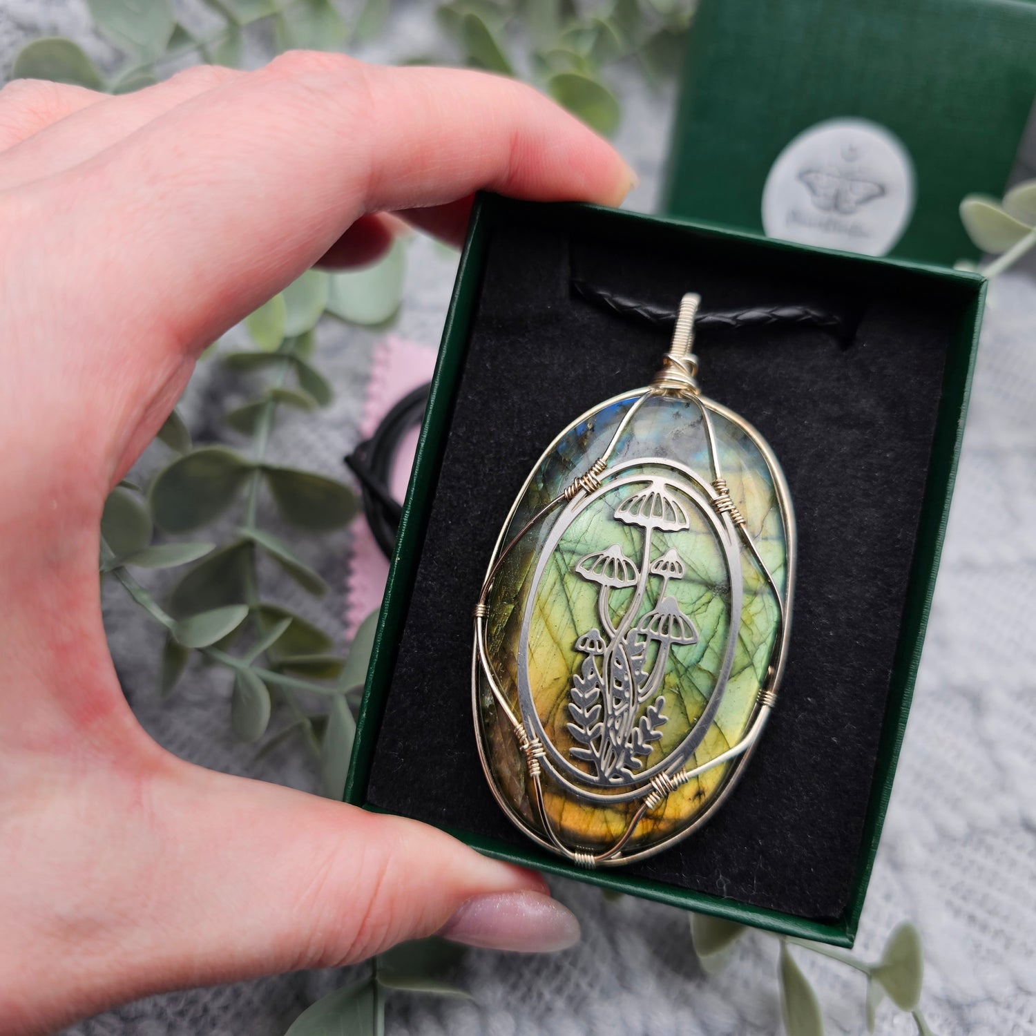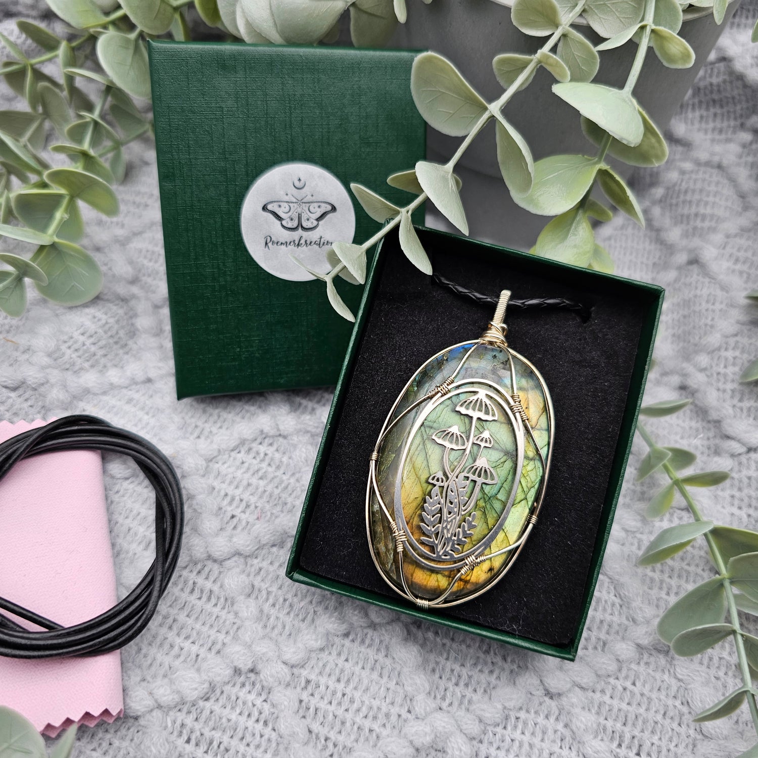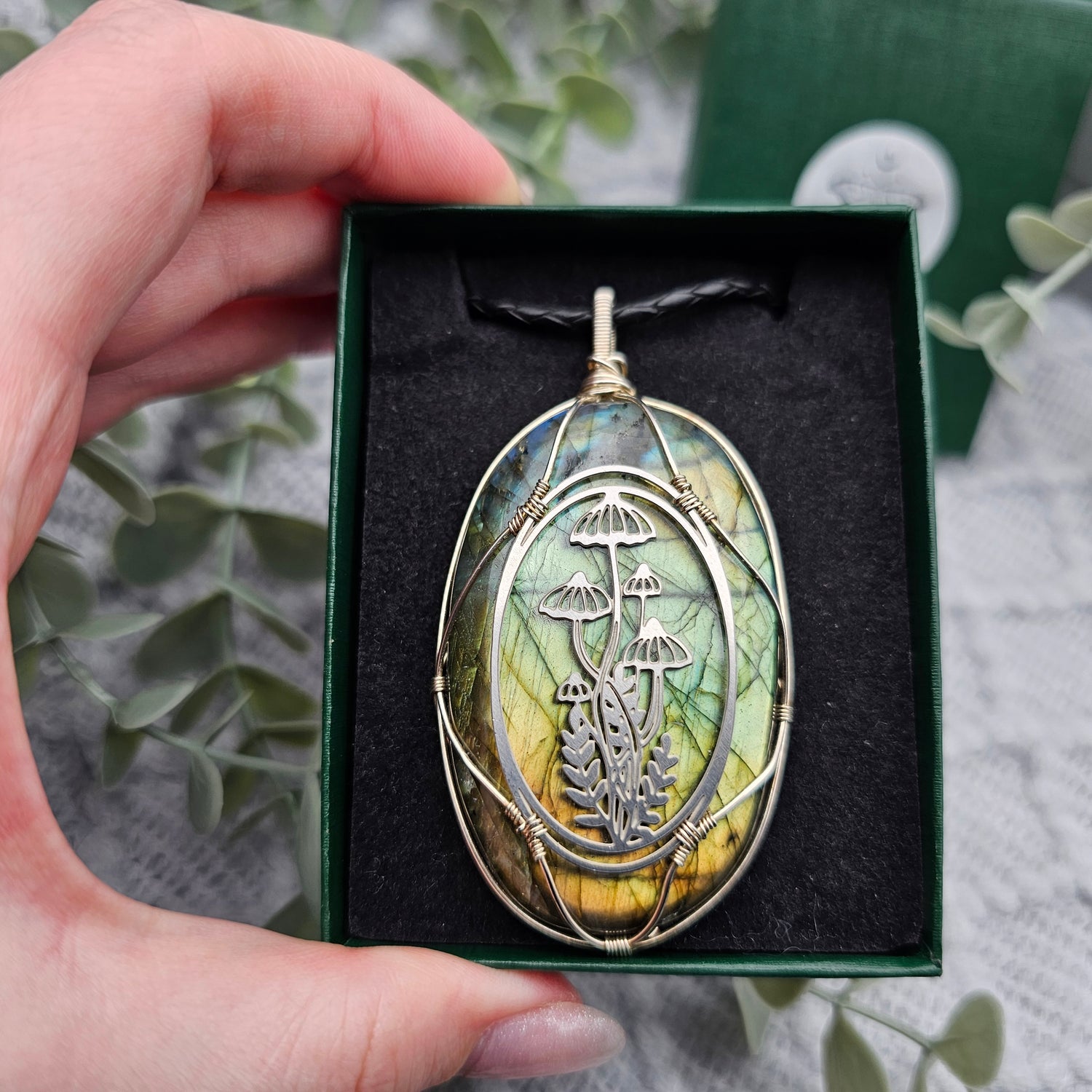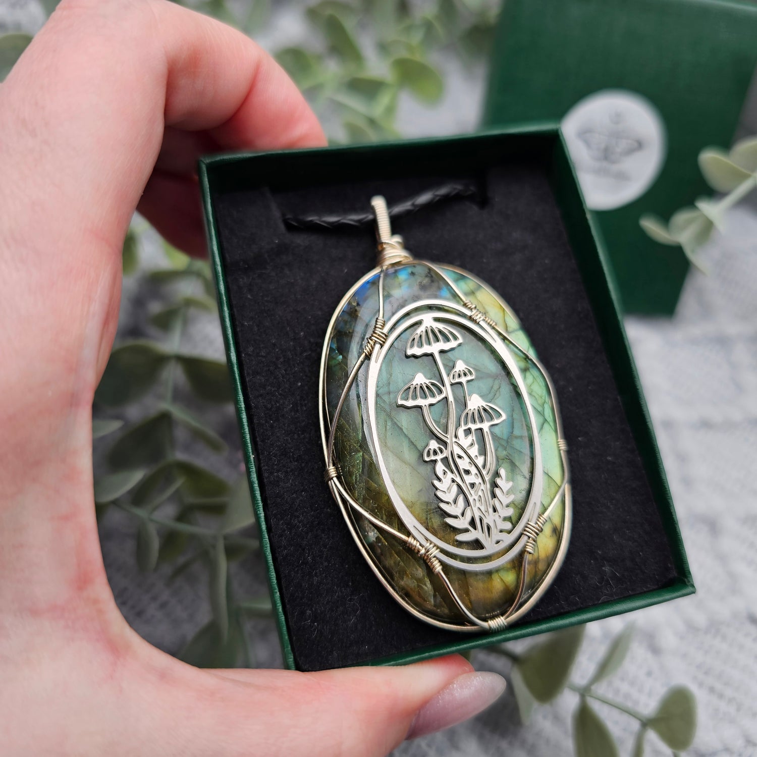 Labradorit & Wald Anhänger | 925er Silber / Edelstahl | Edelstein Halskette