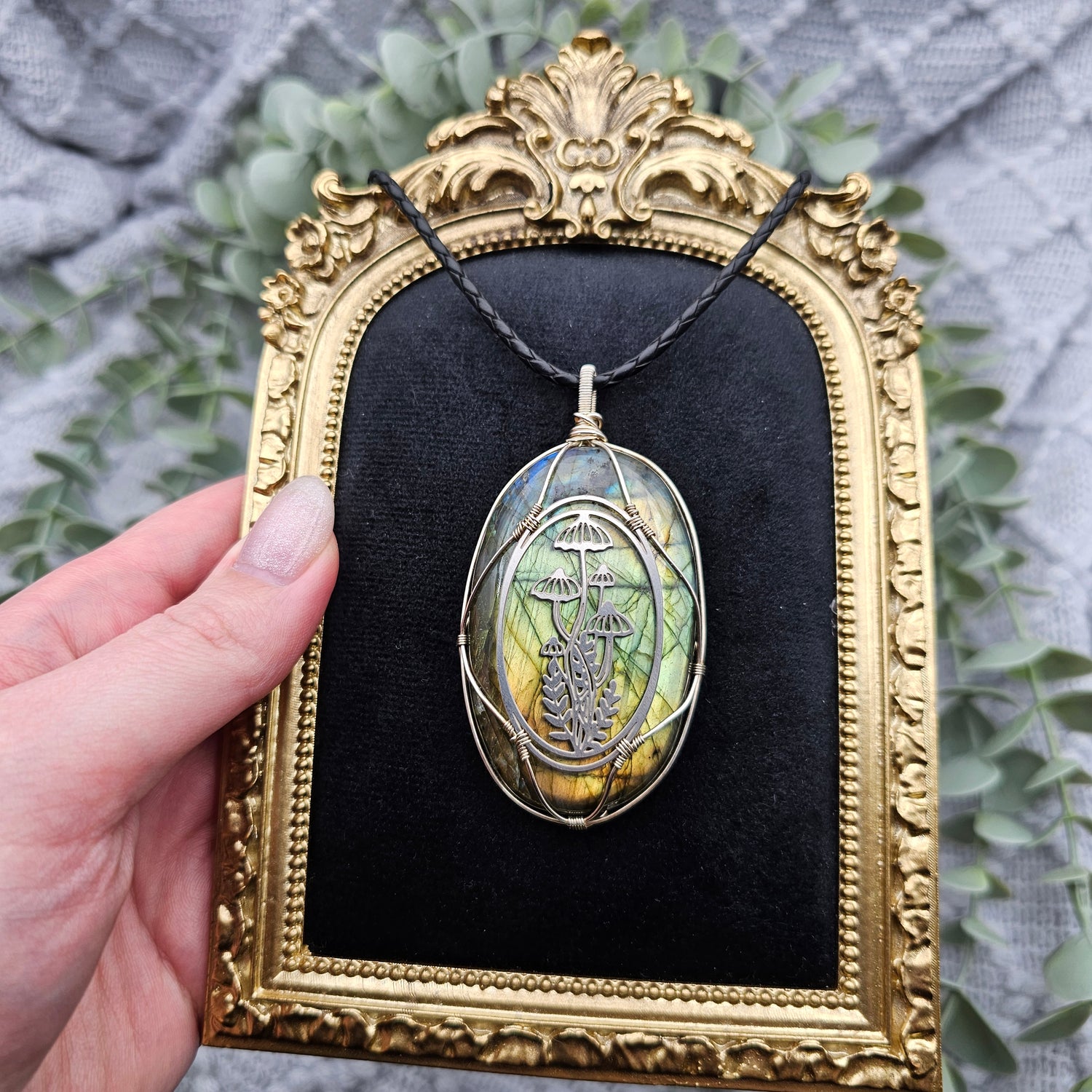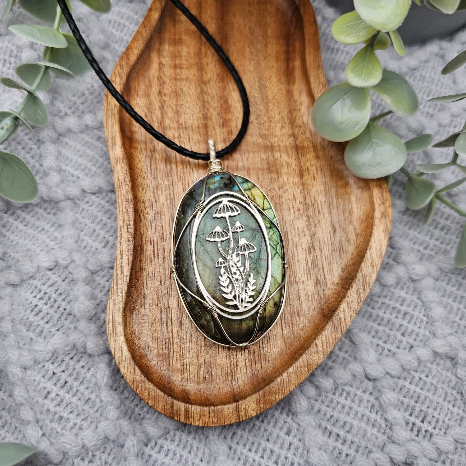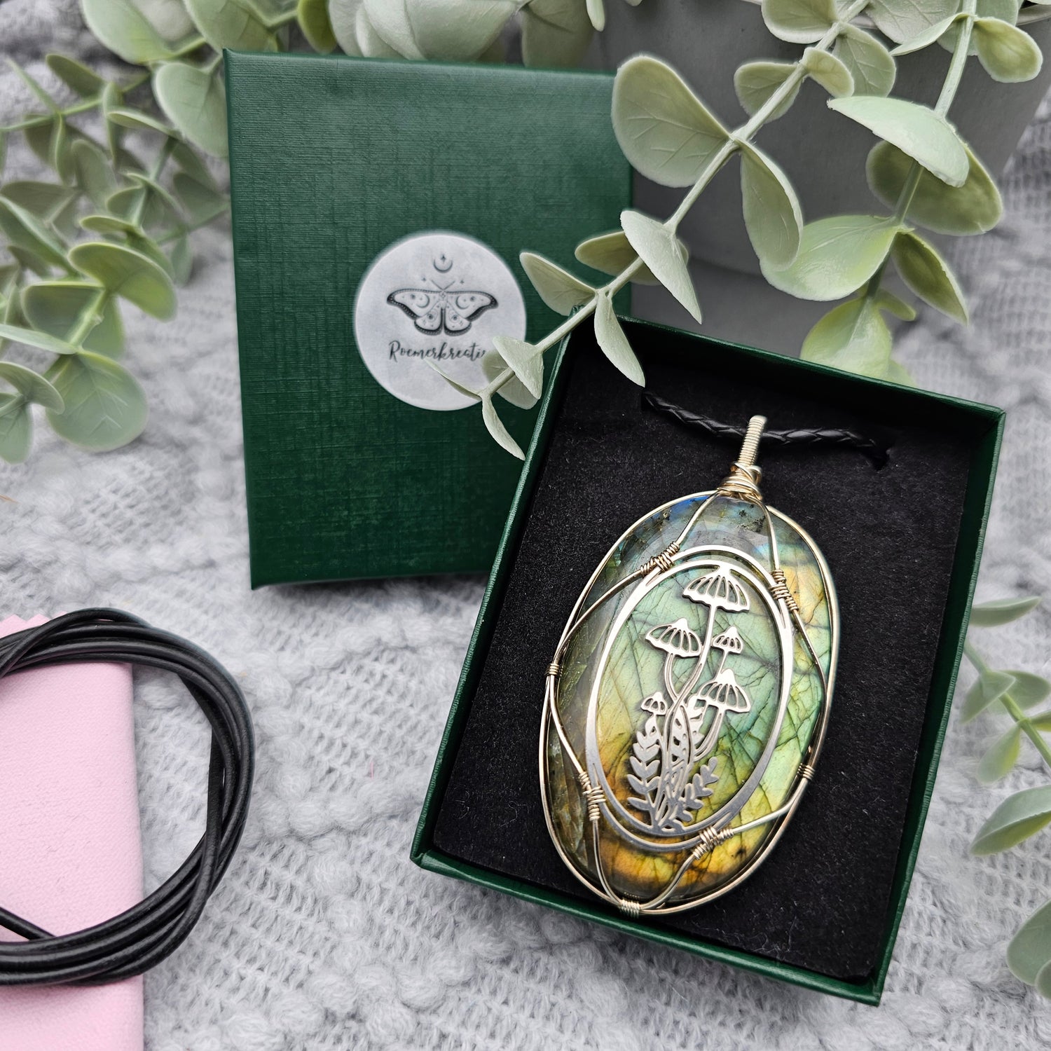 Labradorit & Wald Anhänger | 925er Silber / Edelstahl | Edelstein Halskette