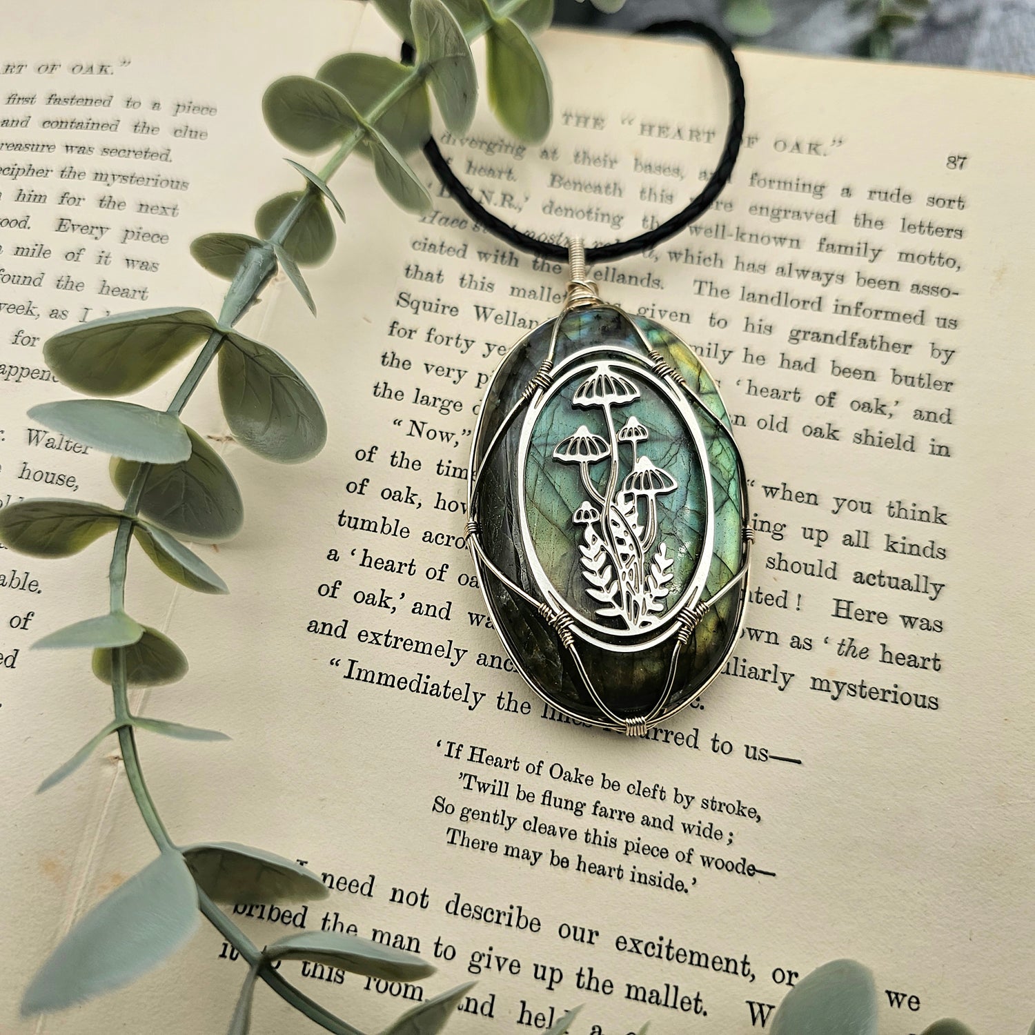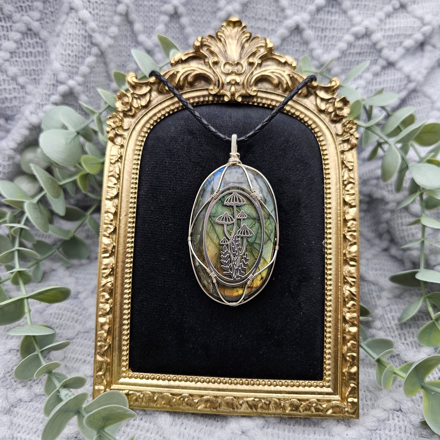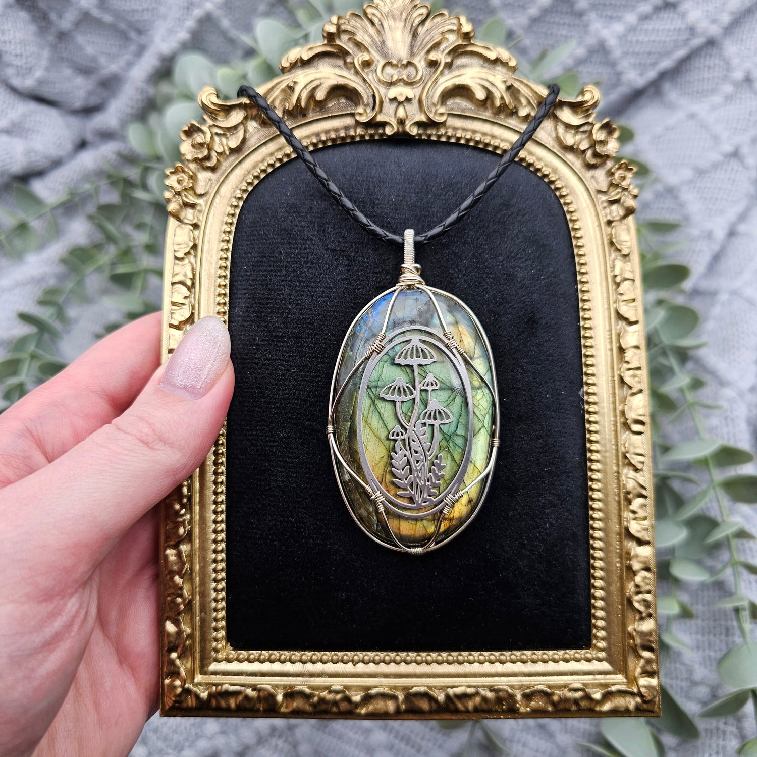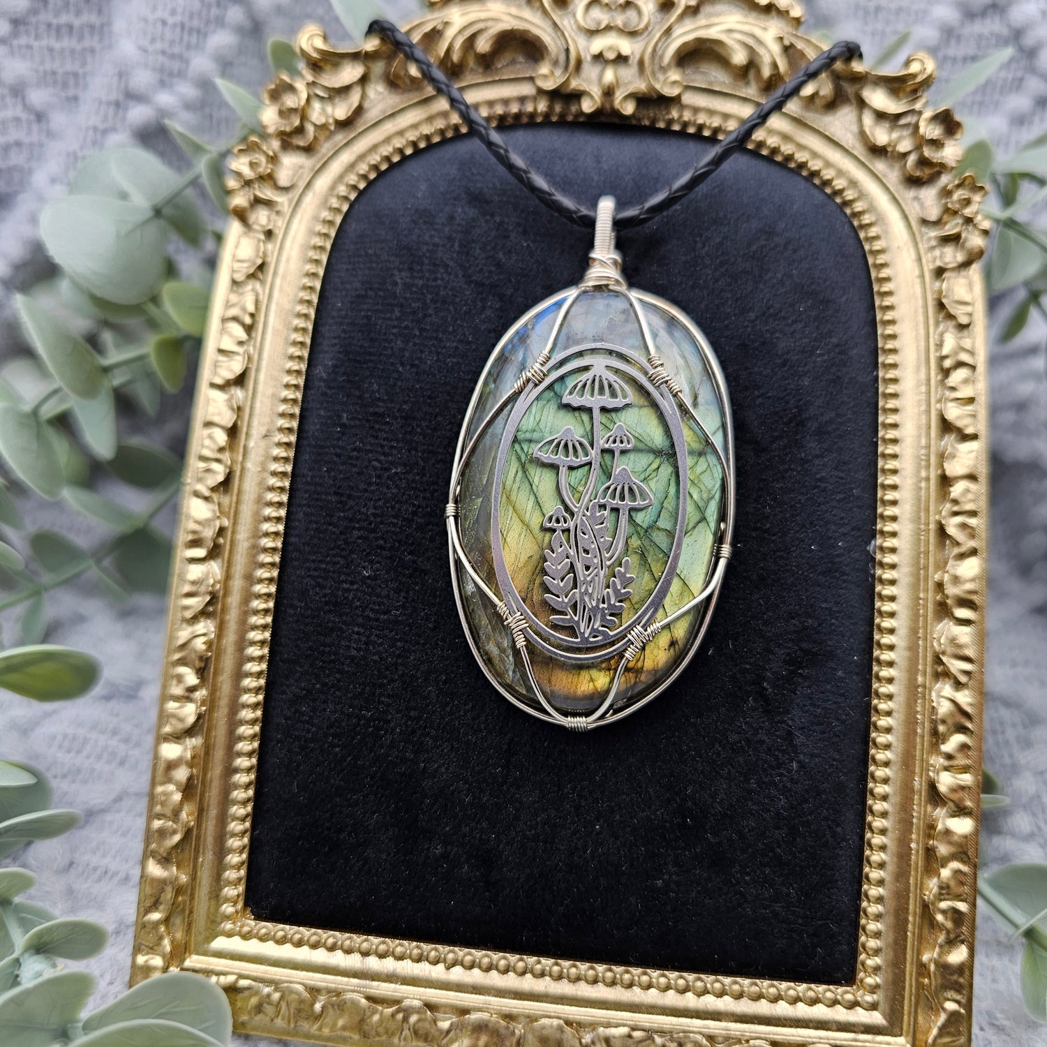 Labradorit & Wald Anhänger | 925er Silber / Edelstahl | Edelstein Halskette