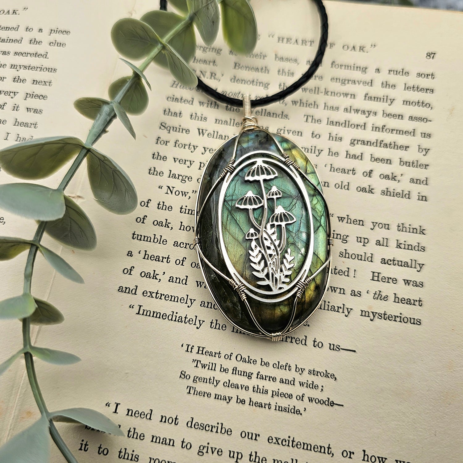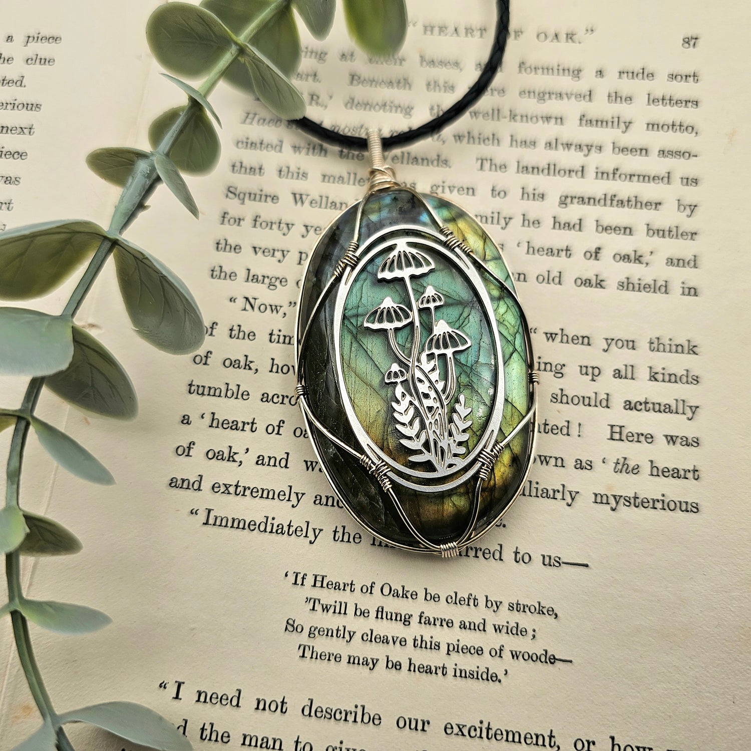 Labradorit mit Waldemblem aus Edelstahl