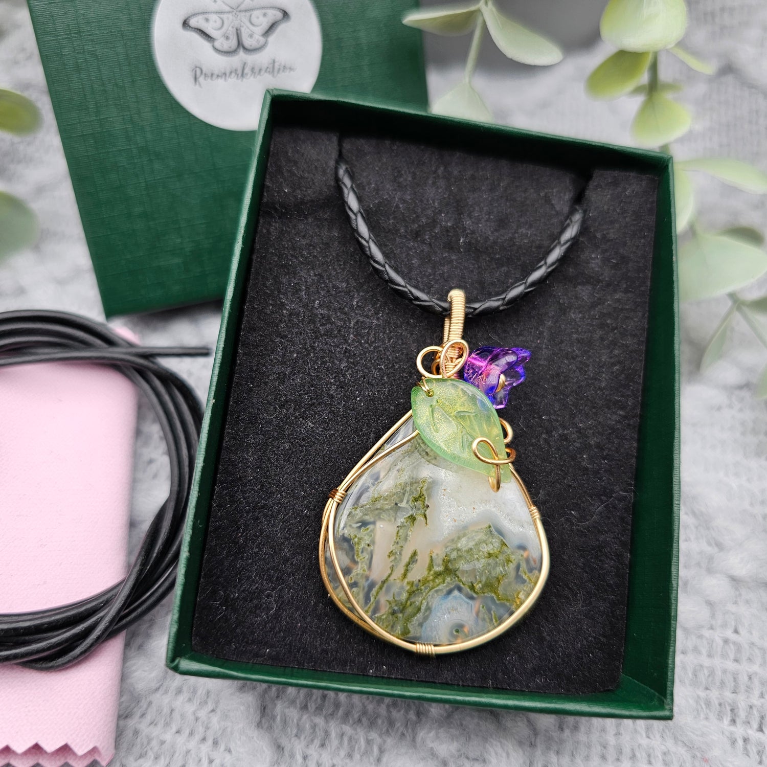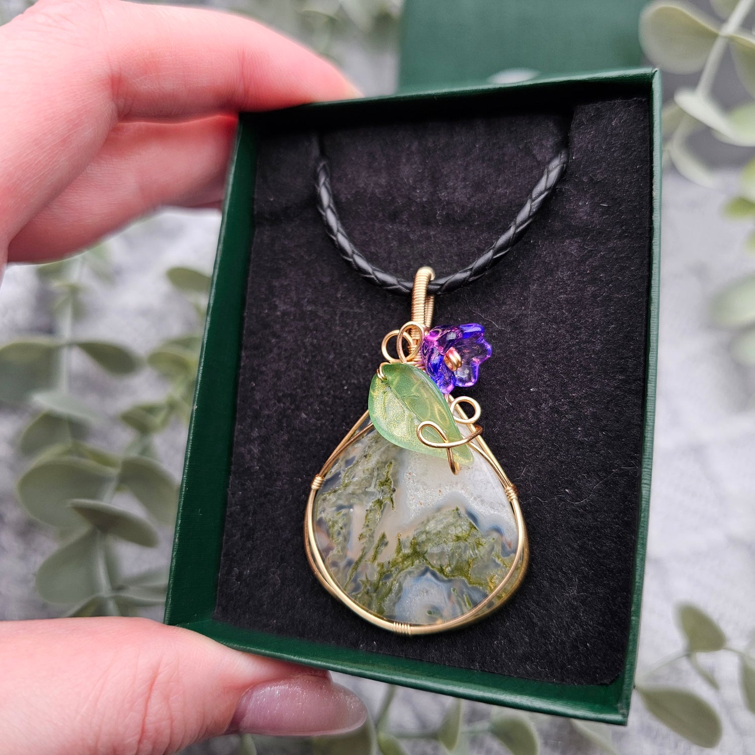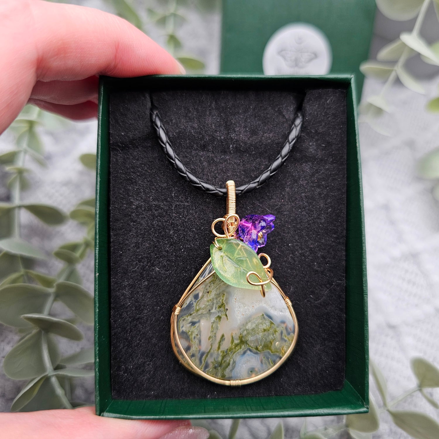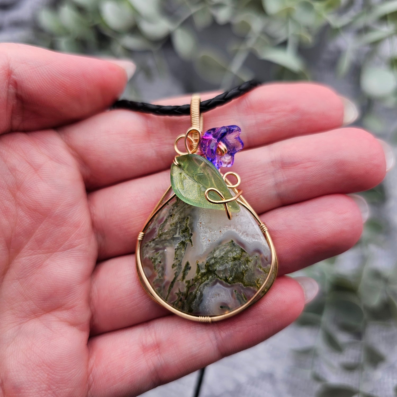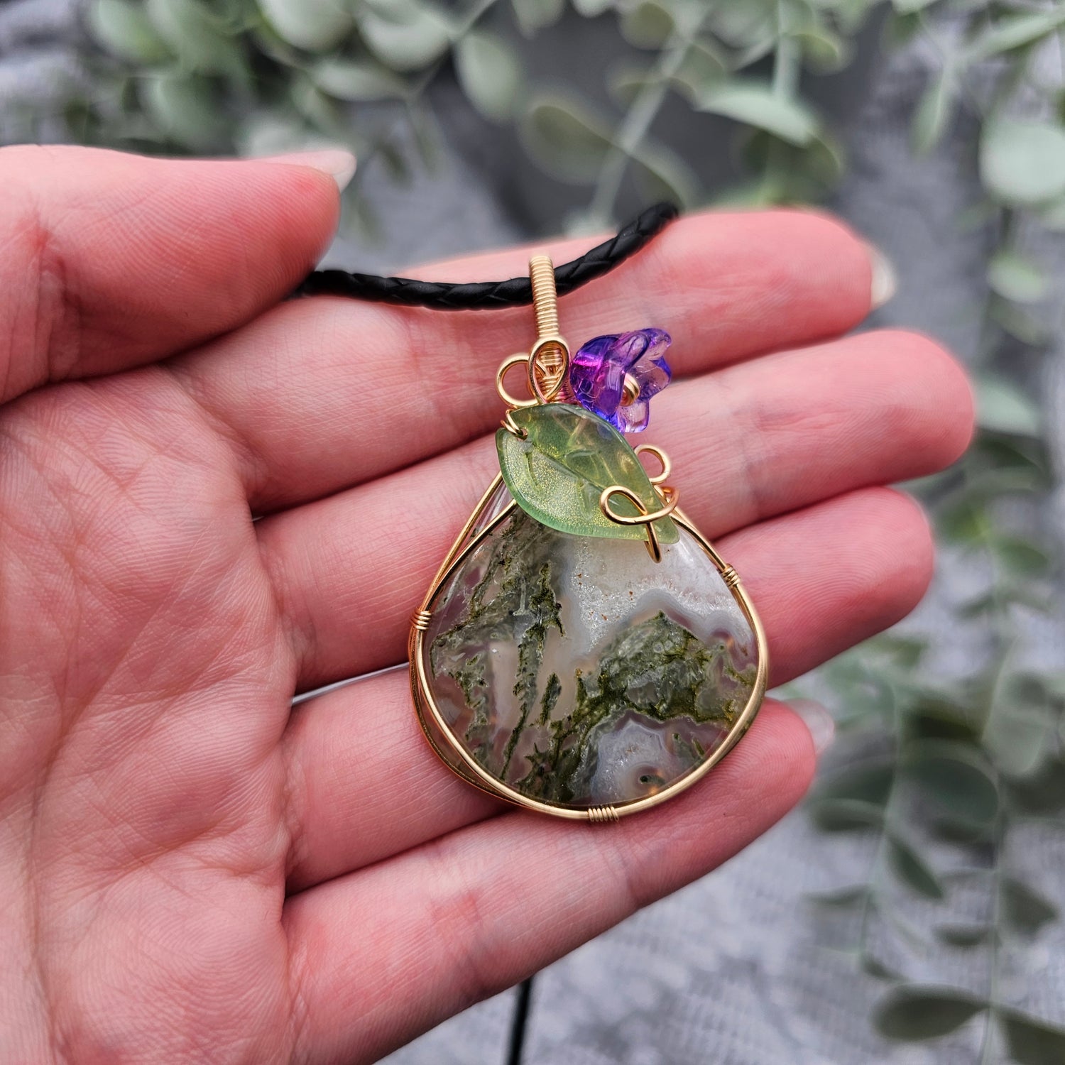 Moosachat & Blüte Anhänger | Schmuckdraht | Edelstein Halskette