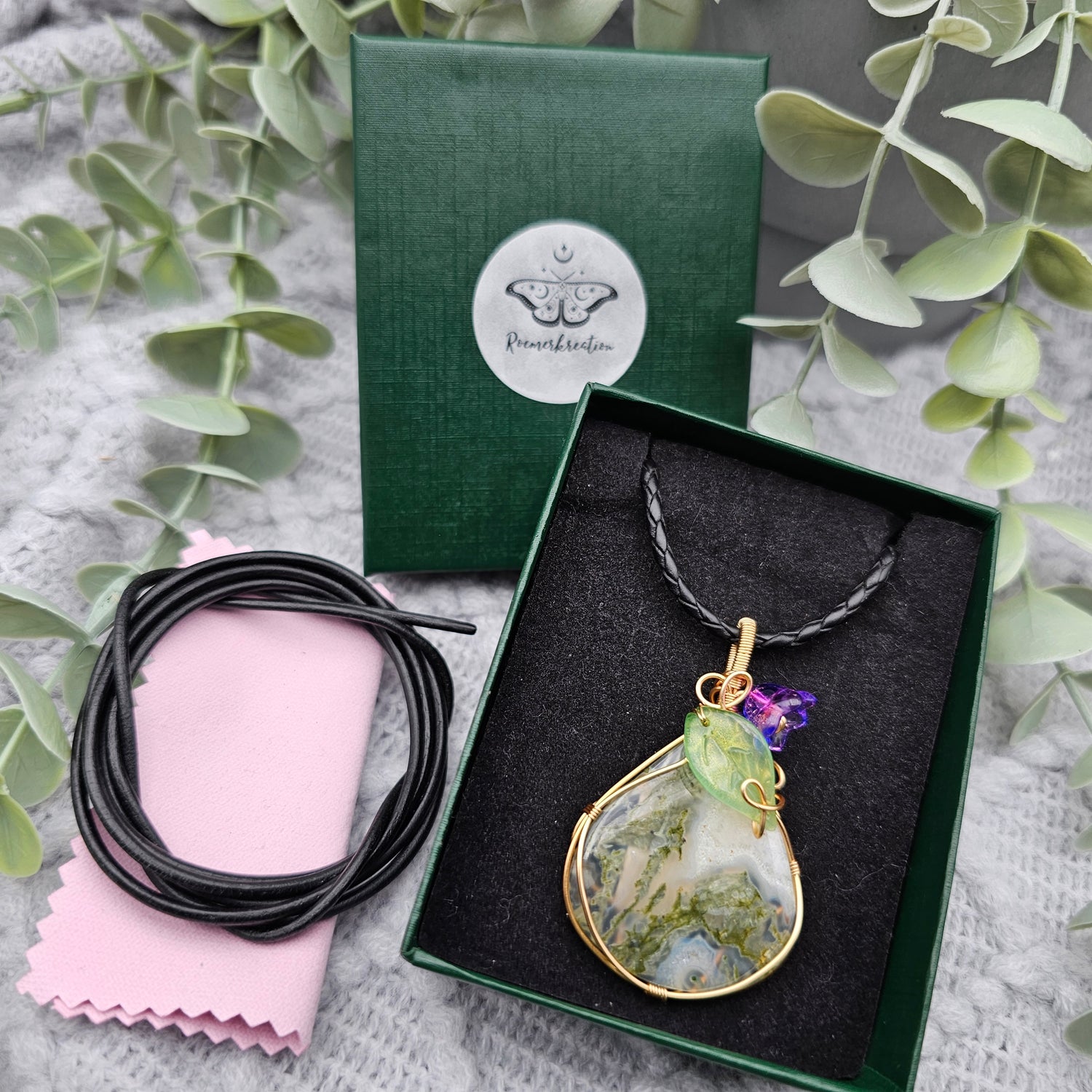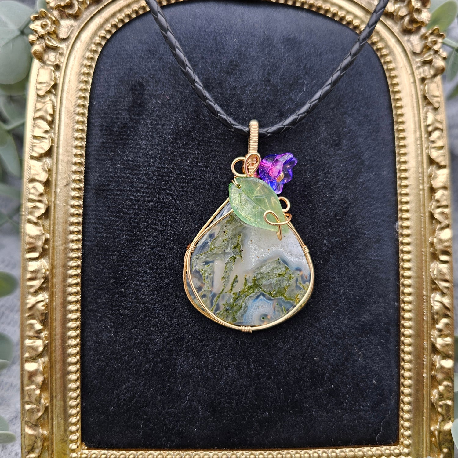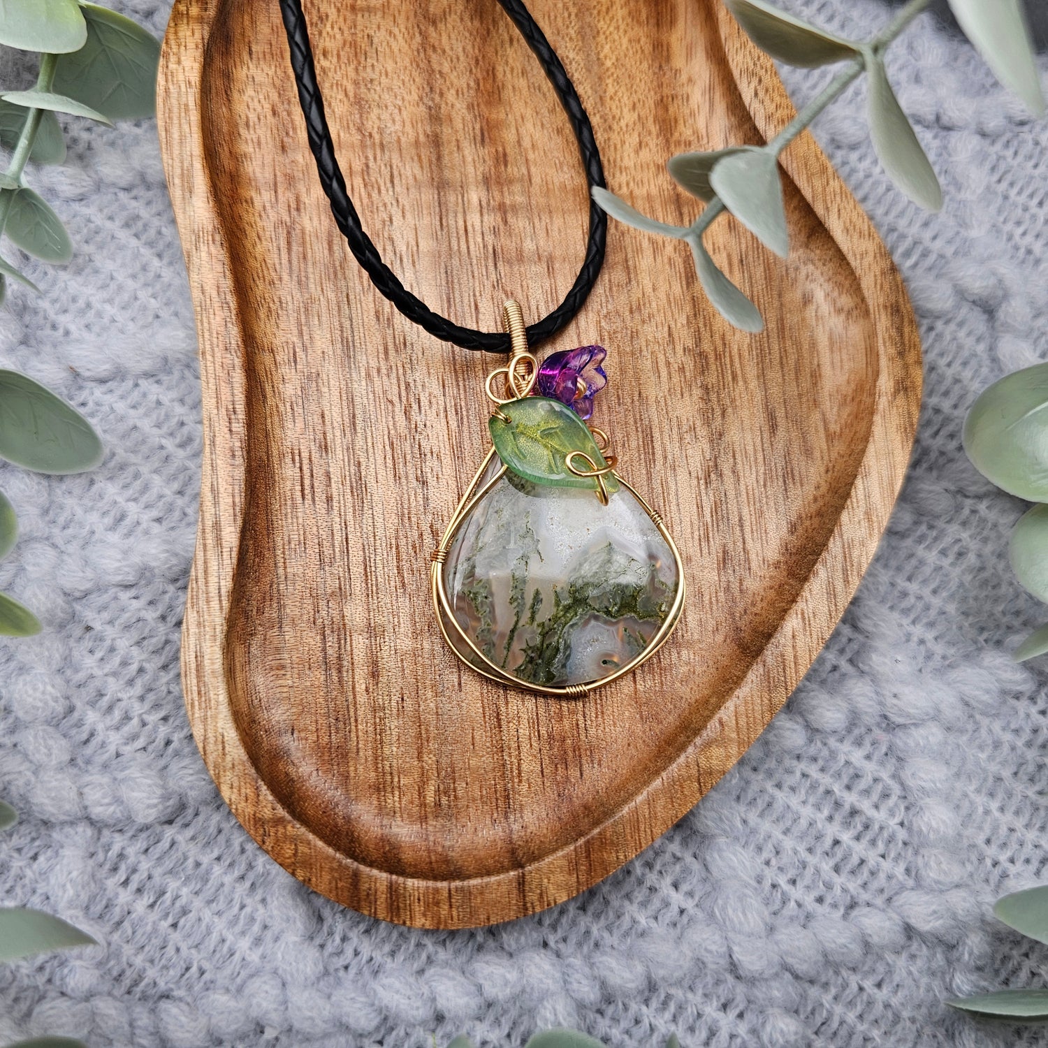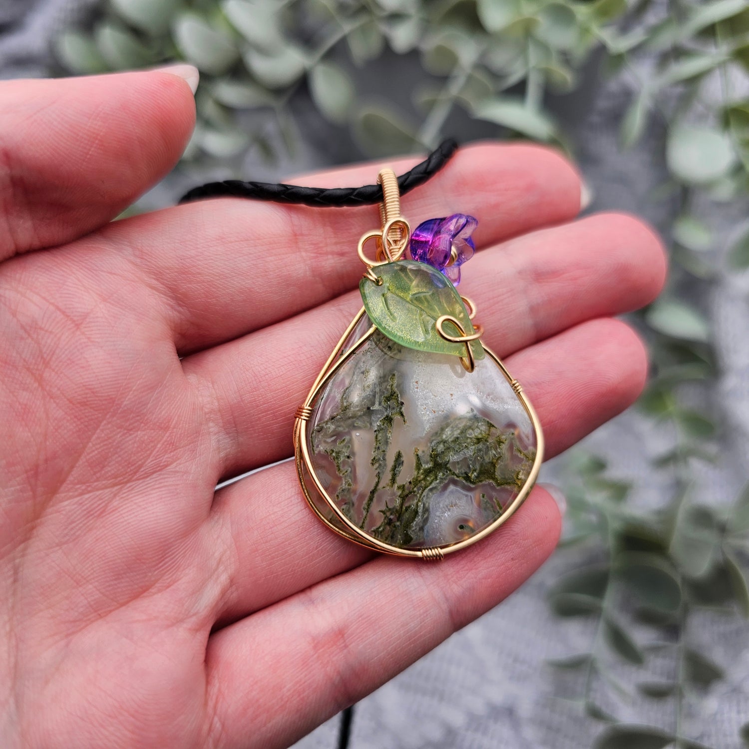 Moosachat & Blüte Anhänger | Schmuckdraht | Edelstein Halskette