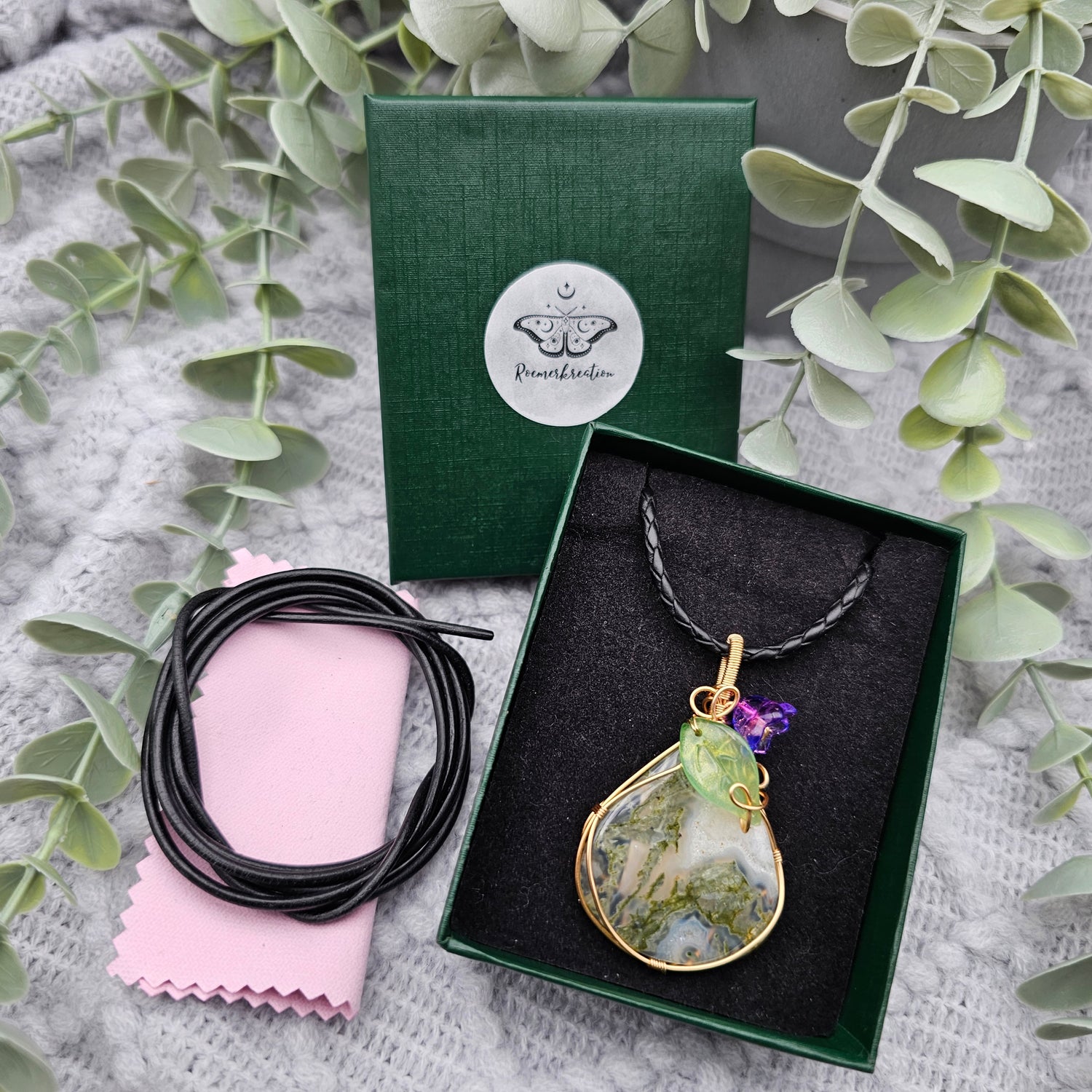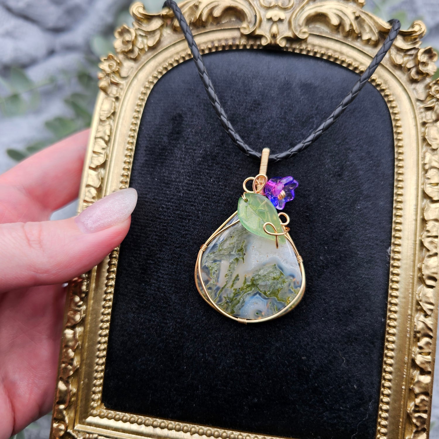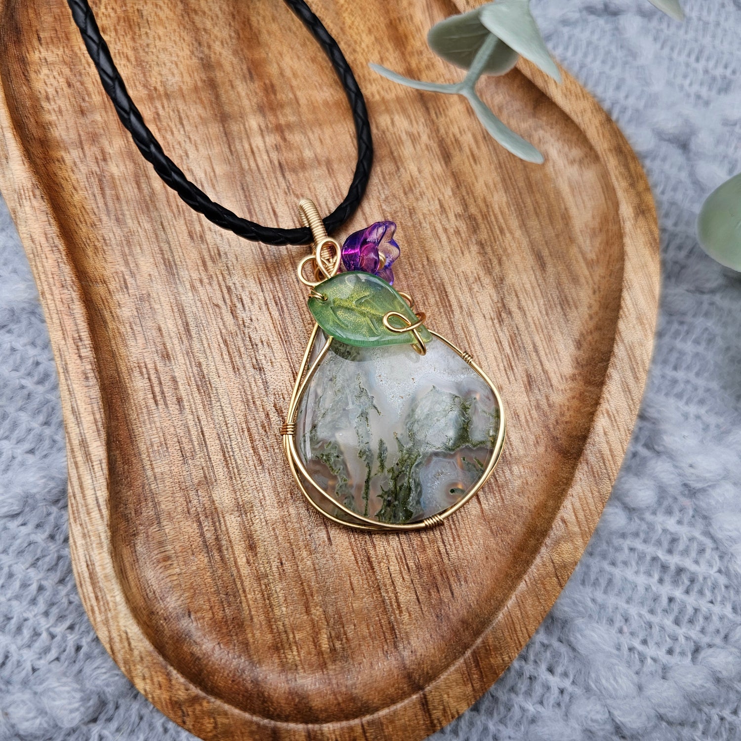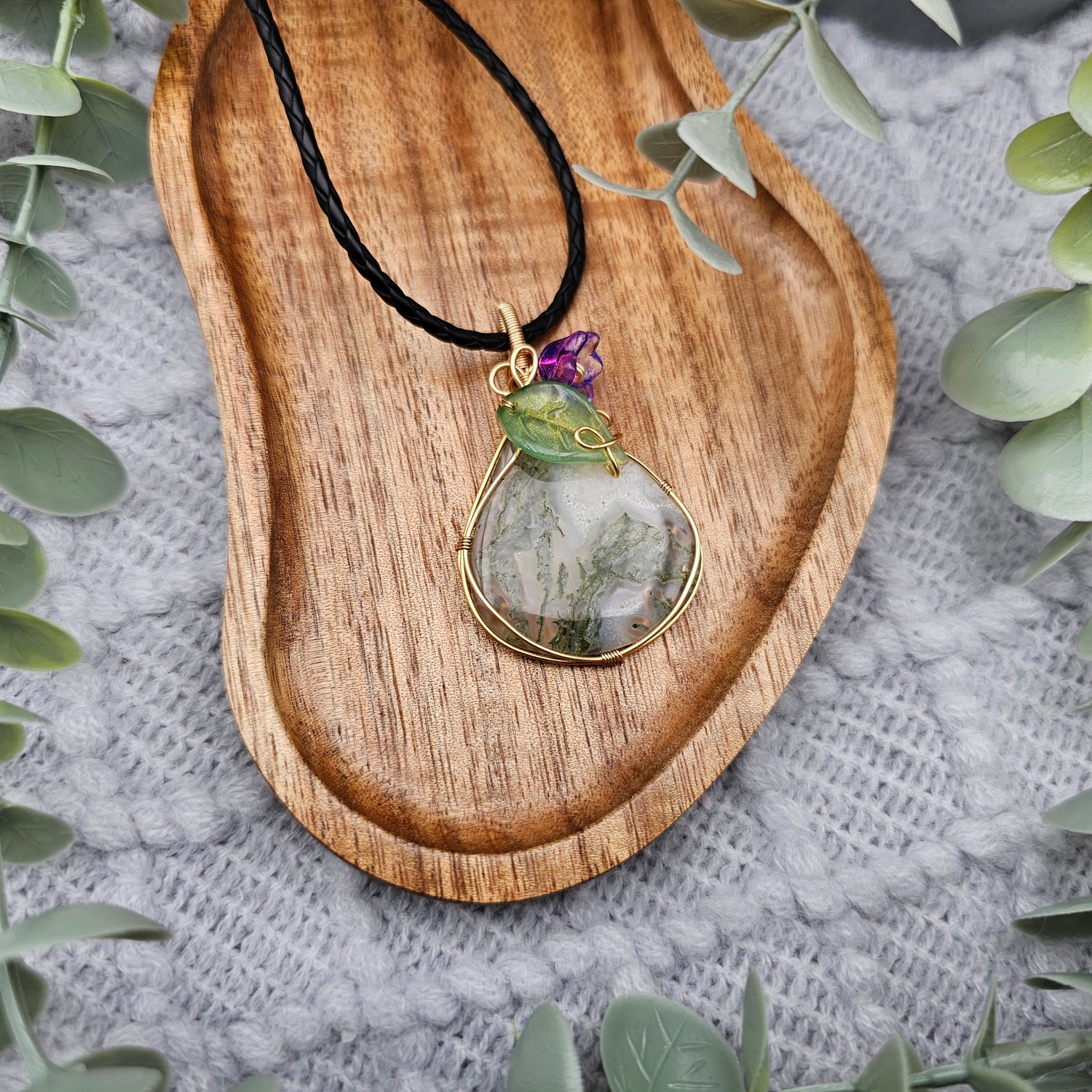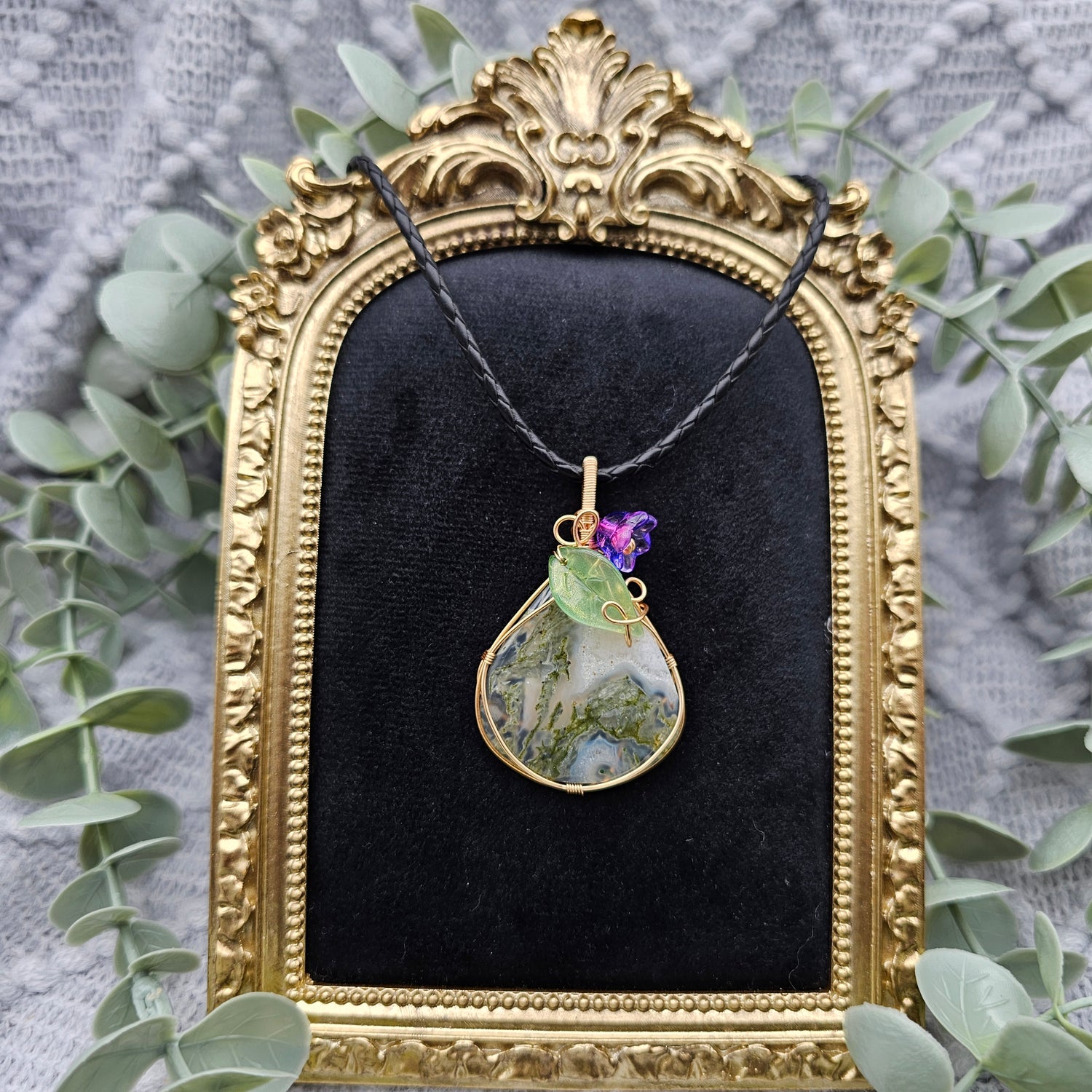 Moosachat & Blüte Anhänger | Schmuckdraht | Edelstein Halskette