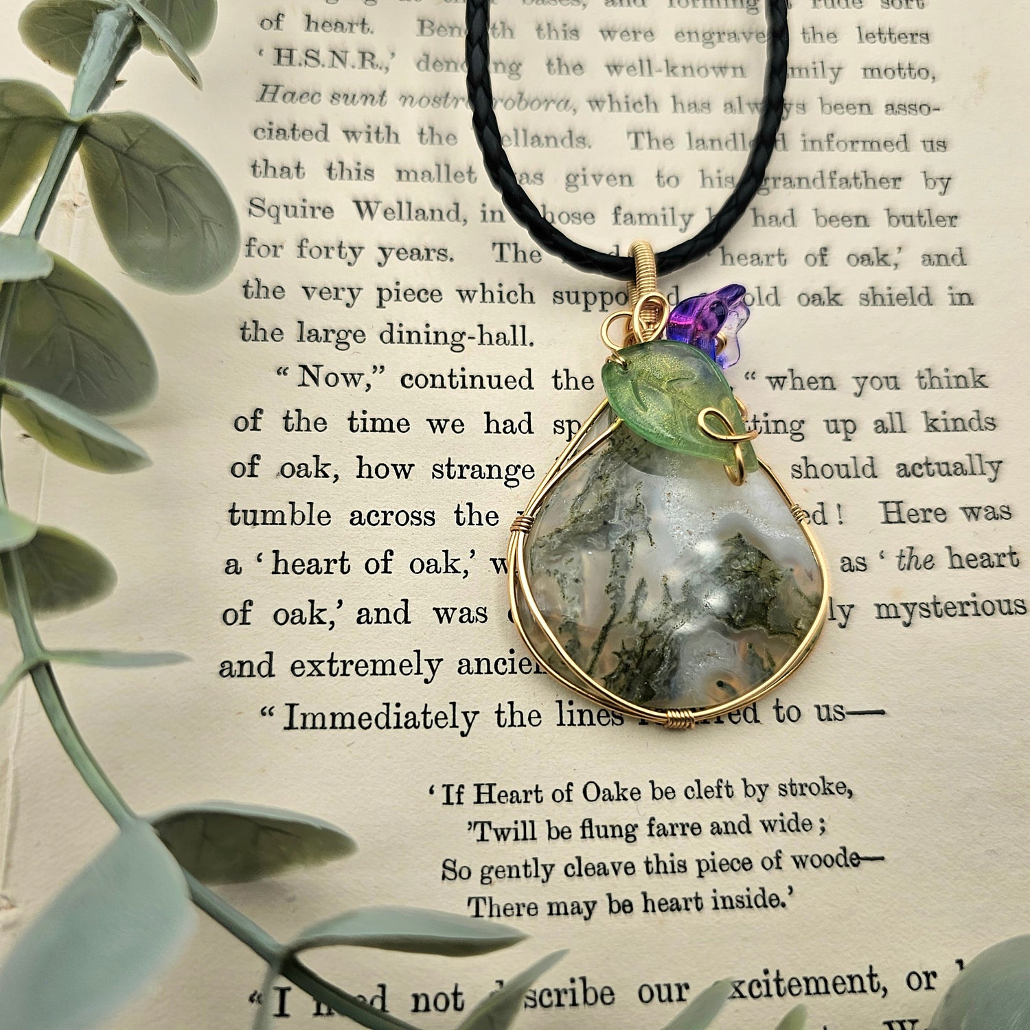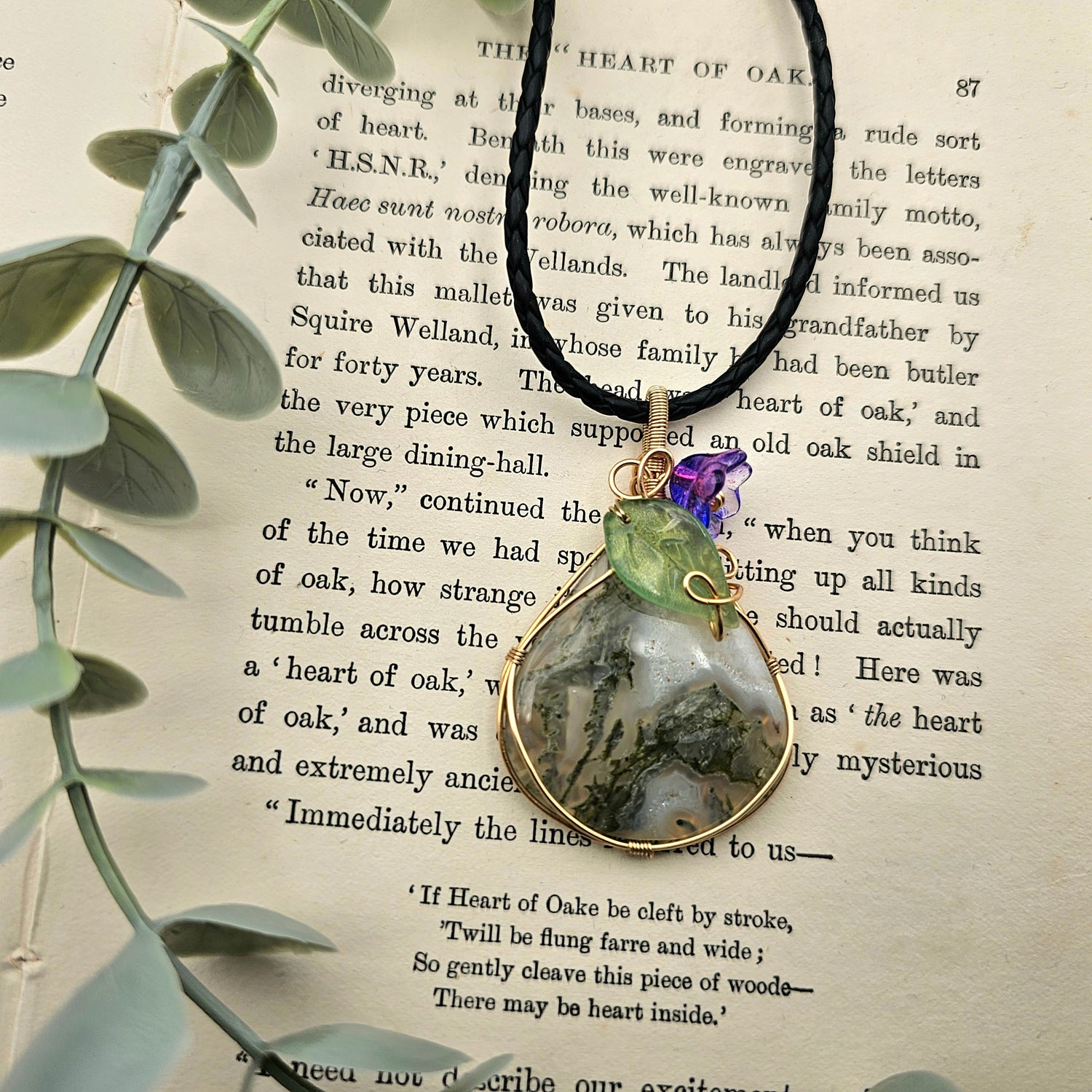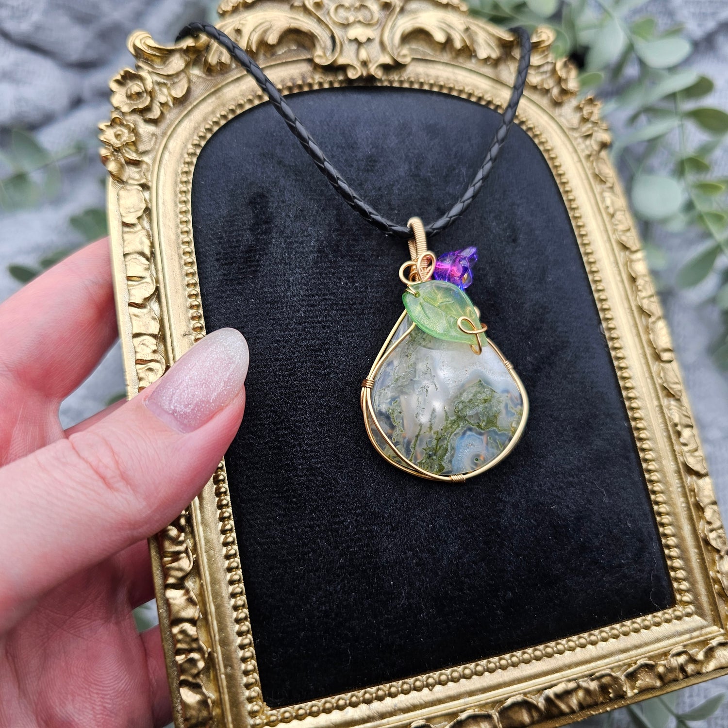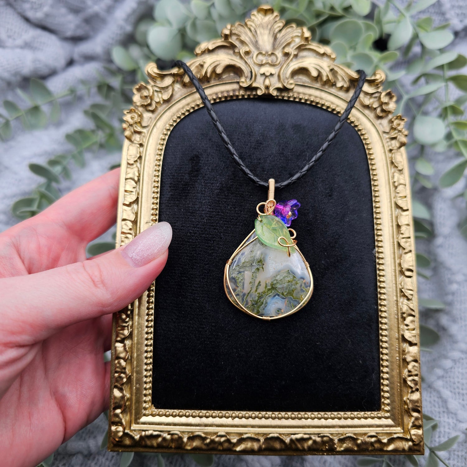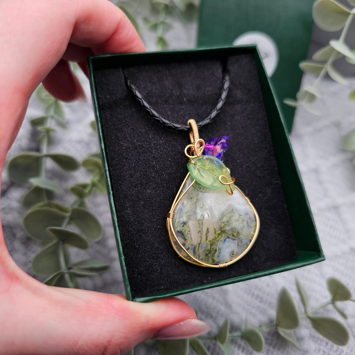 Moosachat & Blüte Anhänger | Schmuckdraht | Edelstein Halskette