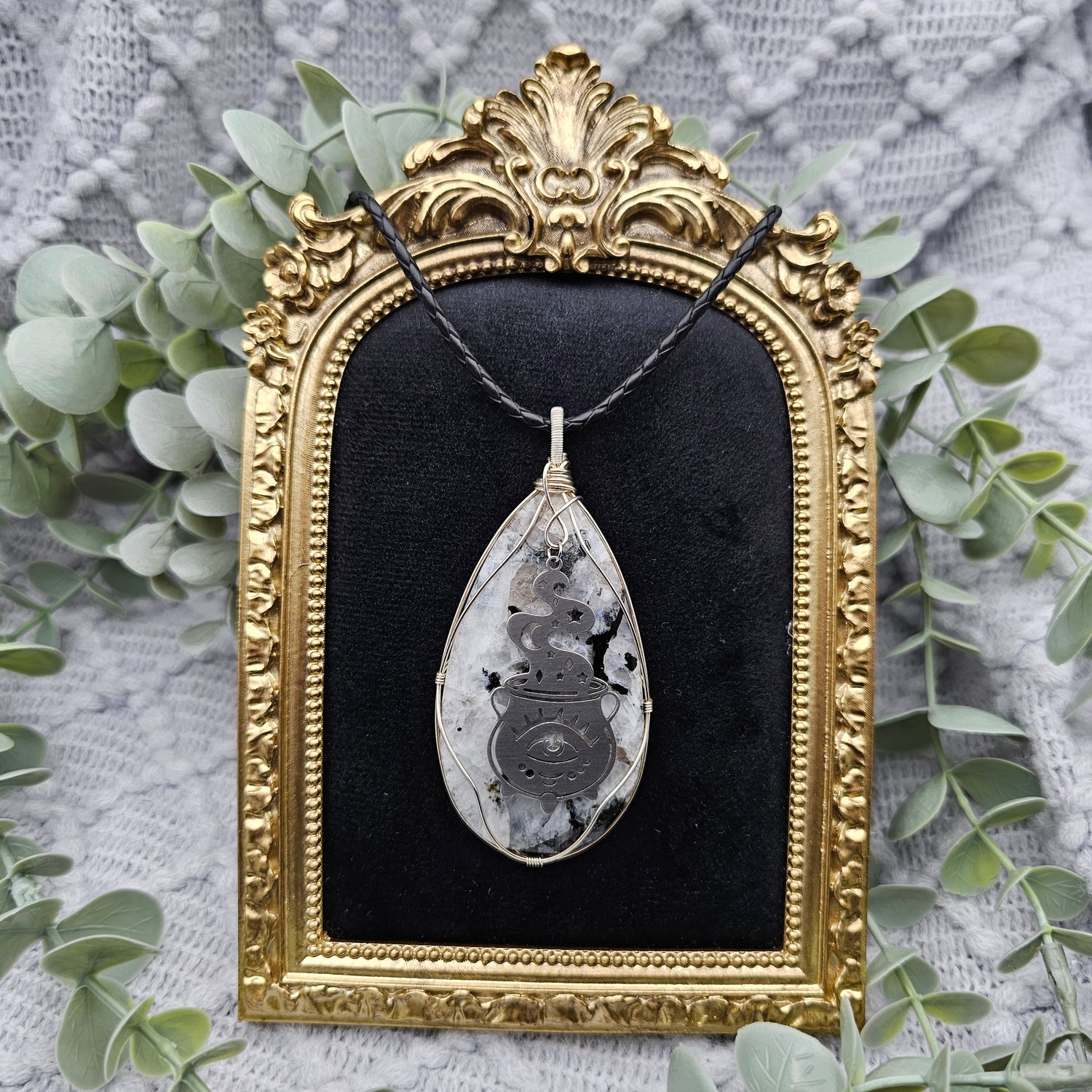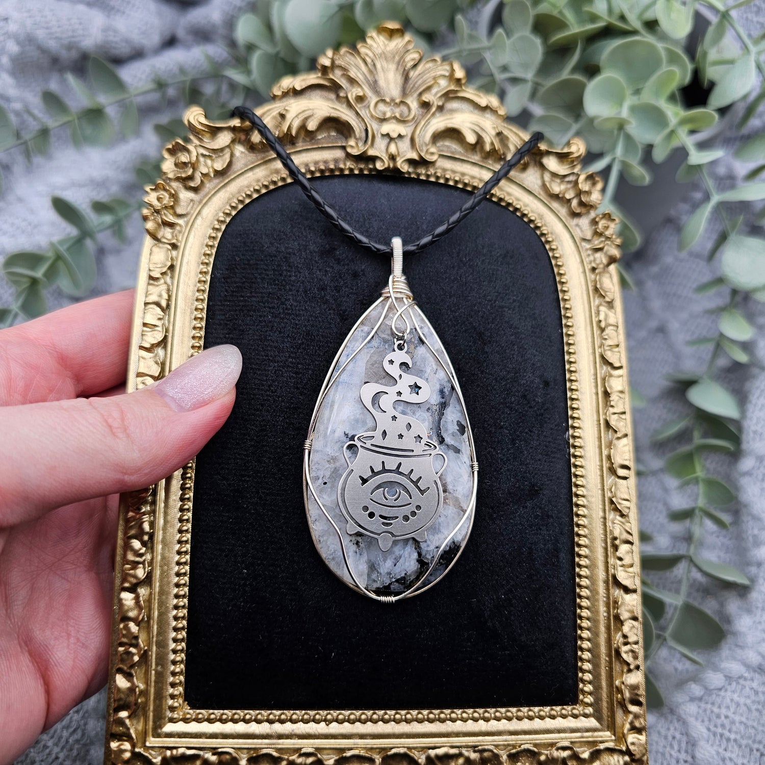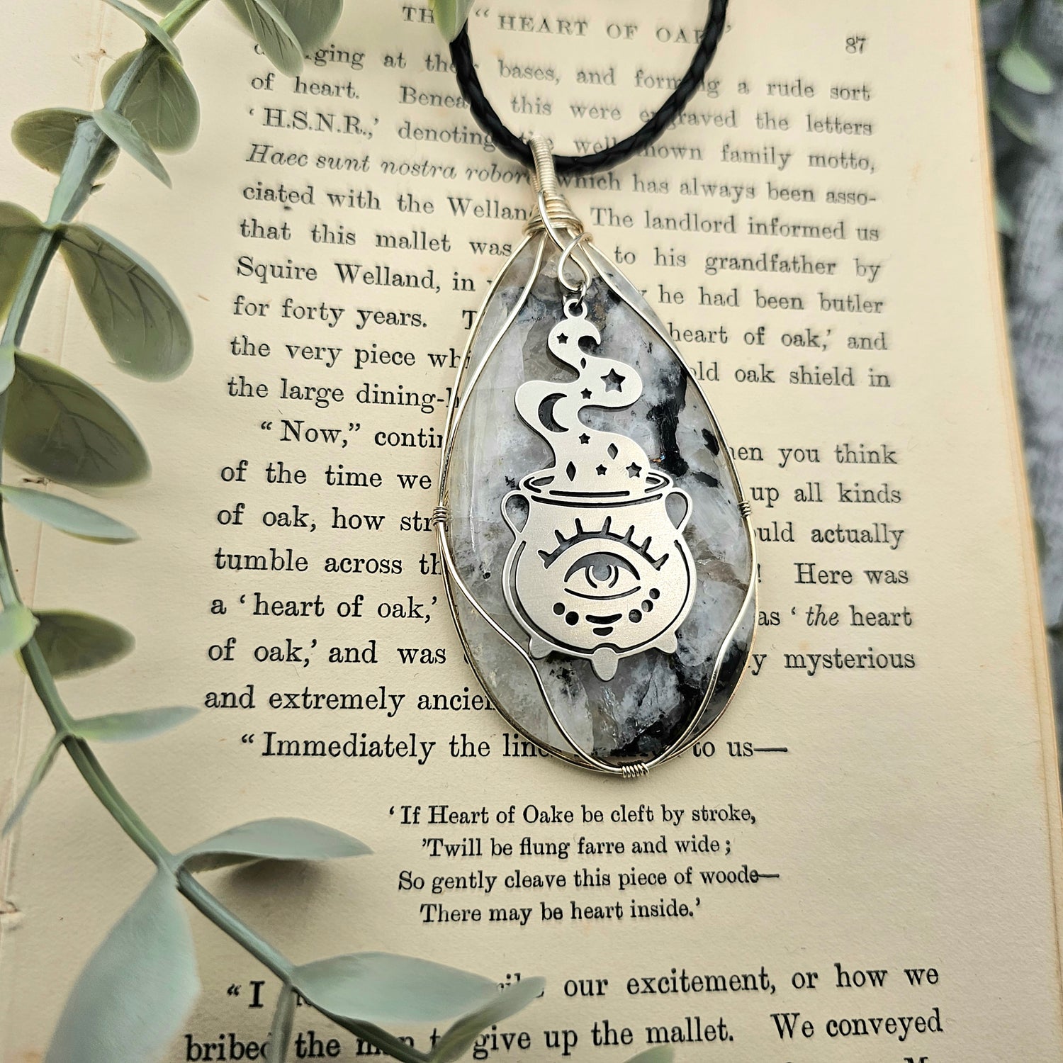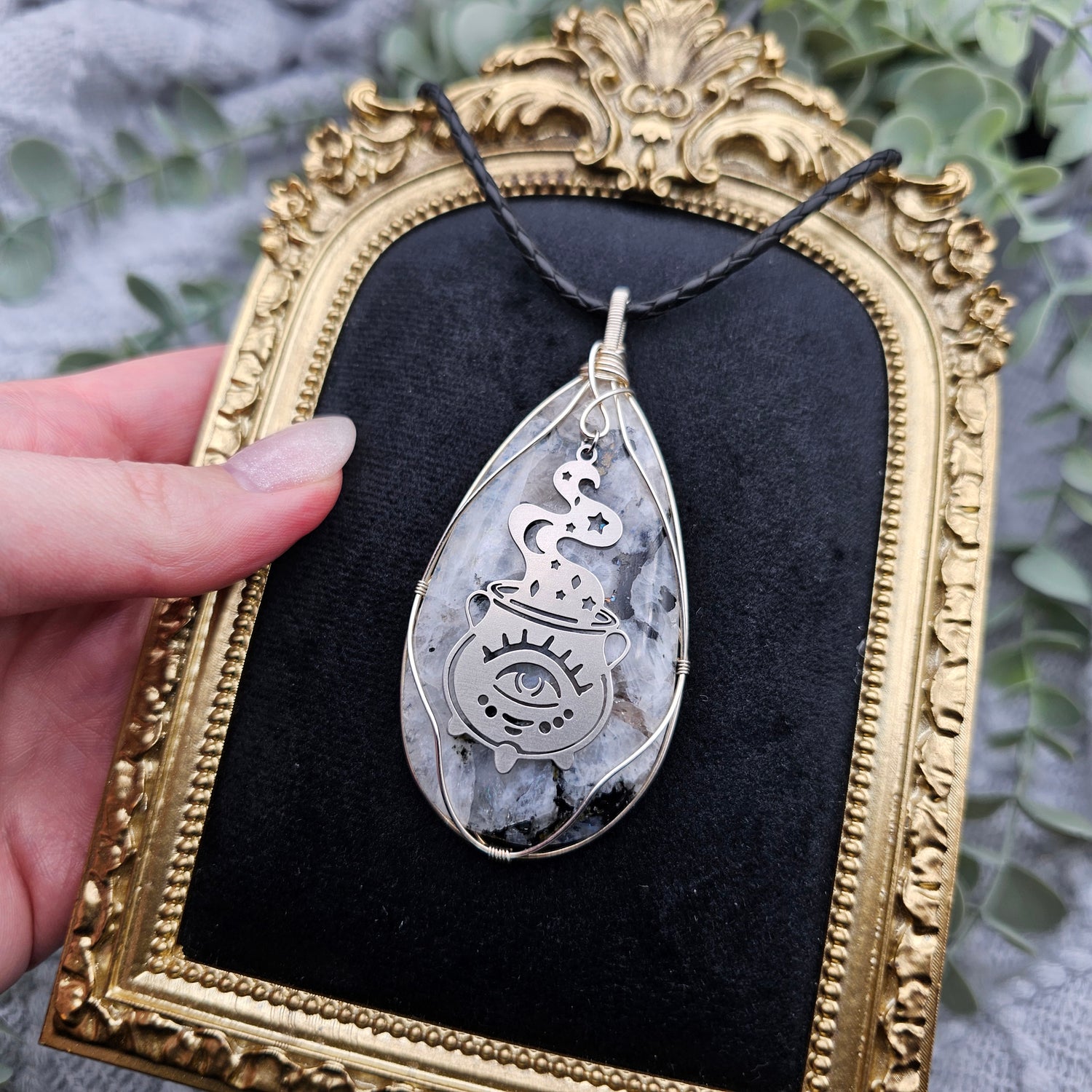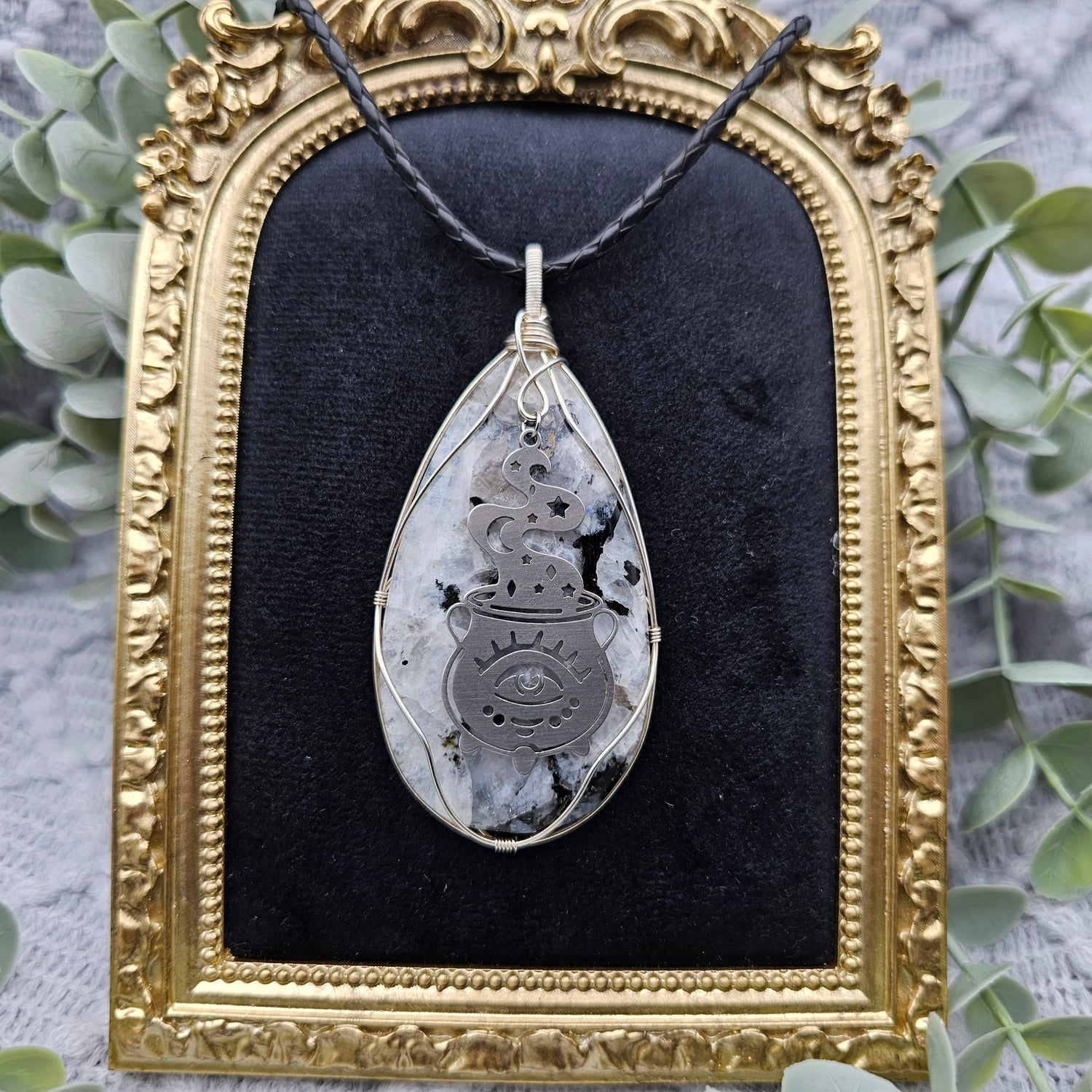Regenbogenmondstein & Zauberkessel Anhänger | 925er Silber/ Edelstahl | Edelstein Halskette