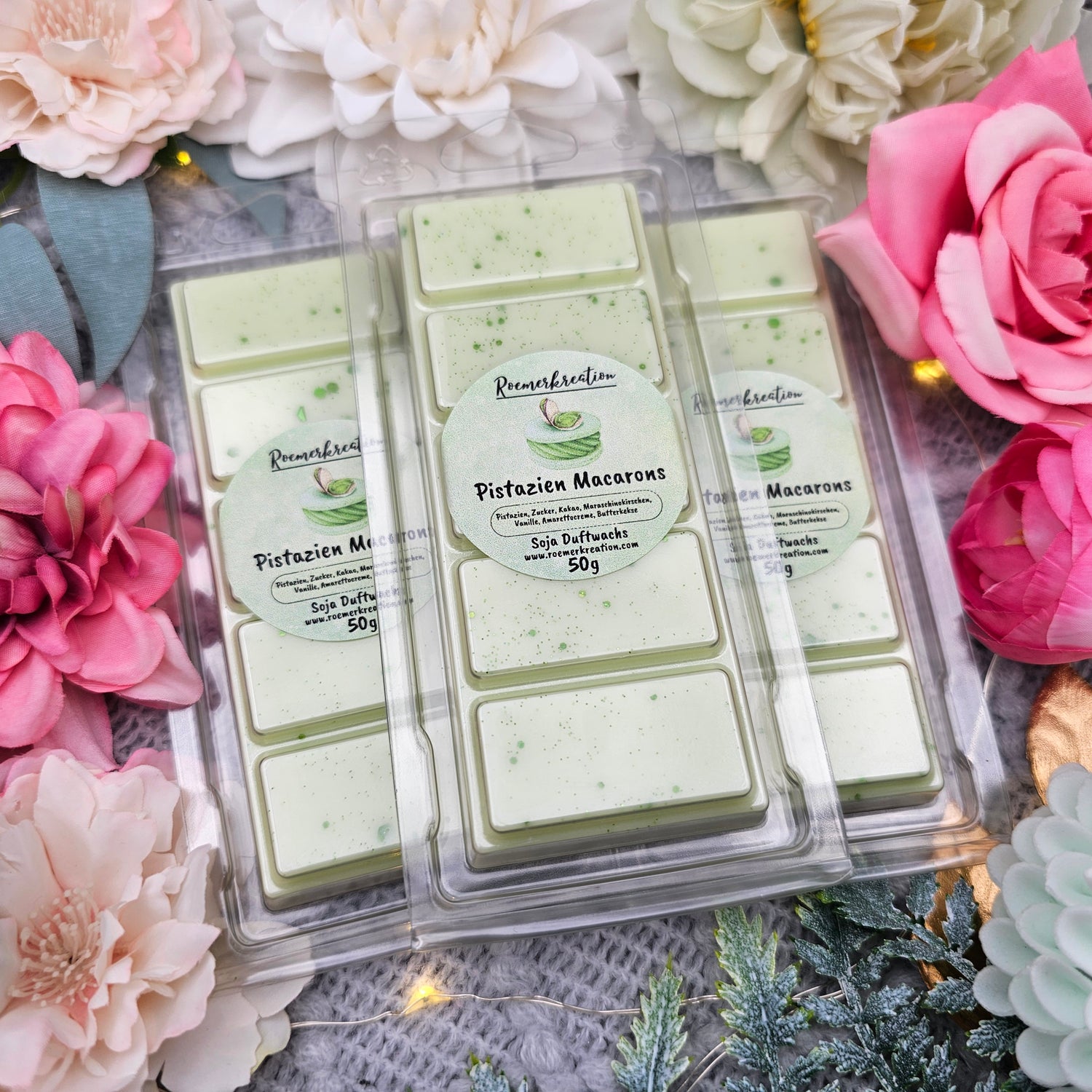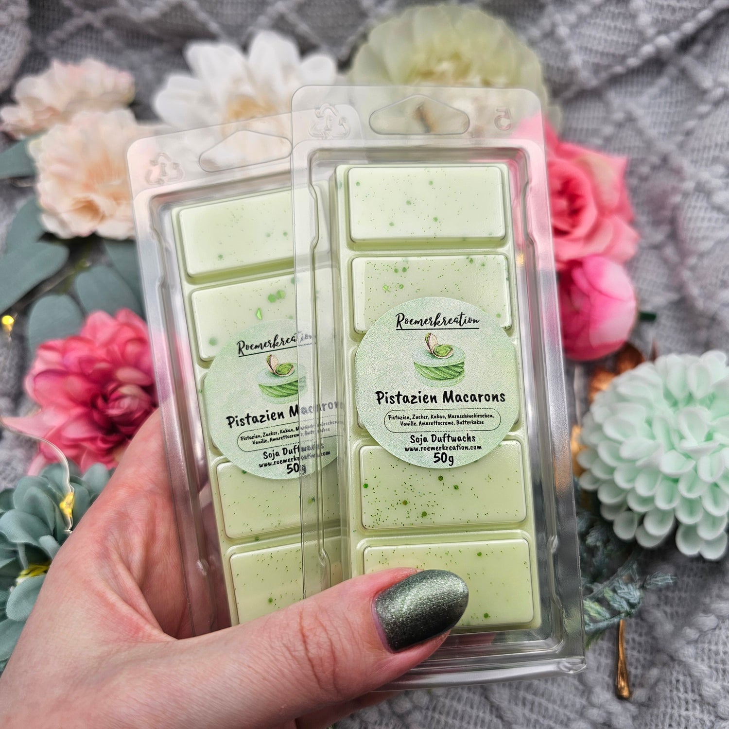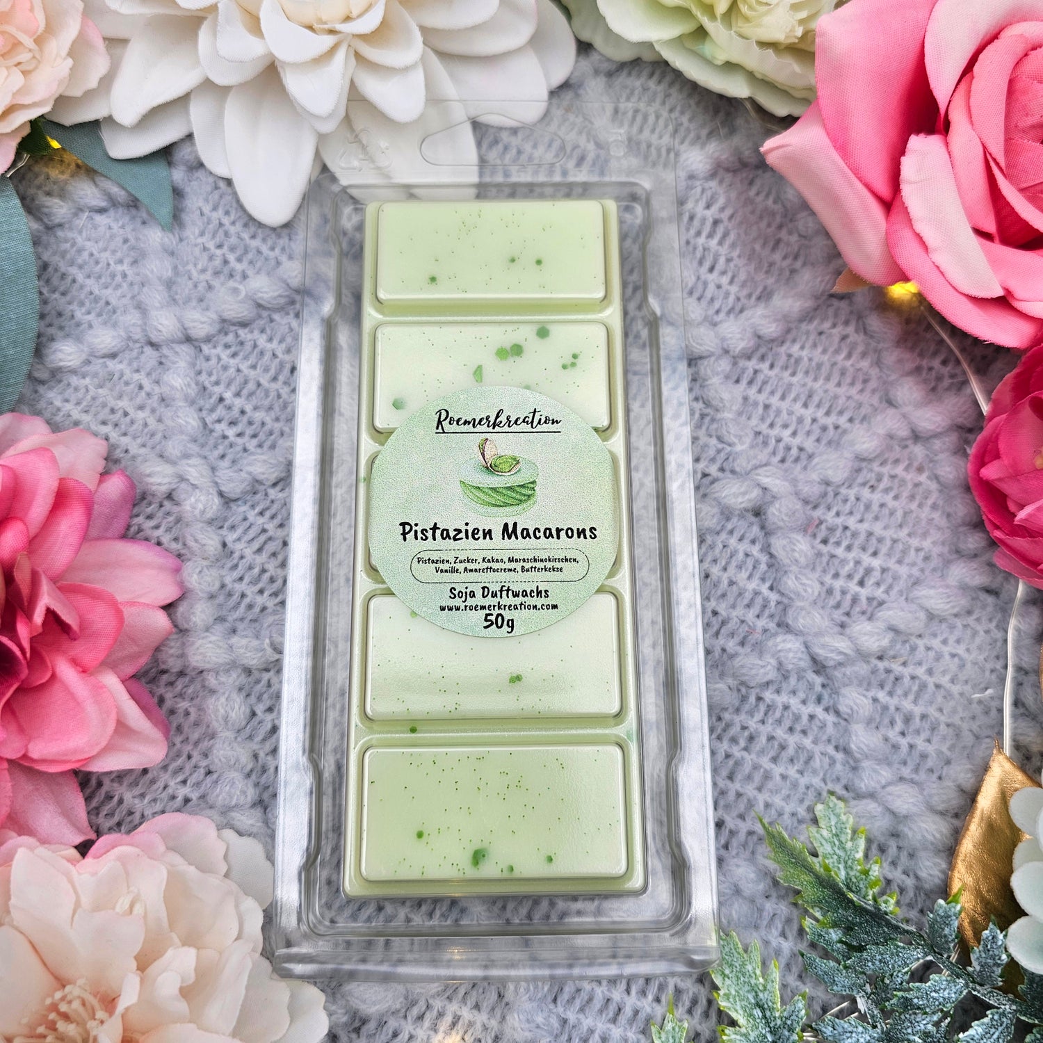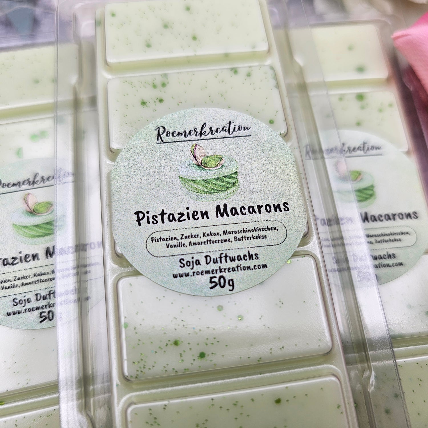 Tafel 50 g | Pistazien Macarons | Duftwachs